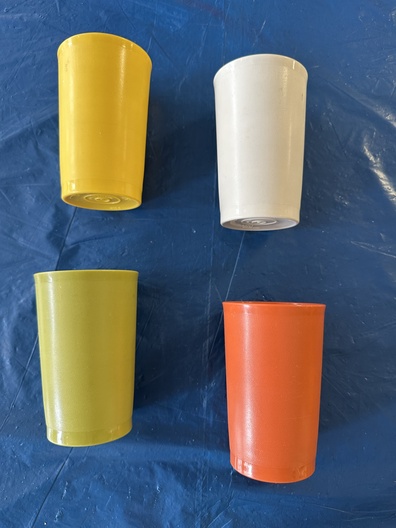 4 vintage kunststof bekers in echte retro kleuren: 🟡 Gee