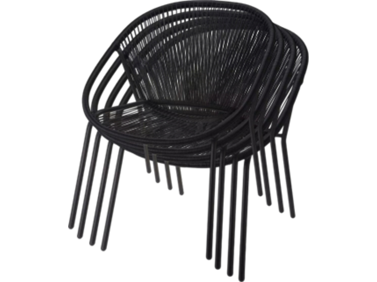 Set van 4 stuks, Ambiance STAPELSTOEL aluminium met zwart draad, moderne uitstraling, licht van gewicht en eenvoudig stapelbaar. Kleine schoonheidsfoutjes of lichte imperfecties kunnen voorkomen, maar dit heeft geen invloed op de functionaliteit.