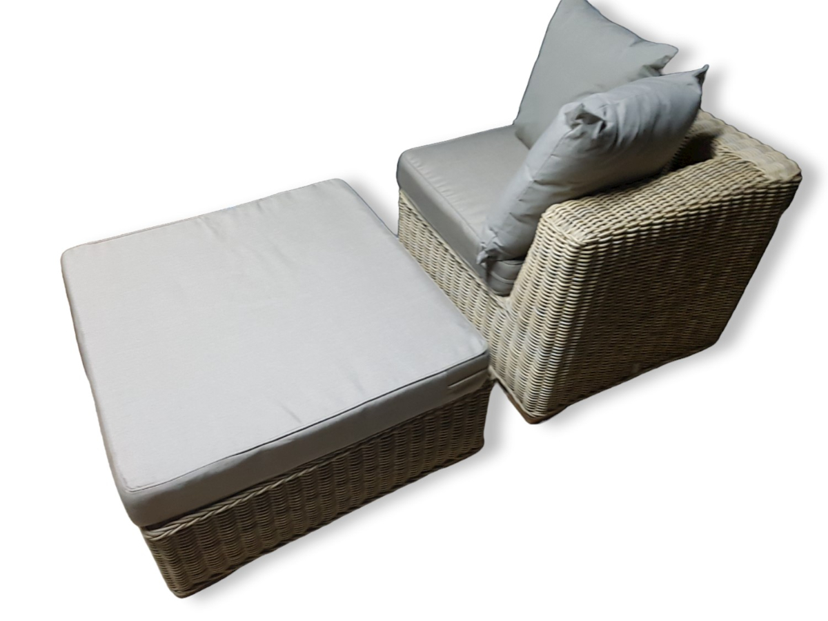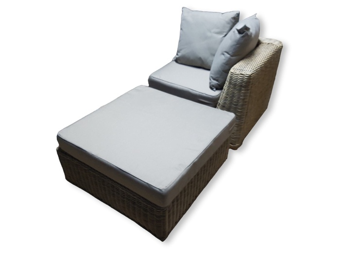 Demo set van een Hoekdeel met een footstool incl. zitkussens en rugkussens. extra zwaar vlechtwerk en kussen 12cm dik