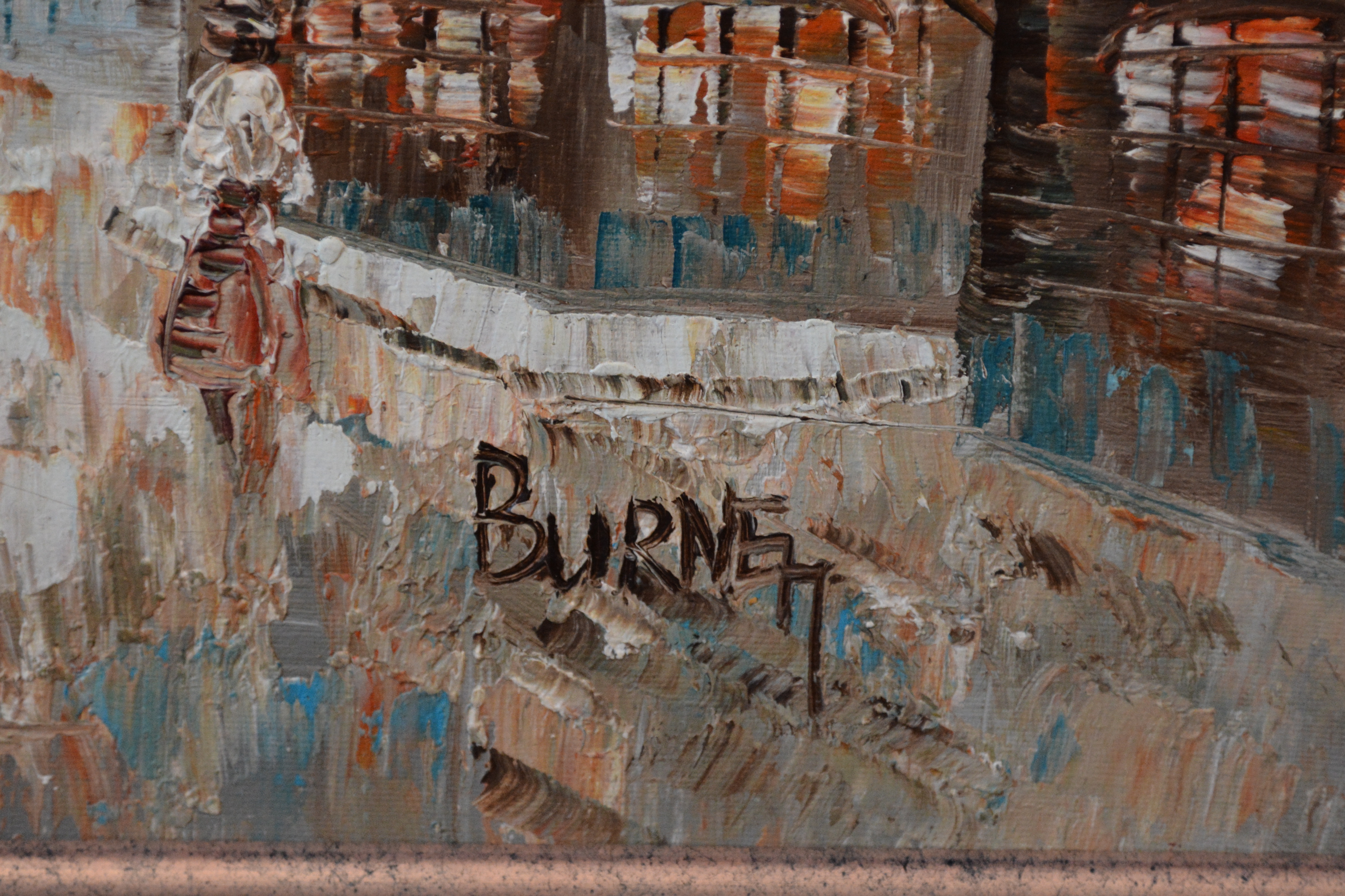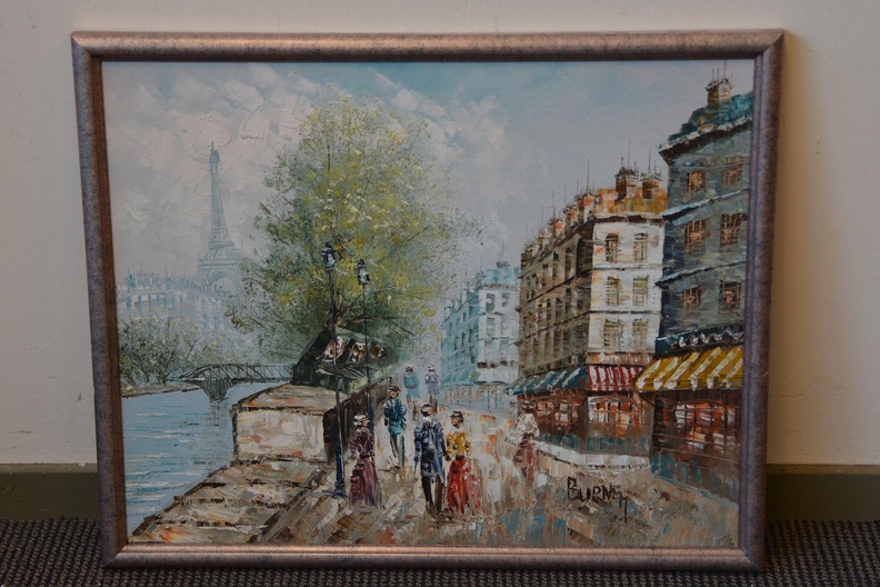 Vintage olieverfschilderij van C. Burnett: Parijs, Seine