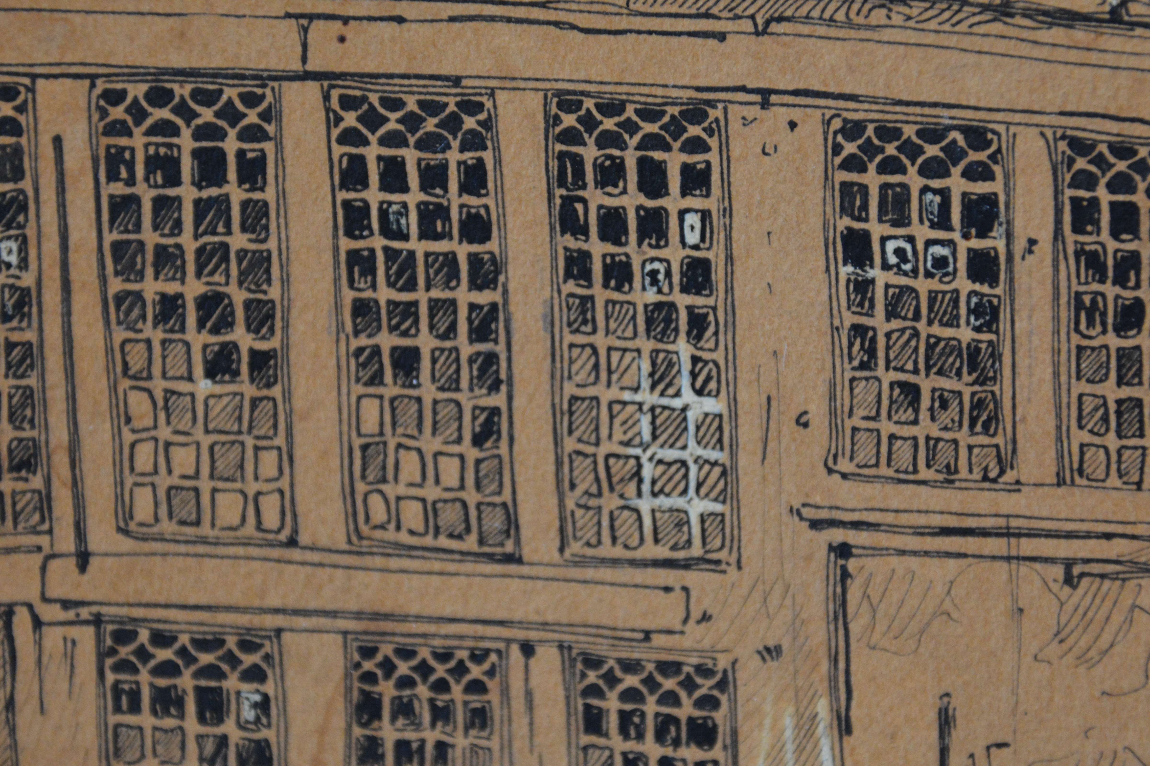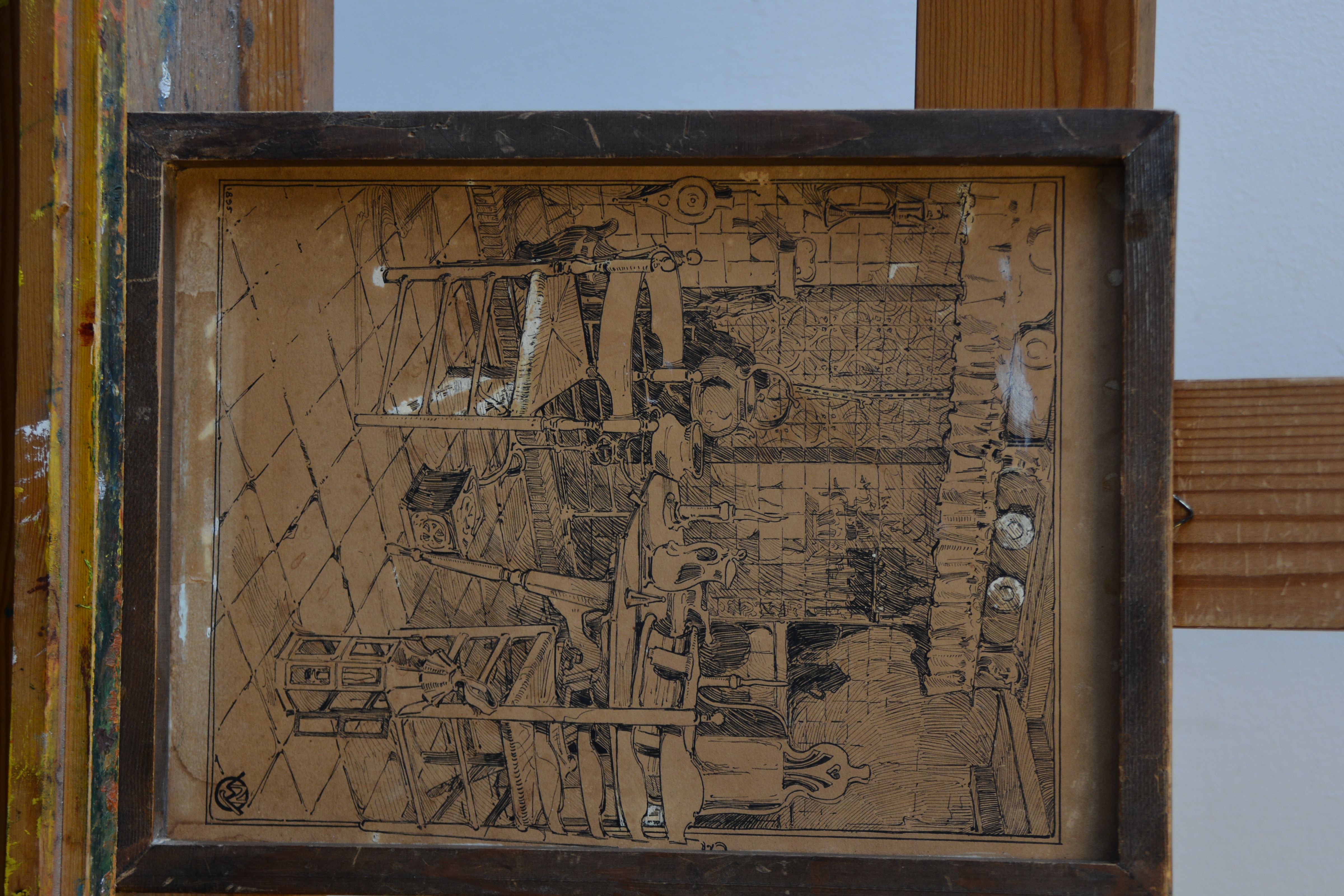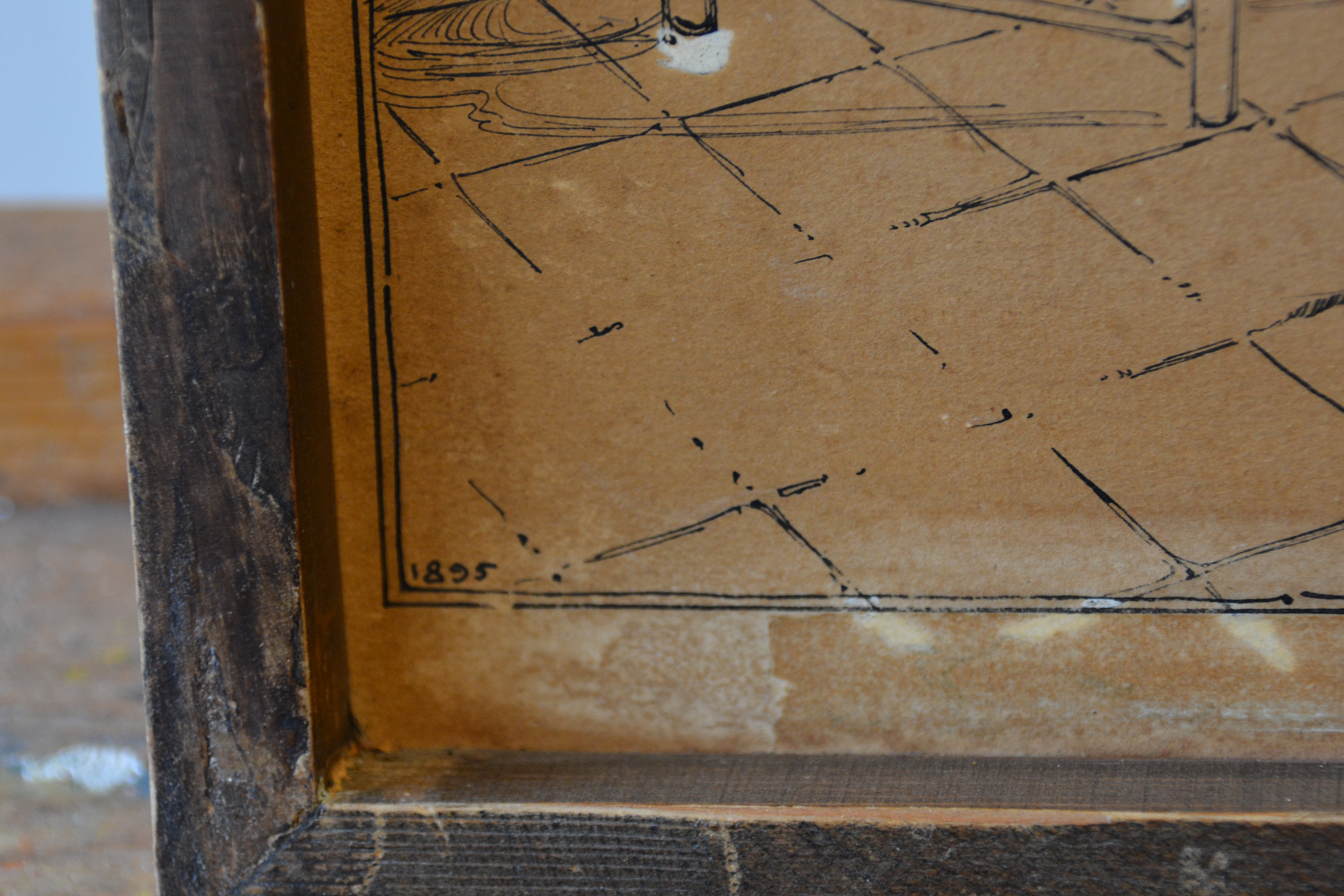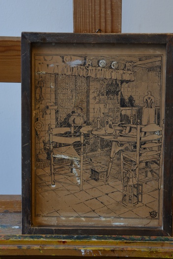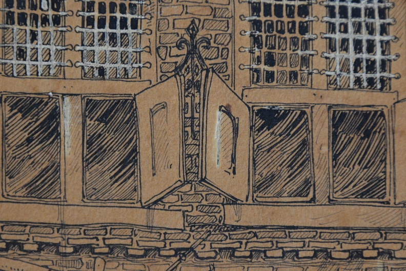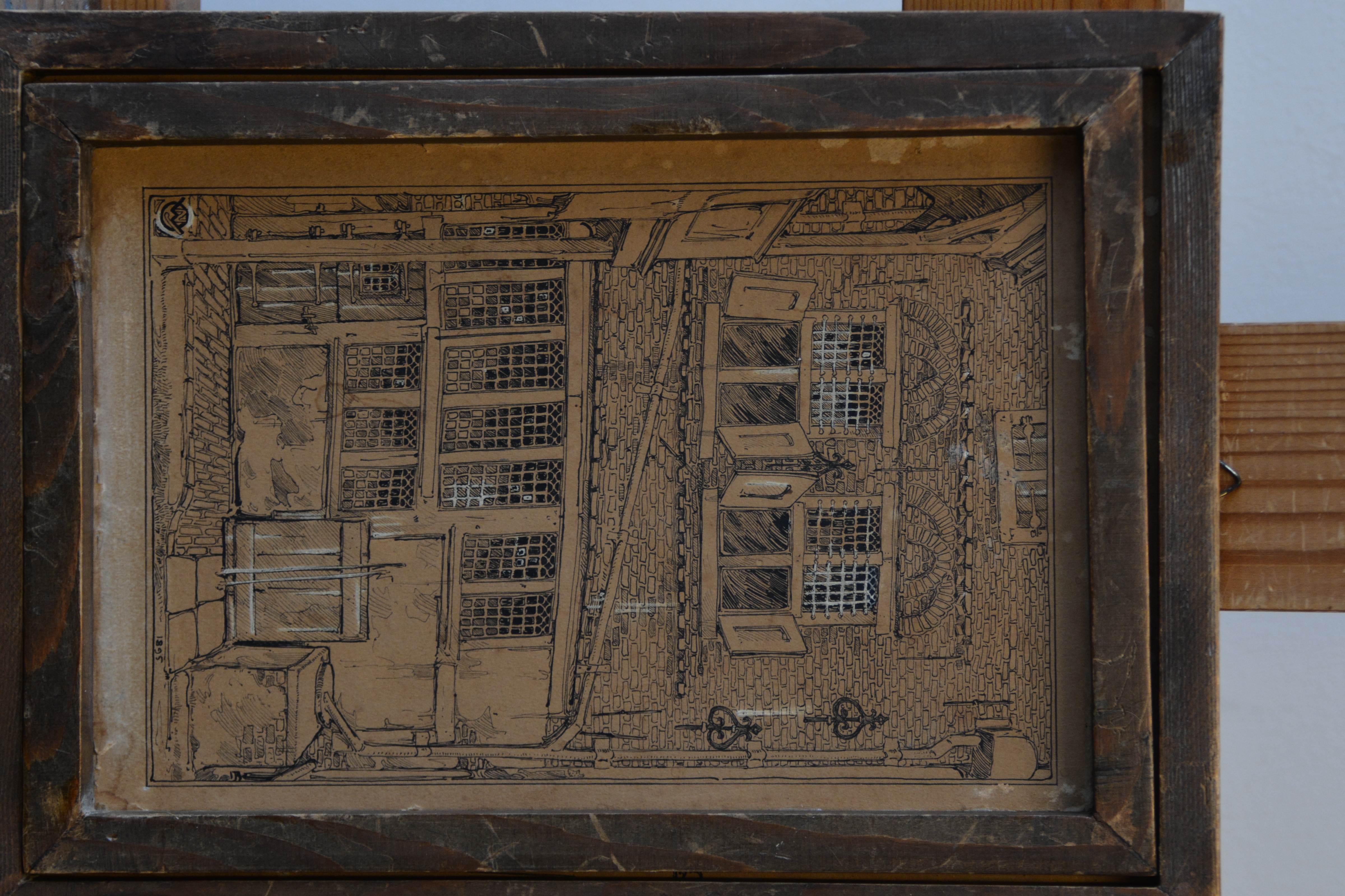 2 Zeer antieke en kwetsbare etsen. Ze zijn gesigneerd met W.J. en dateren uit 1895. Deze is een gevel van een zeer oud huis, mogelijk een binnenplaats, de andere prent laat een binneninterieur van een oud huis zien. Fraai gemaakt, in redelijke en kwetsbare staat, gezien de leeftijd van de prenten. Moet per koerier worden verzonden ivm de kwetsbaarheid.