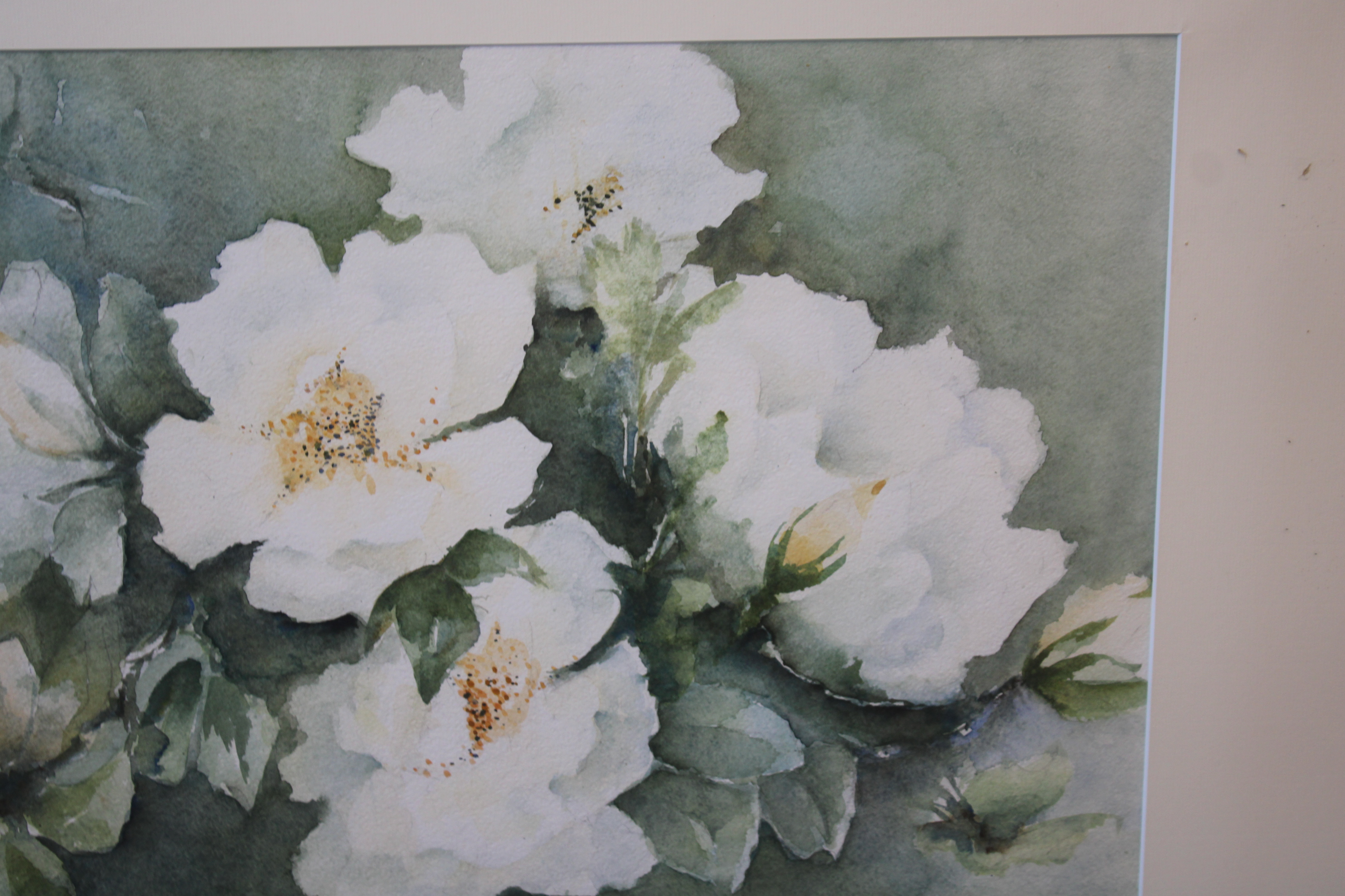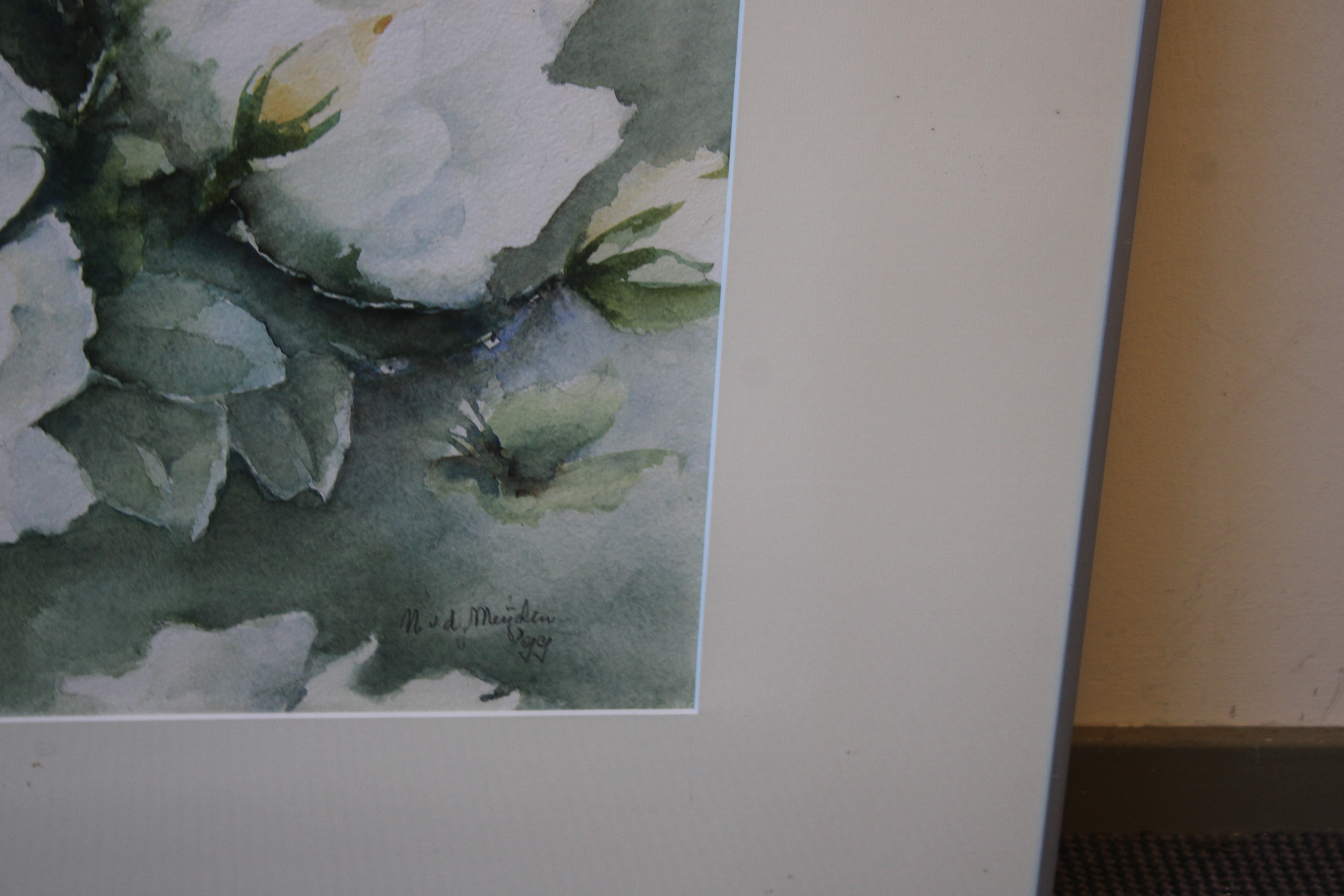 Aquarel van N. vd Meyden: Witte rozen