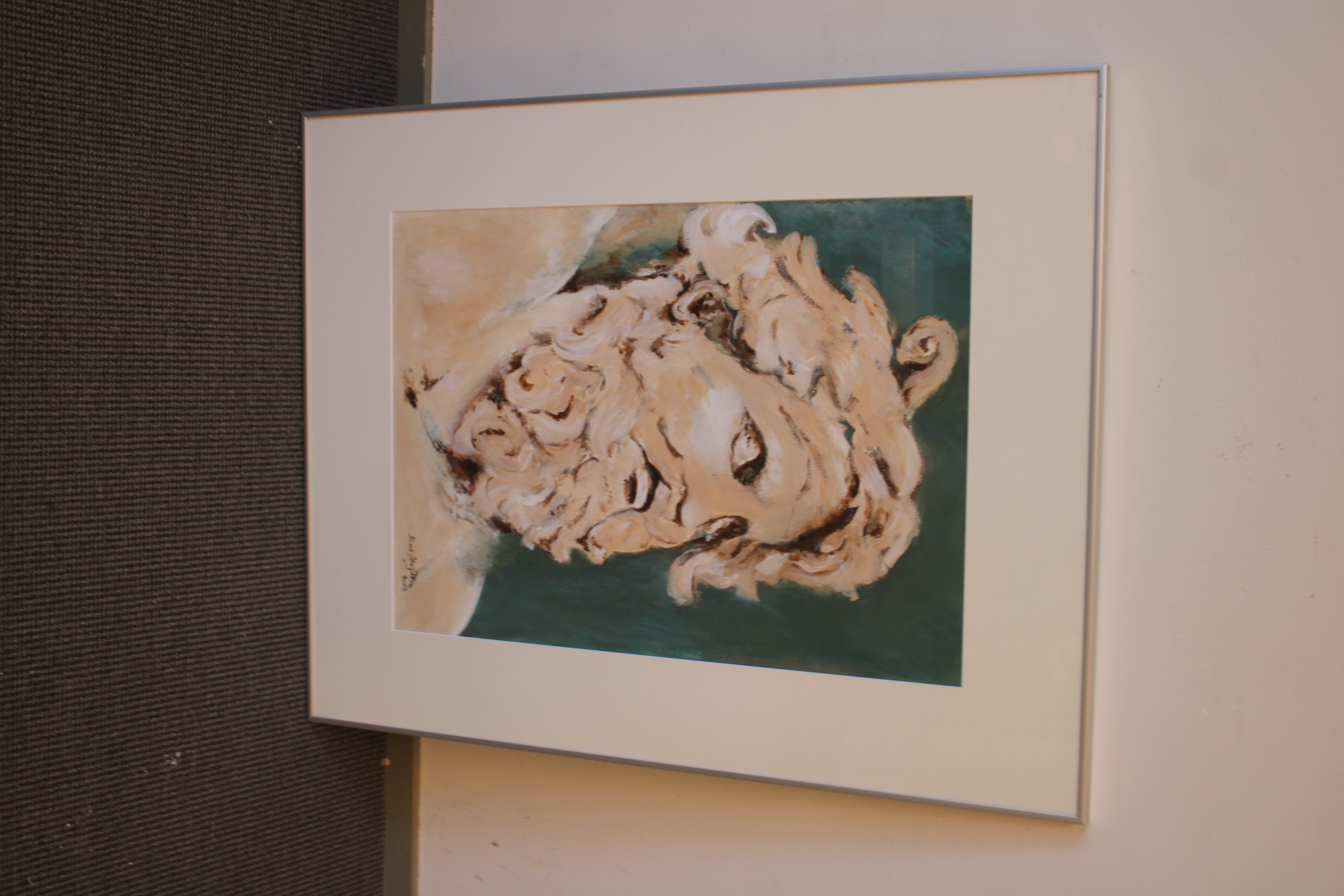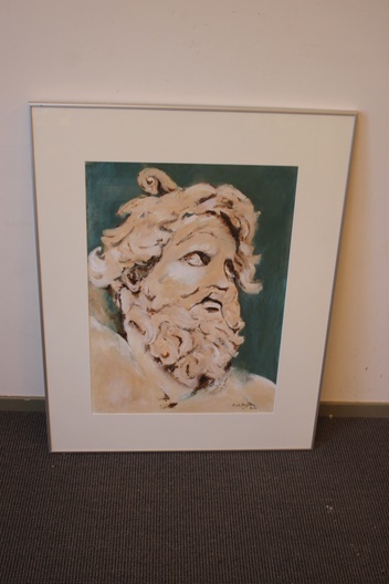 Ingelijste krijttekening van N. vd Meyden: Griekse god.
