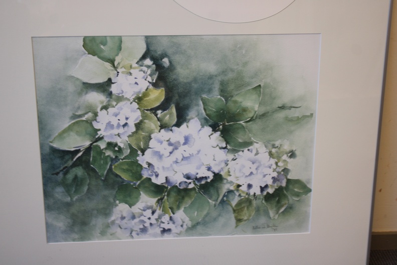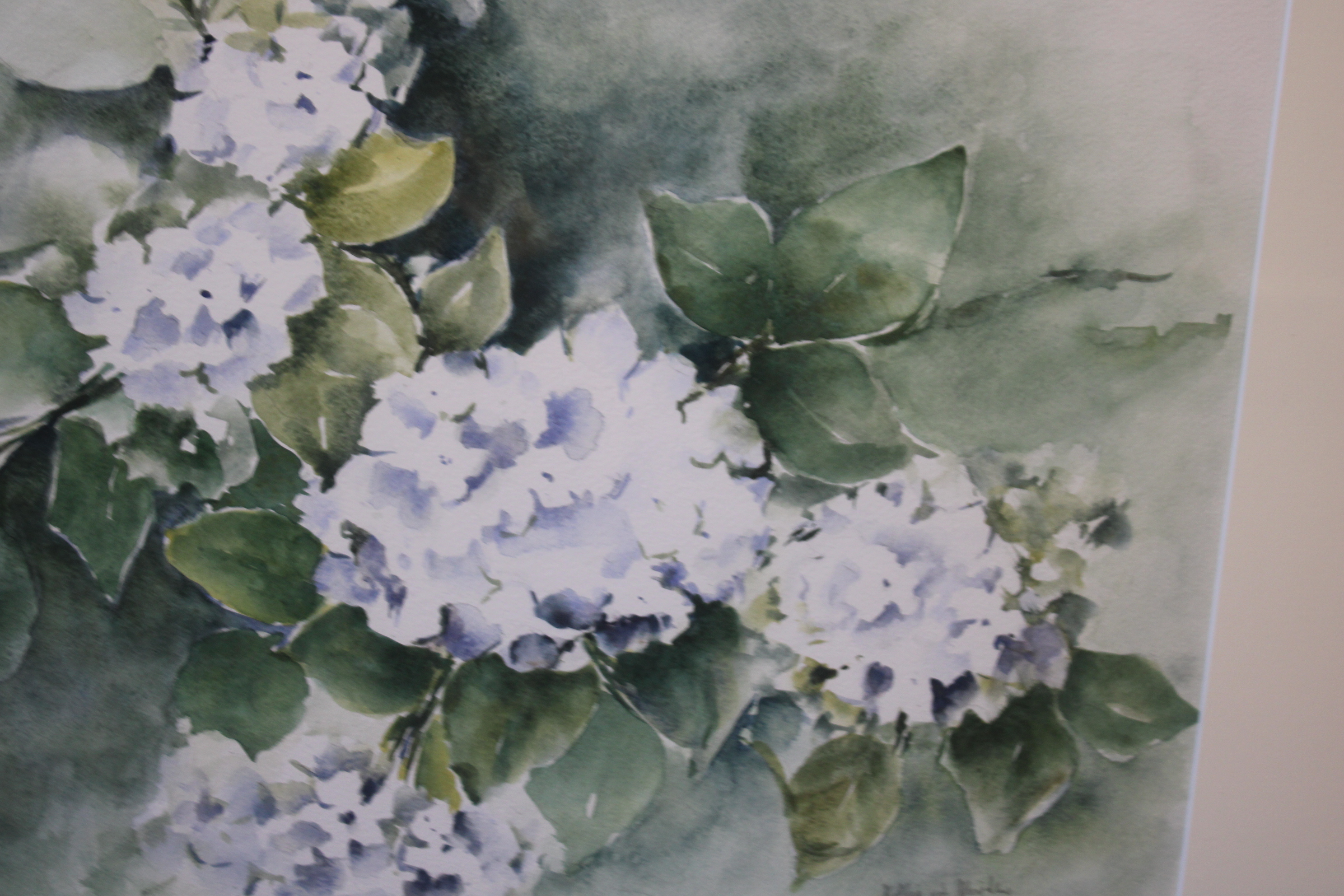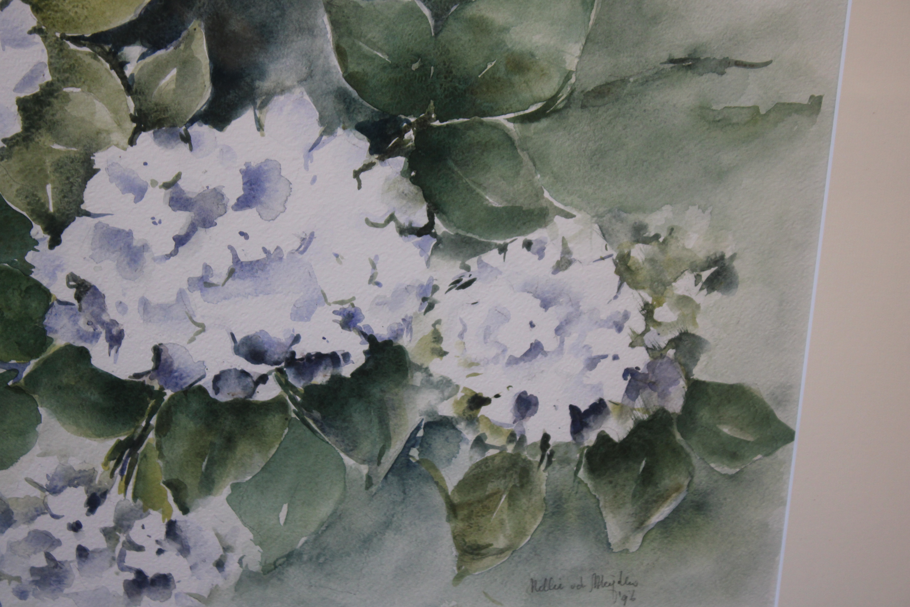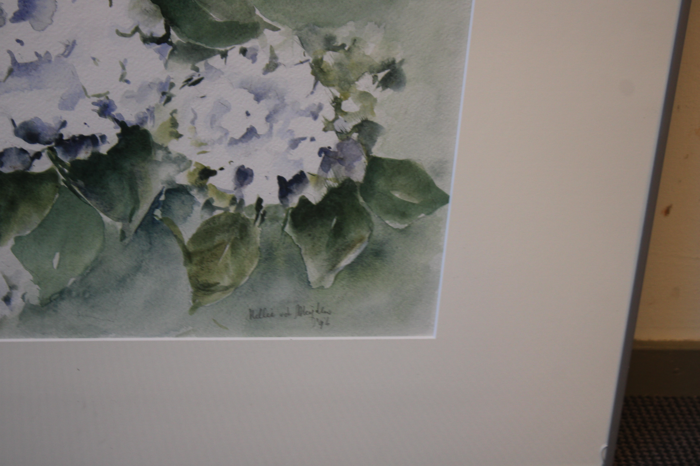Aquarel van N. vd Meyden: Blauwe hortensia's