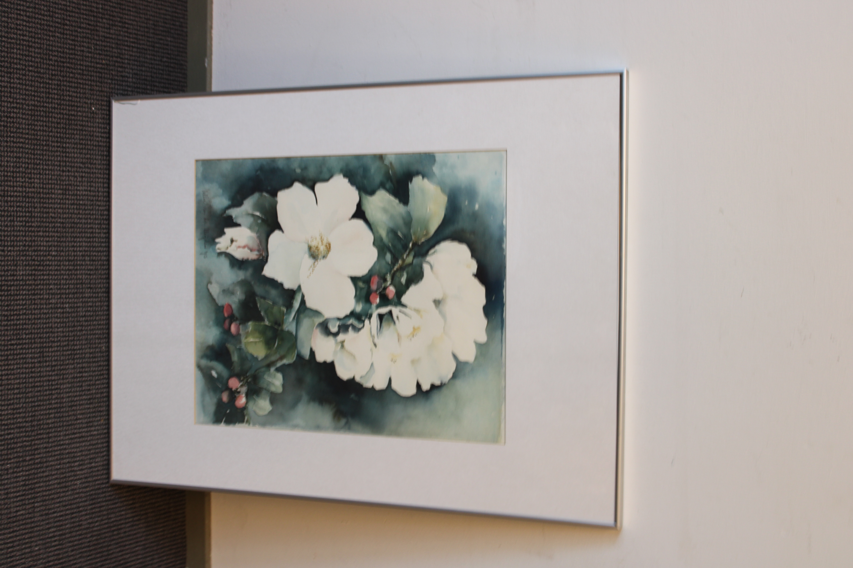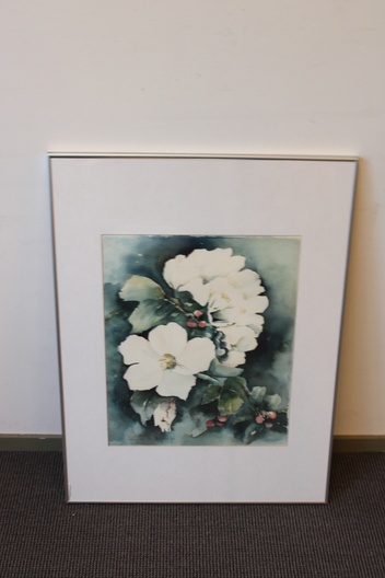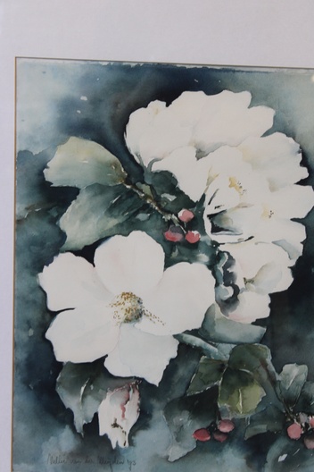 Aquarel van N. vd Meyden: Appelbloesems