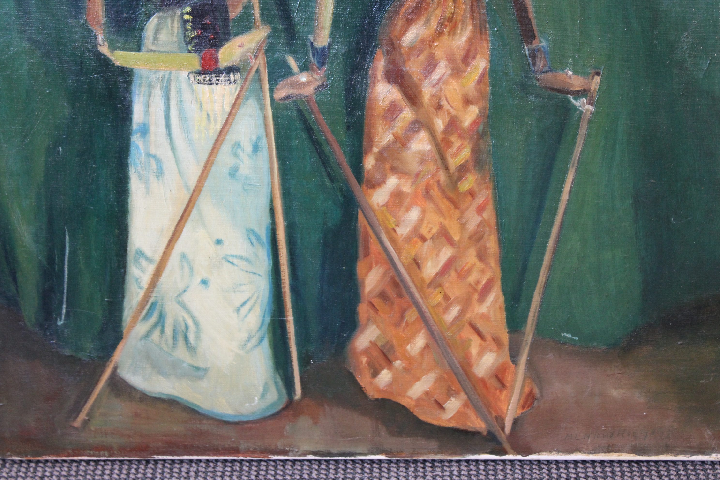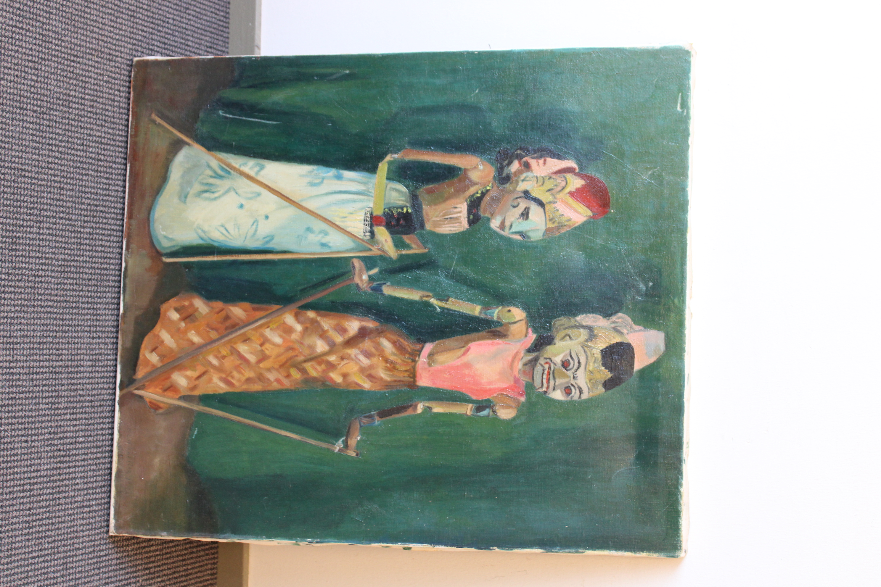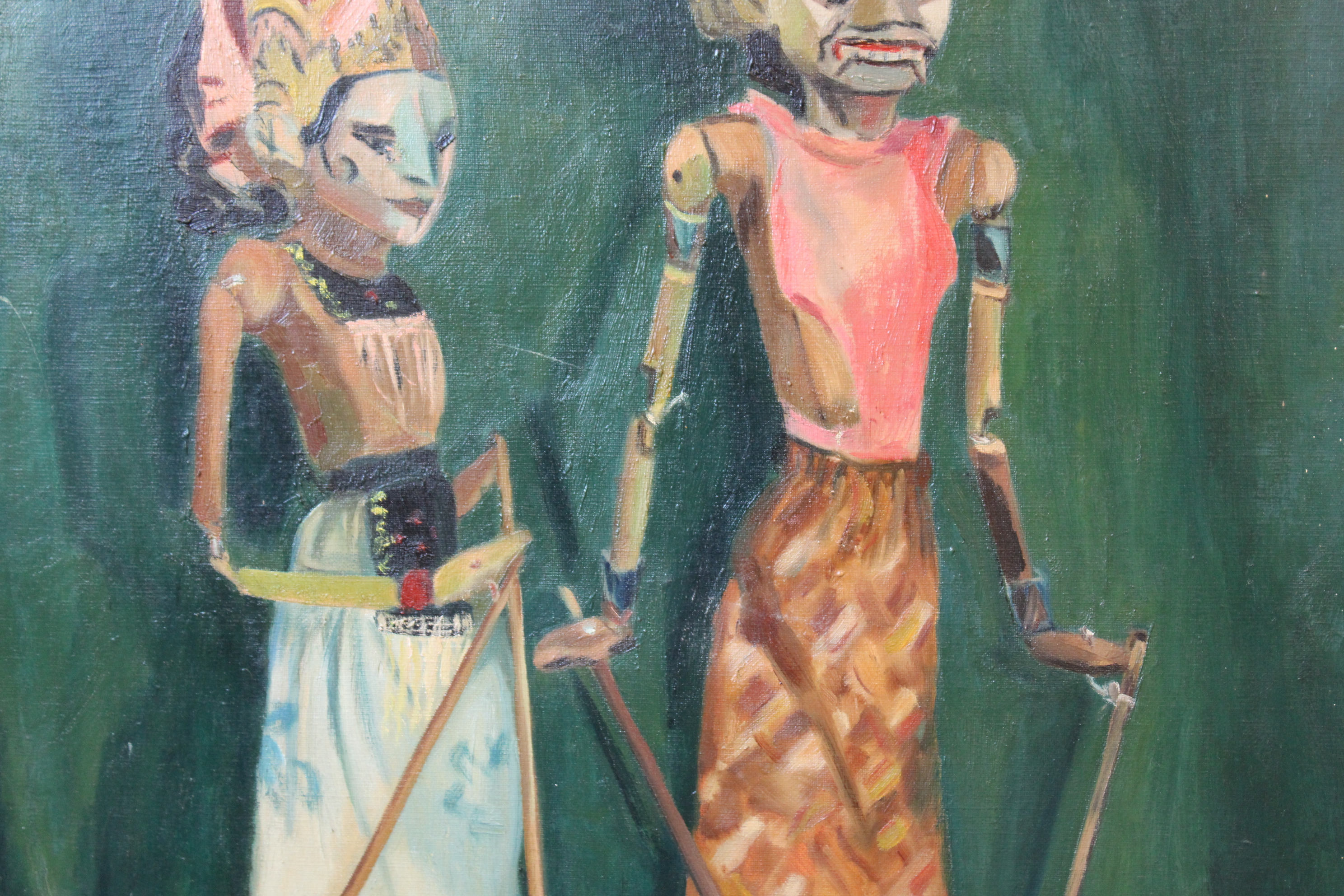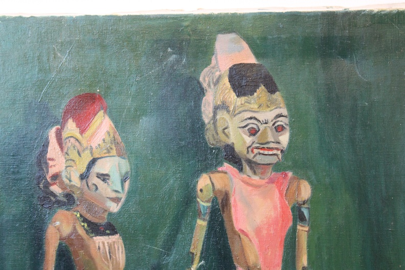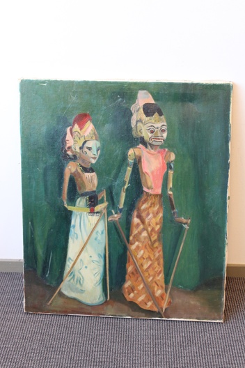 Olieverfschilderij van Wajang poppen
