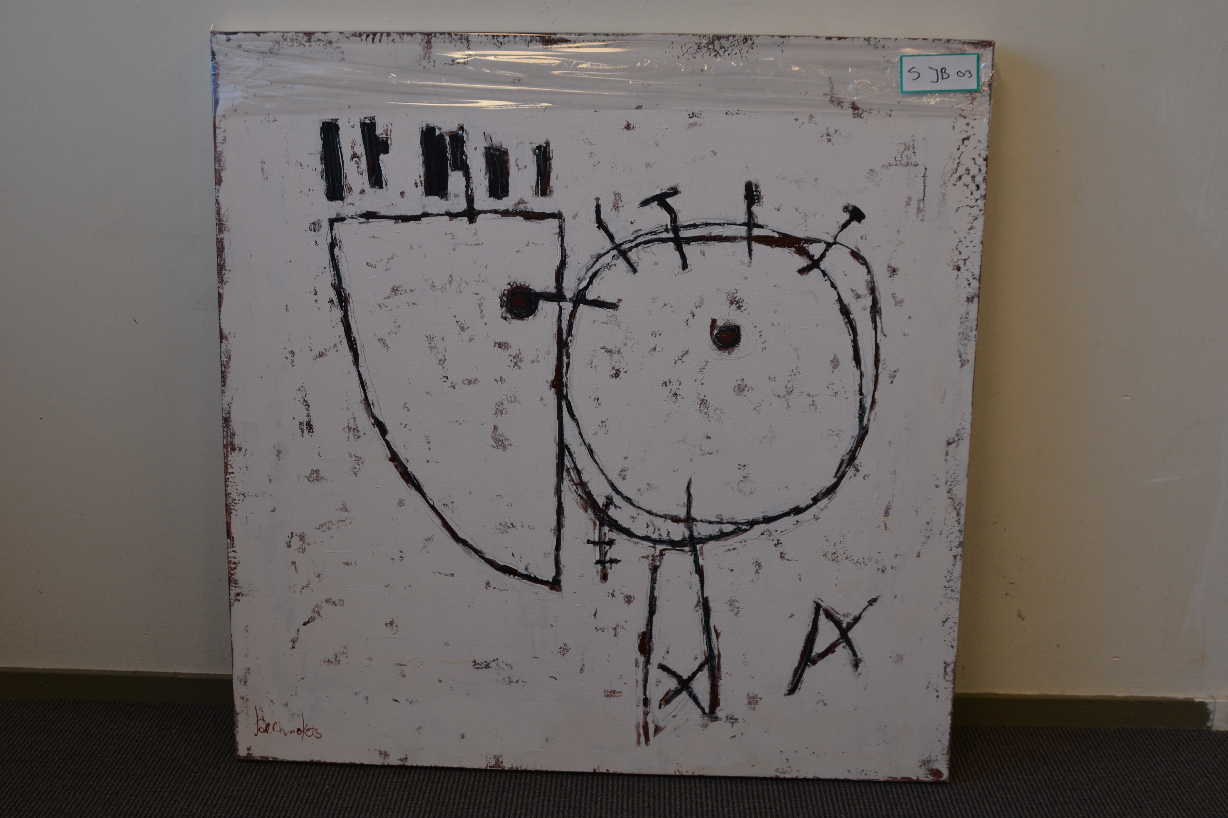 Jeanne Beenakkers (Bavel 1946-2012), was een bekend kunstenares. Ze werkte veel met acryl op canvas, zoals ook met dit werk. Dit werk is zonder titel. Lichte vochtschade aan de achterzijde, aan de voorzijde niet zichtbaar.