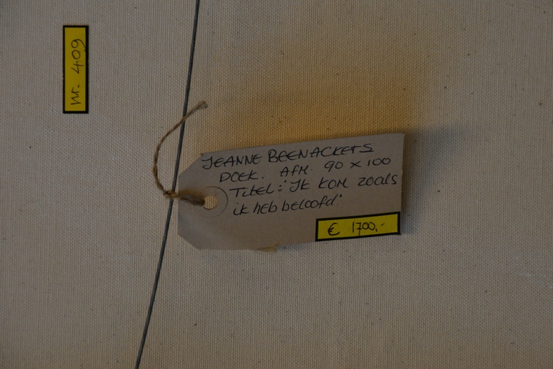 Jeanne Beenakkers (Bavel 1946-2012), was een bekend kunstenares. Ze werkte veel met acryl op canvas, zoals ook met dit werk. Dit werk heeft de titel ‘Ik kom zoals beloofd’. In goede staat.