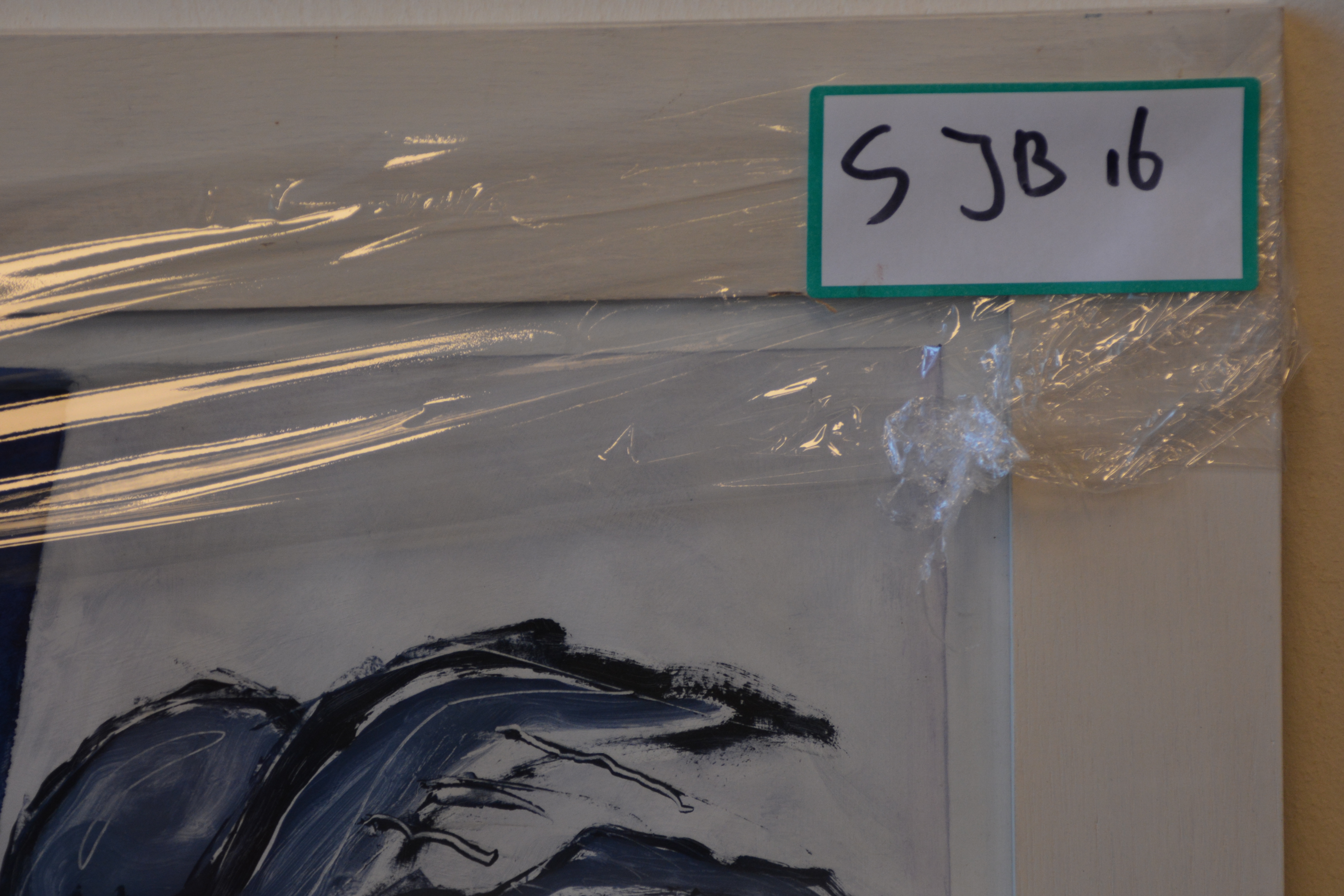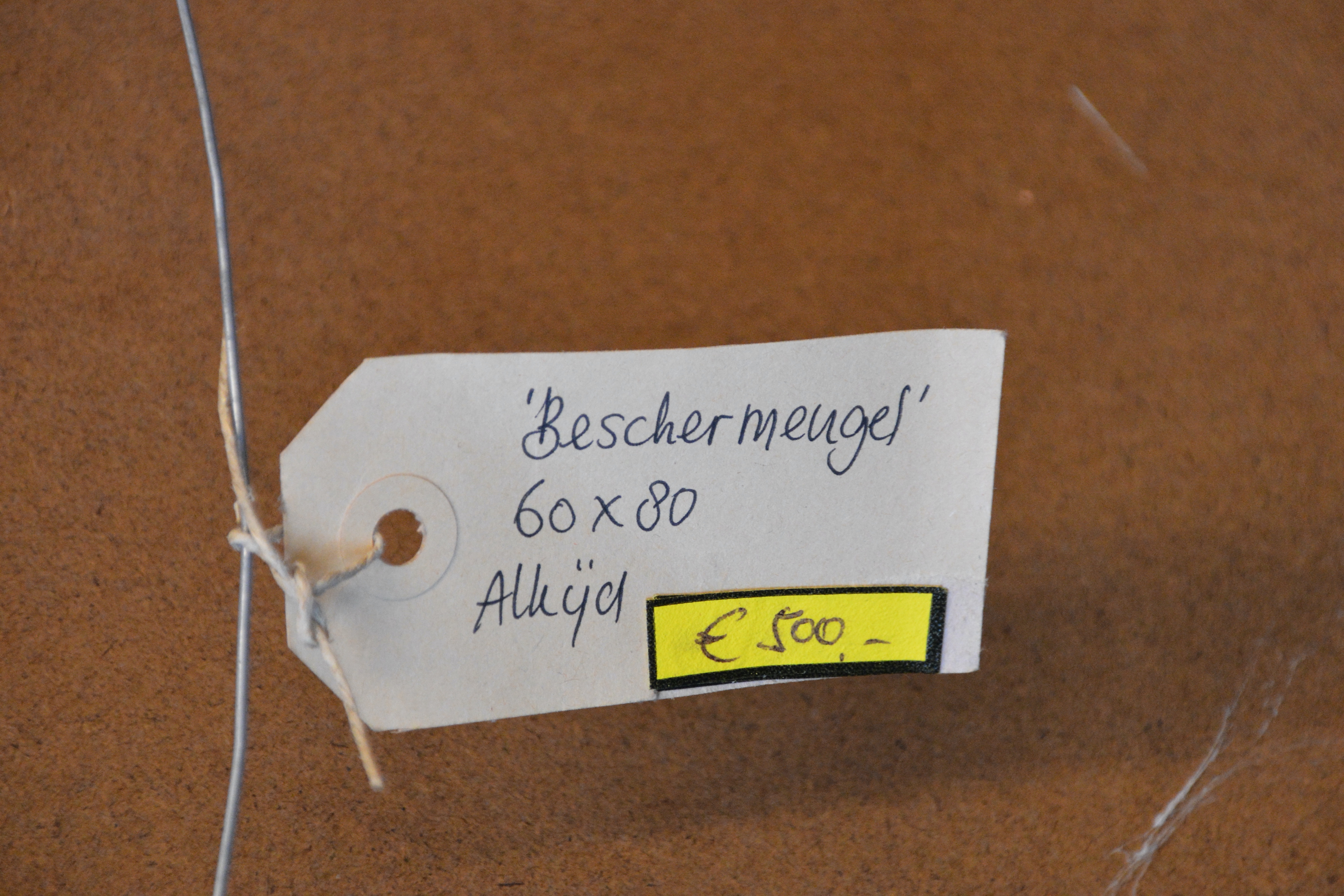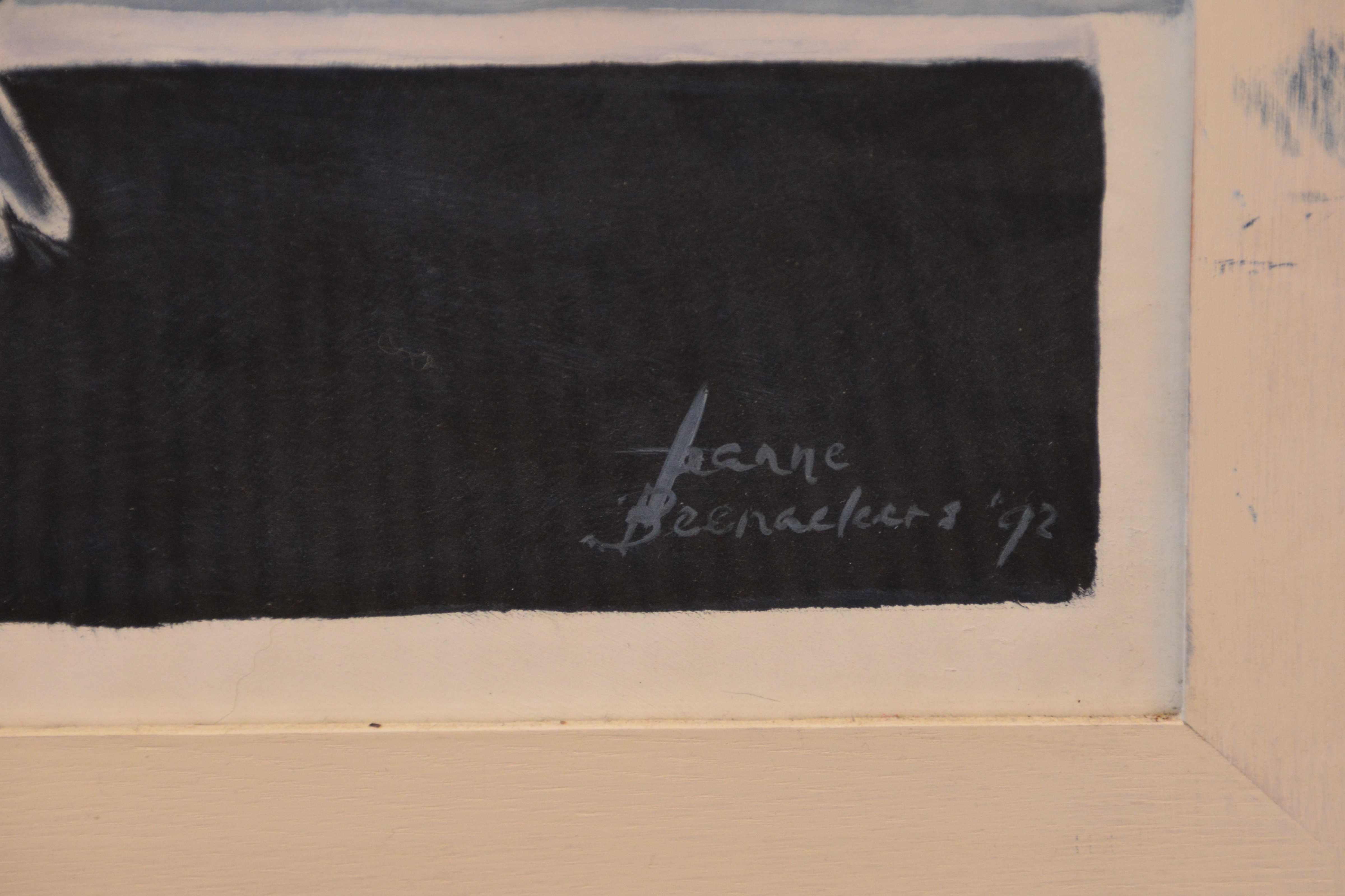 Jeanne Beenakkers (Bavel 1946-2012), was een bekend kunstenares. Dit werk is gemaakt met alkyd op paneel. Titel: 'Beschermengel'. Met Australische tekens. Met lijst. Uit 1992, met glas ervoor. In goede staat.