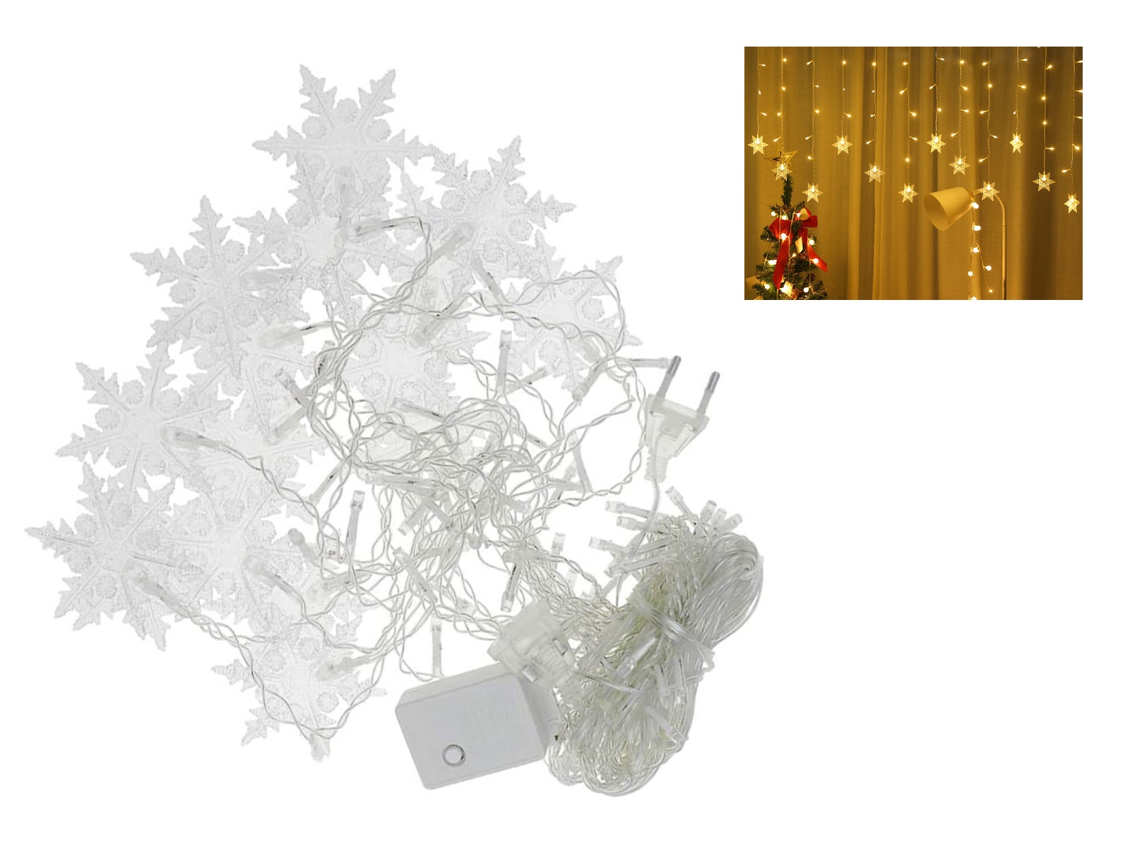 Creëer een warme sfeer in de huiskamer, slaapkamer, keuken, garage en zelfs in de winkel. De verlichting heeft een gordijn ontwerp met sneeuwvlokken op verschillende hoogte die een unieke look geven aan elke ruimte. De verlichting is bedoeld voor binnen (in ieder geval een droge omgeving) en heeft een verlengsnoer van 1,5 die gratis wordt meegeleverd om het gordijn op elke gewenste plek te kunnen plaatsen. Kies uit 1 van de 8 modi op de schakelaar (van constant aan tot slow fade) en je bent klaar voor de gezellige, maar donkere dagen.