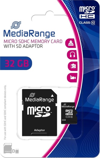 SD micro SD Card 32GB MediaRange SD CL.10 inkl. Adapter