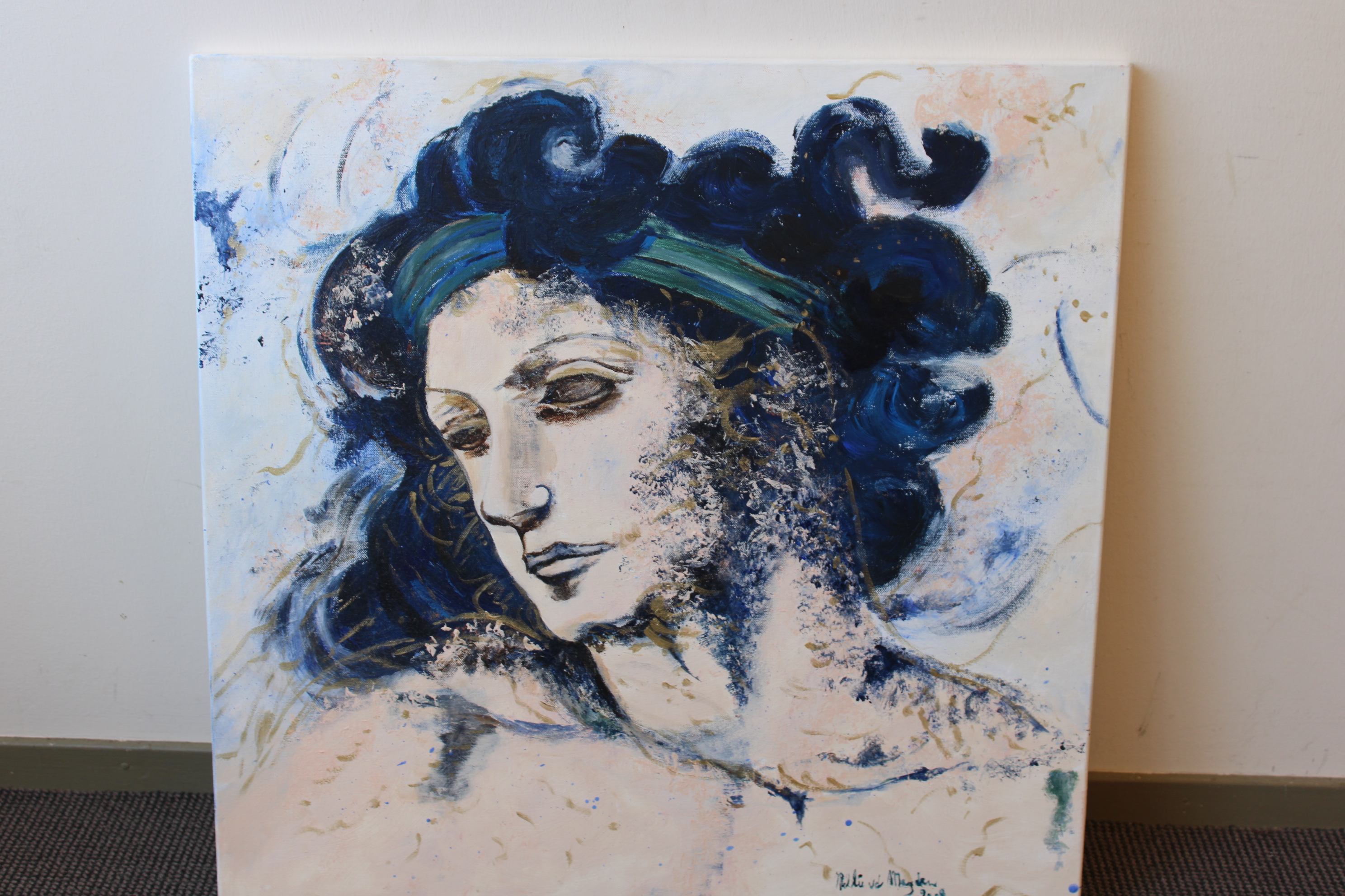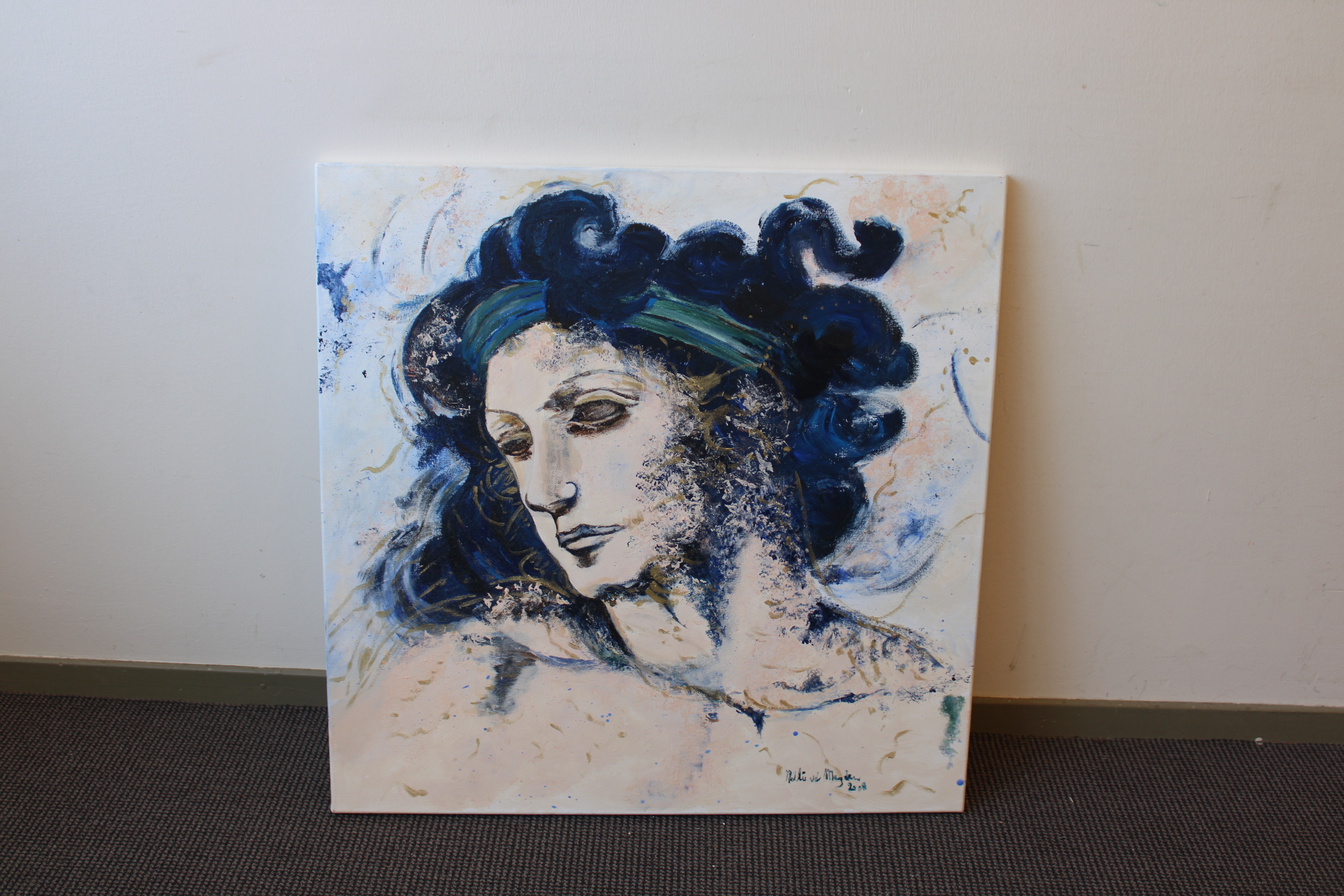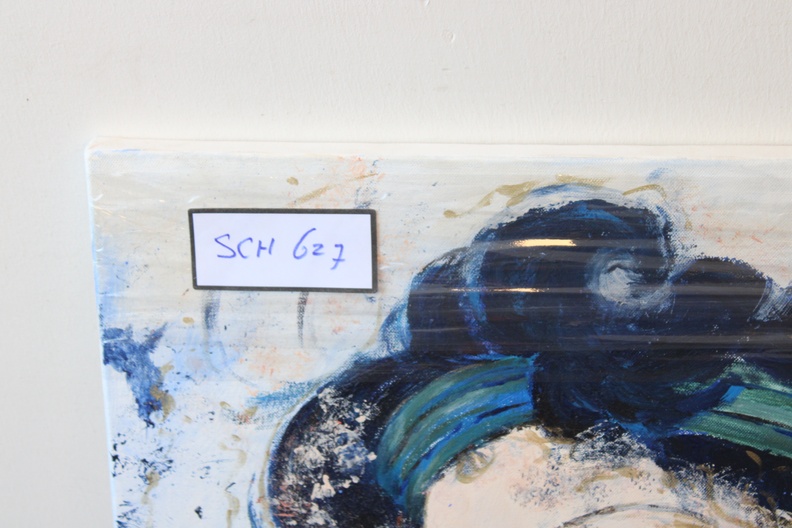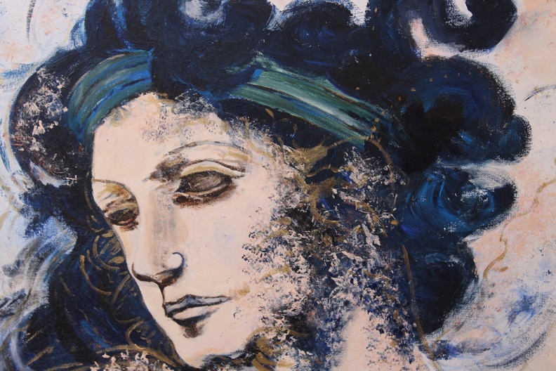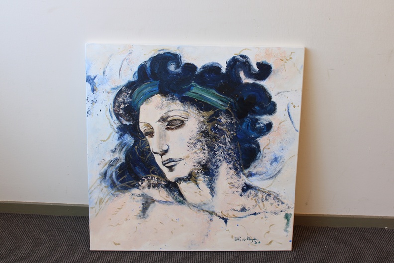 Naar het bekende schilderij van Gertie Bierenbroodspot: Vrouwenhoofd, waarschijnlijk een Griekse godin. Acryl op doek. Zonder lijst.