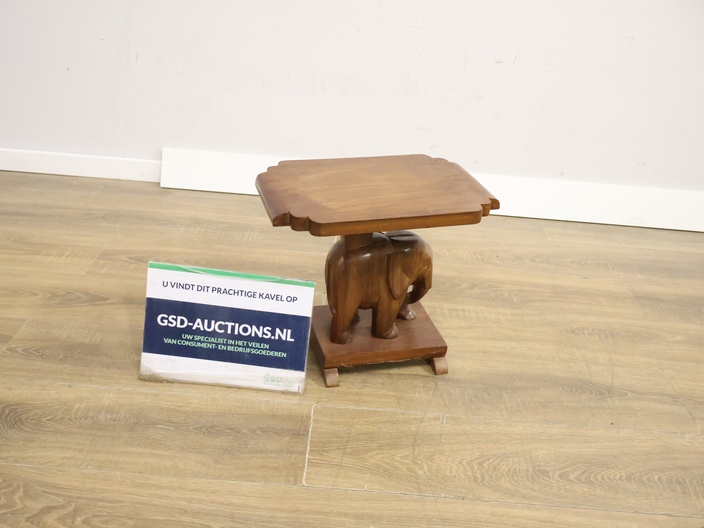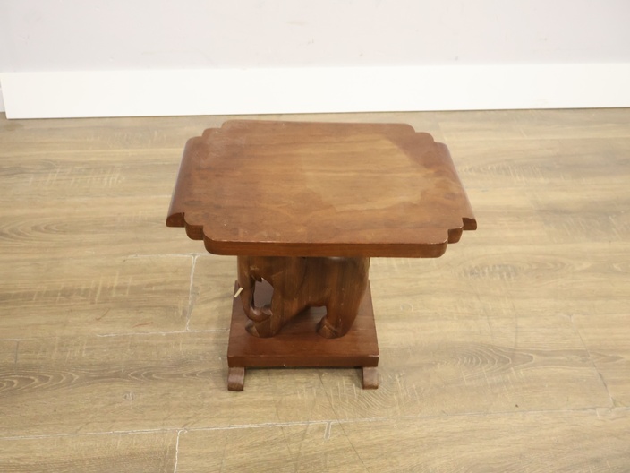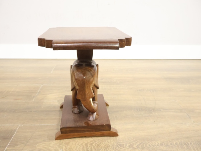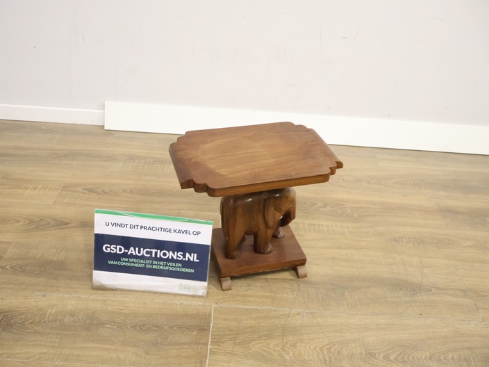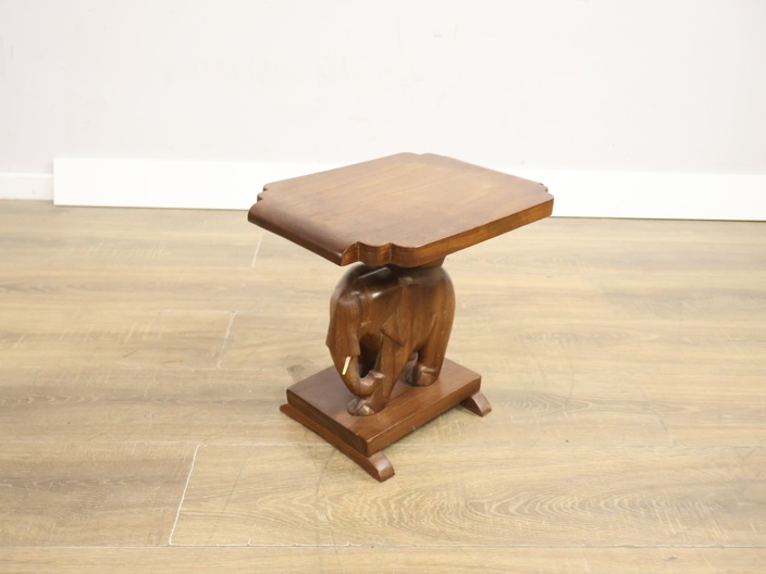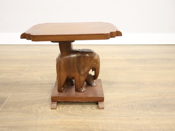 Vintage Houten Bijzettafel met Olifantenvoet