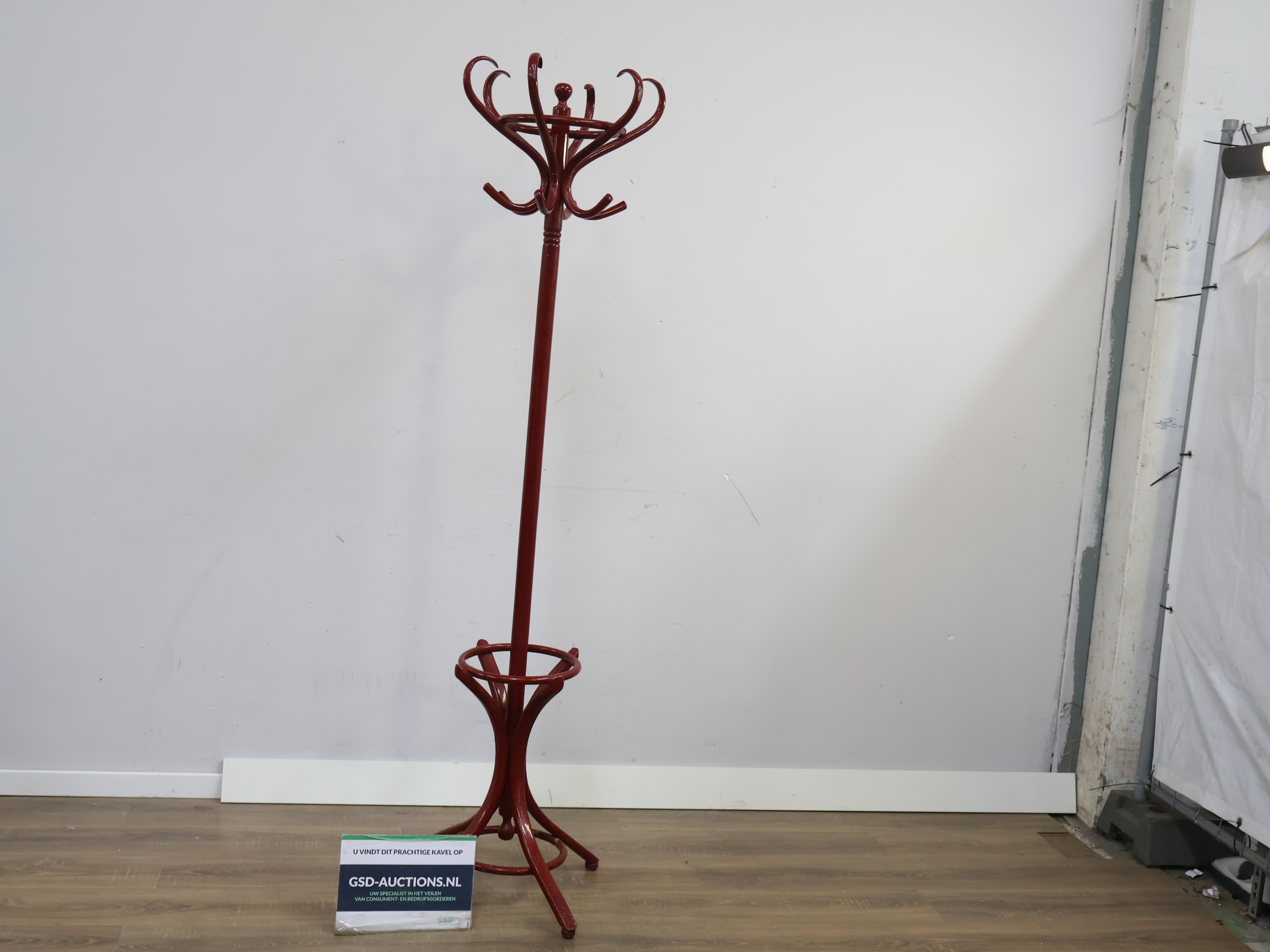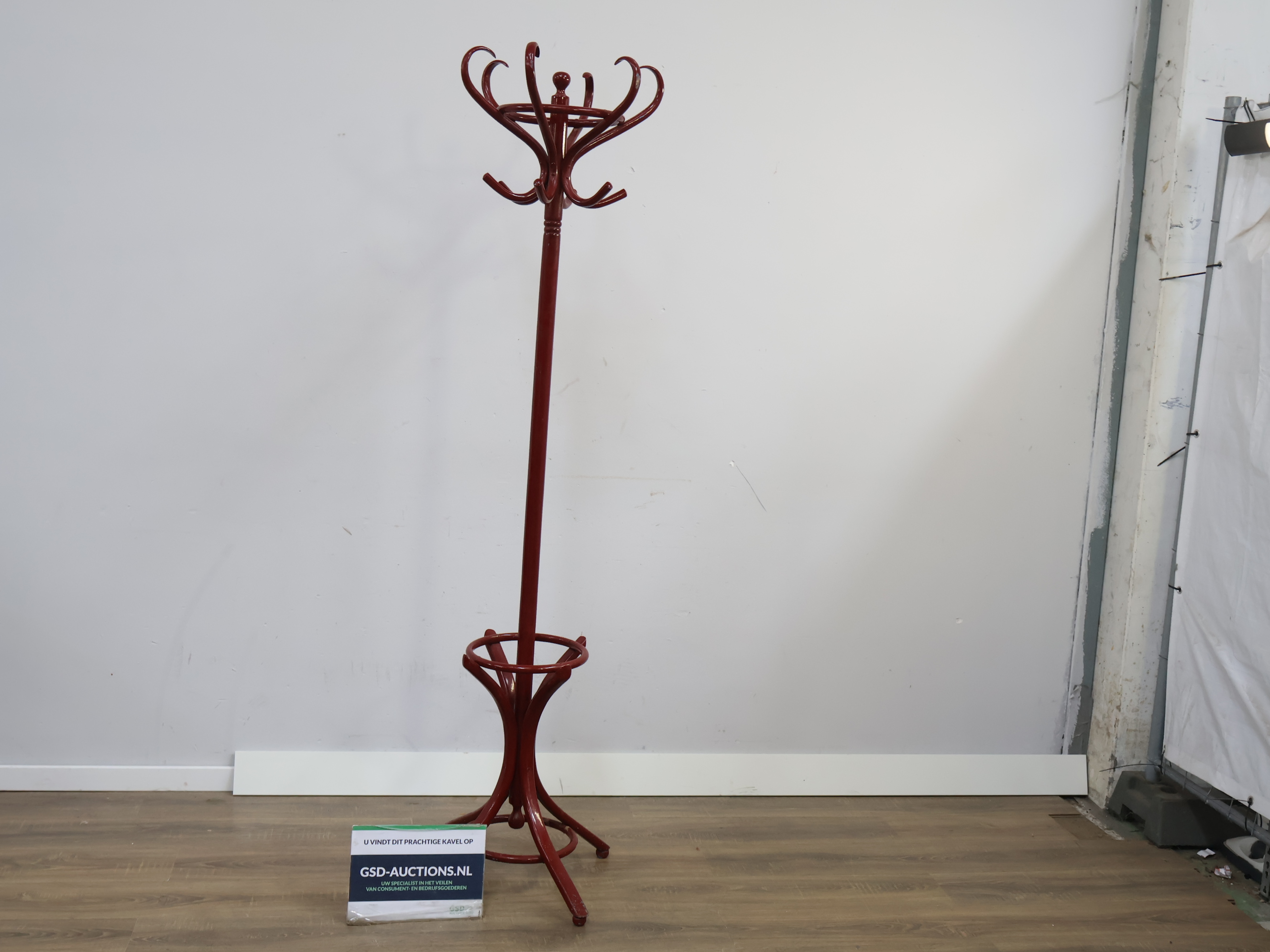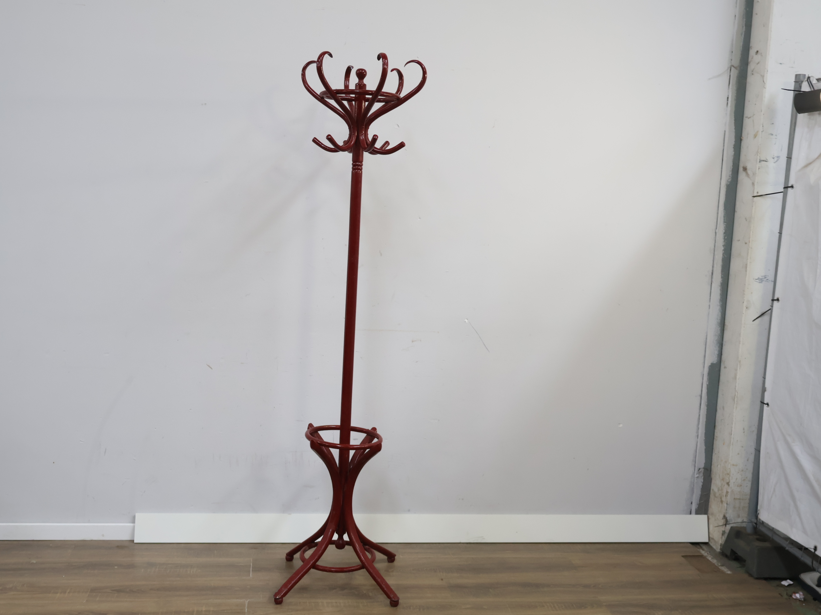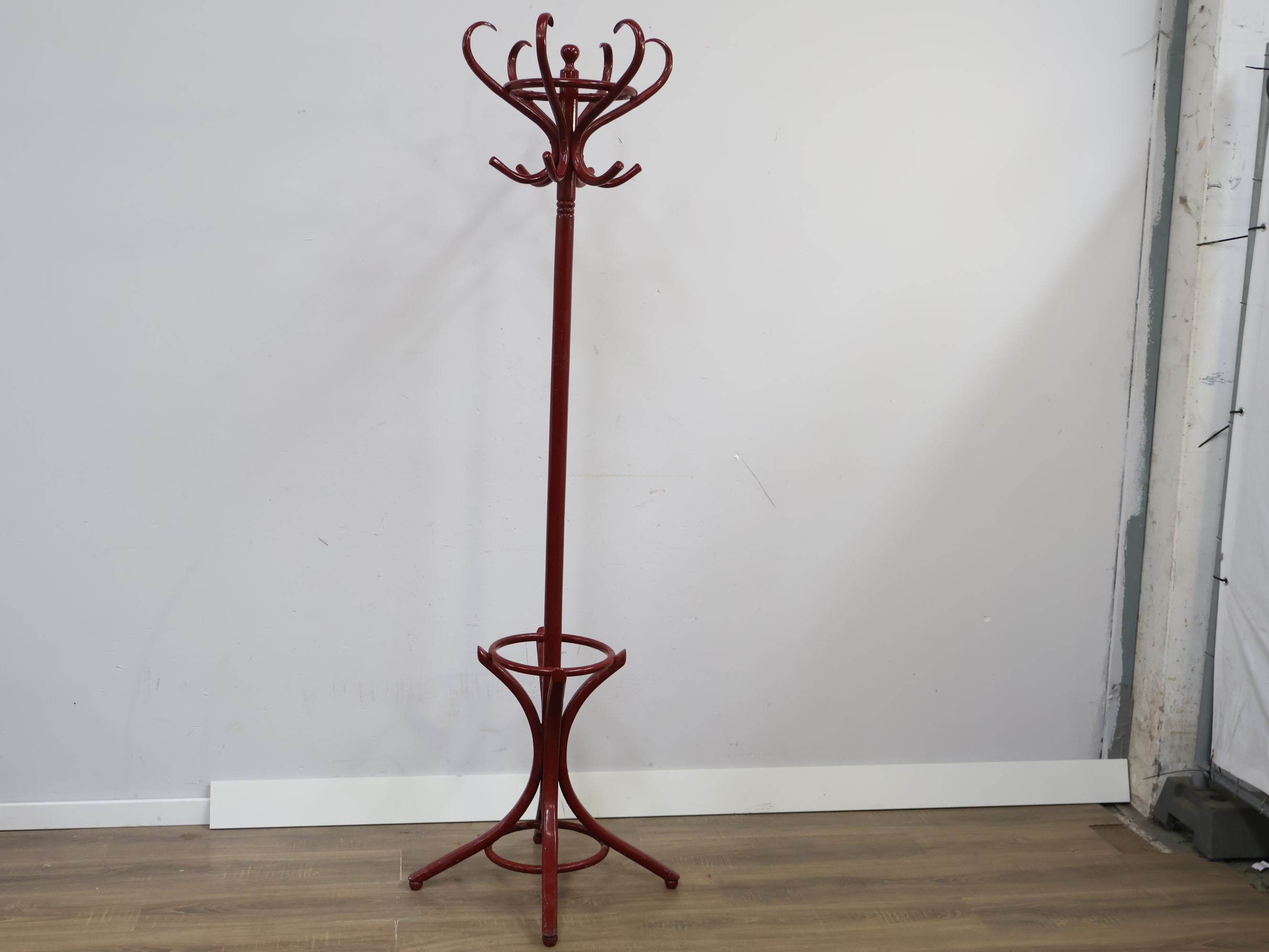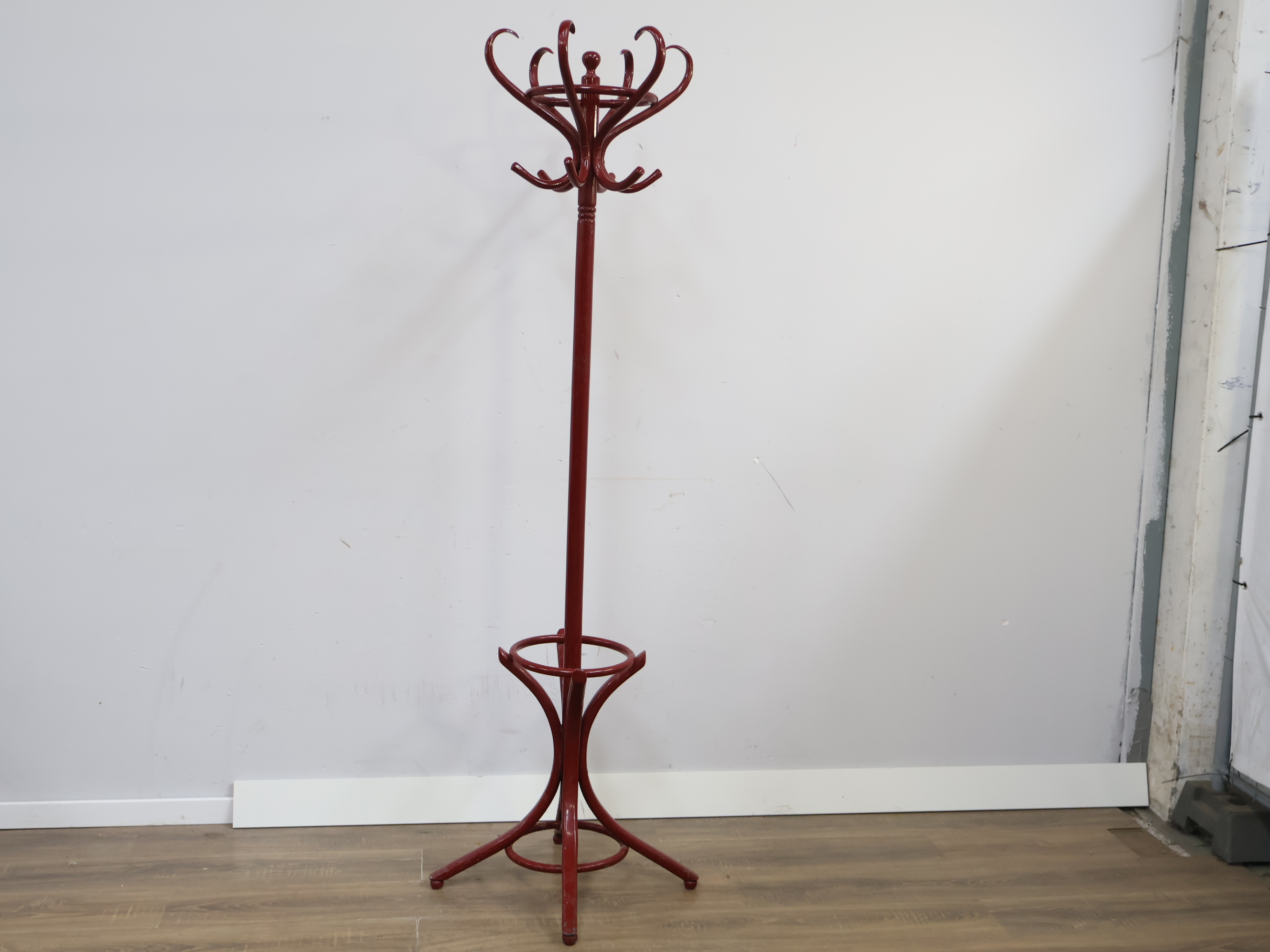 Vintage Donkerrode Staande Thonet Kapstok