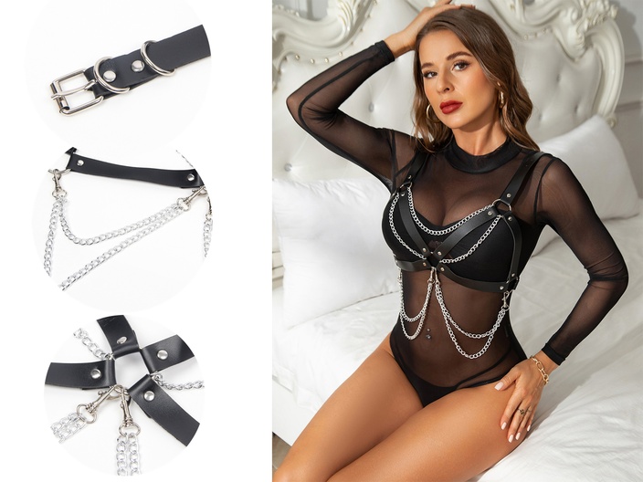 De modieuze kettingbeha is zeer geschikt voor een spannende avond! Combineer het met een doorschijnende zwarte body of draag het zonder iets er onder! De mogelijkheden zijn eindeloos.