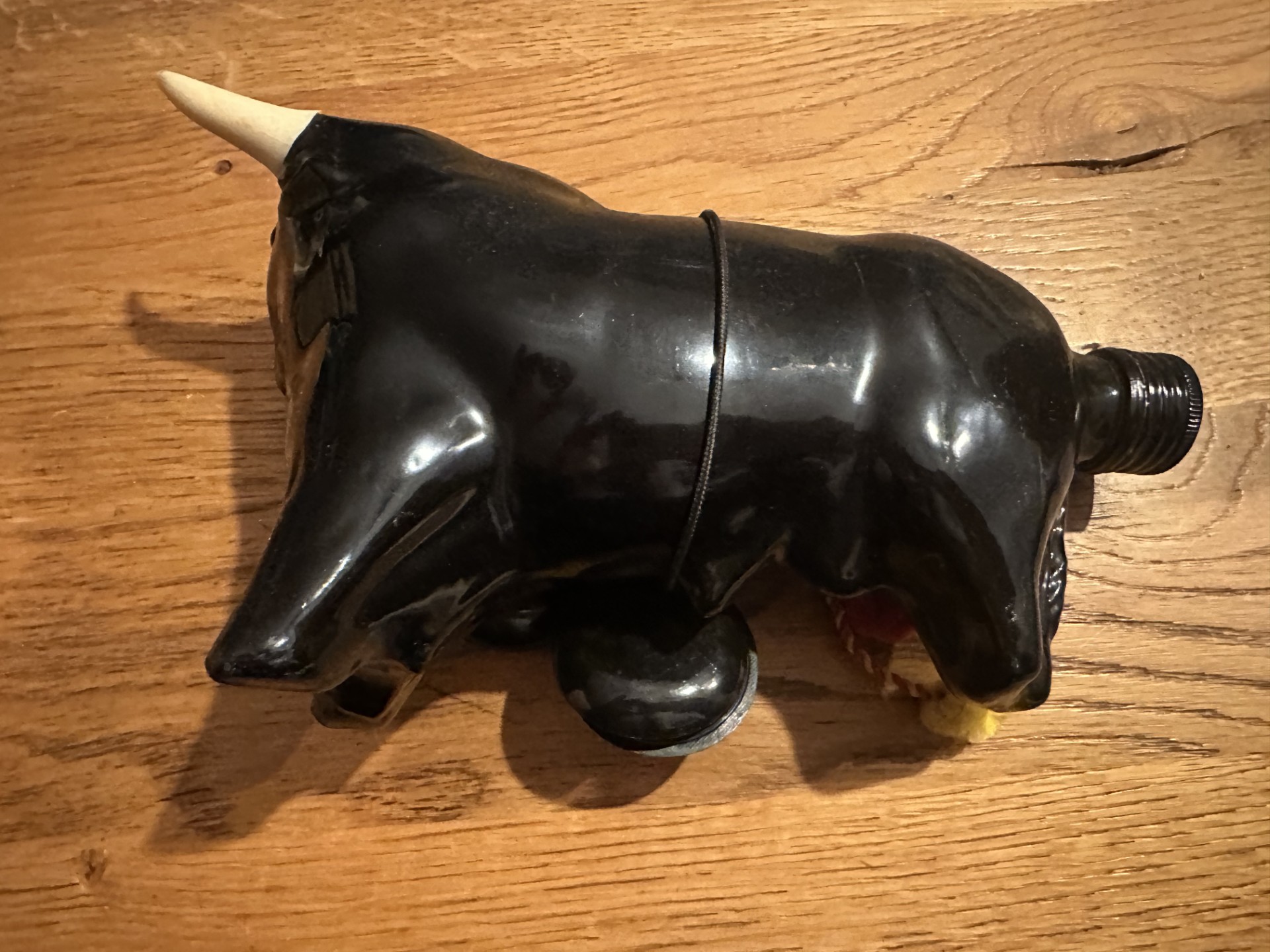 Te koop aangeboden: een vintage lege fles in de vorm van een stier.
