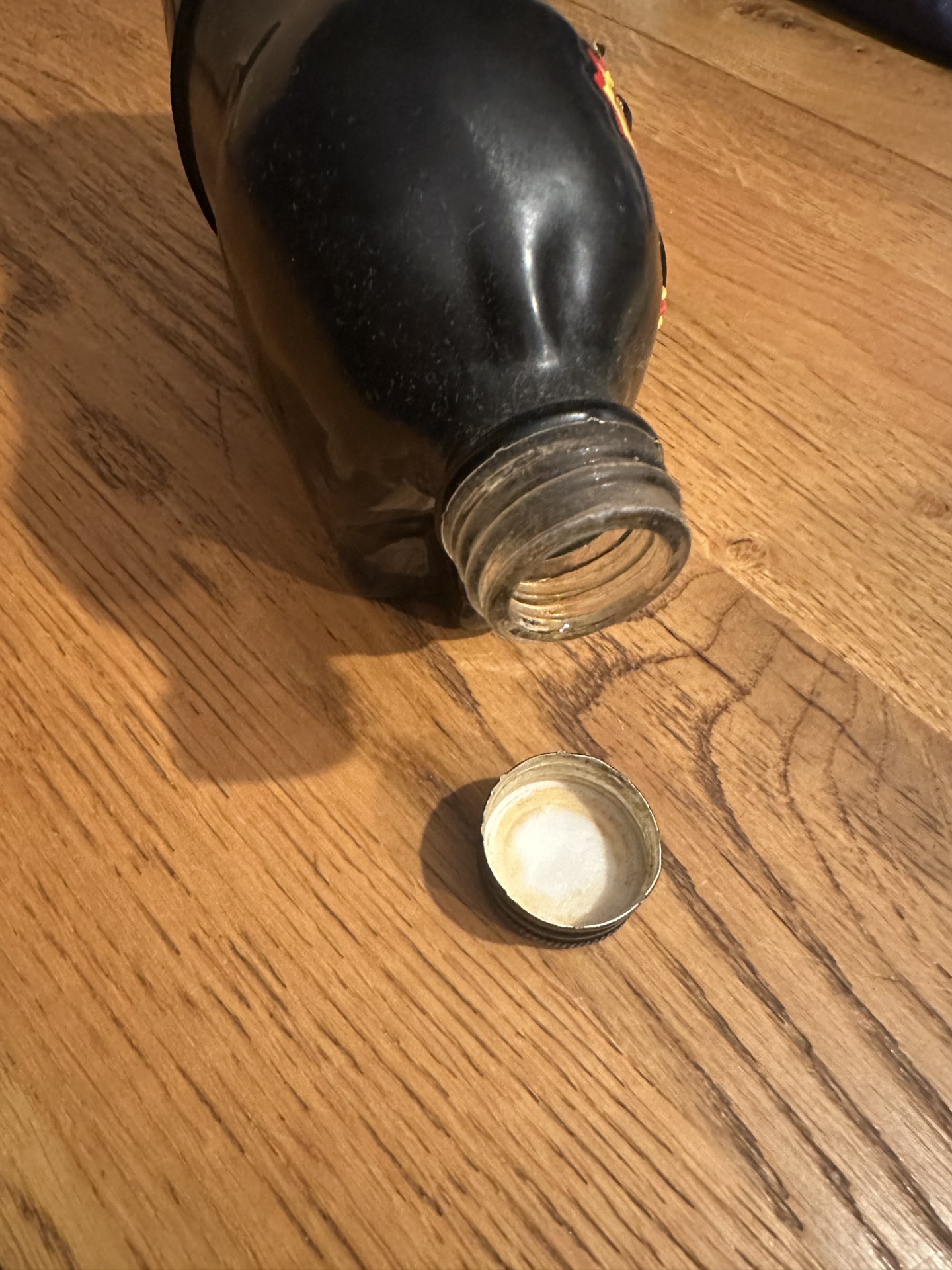 Dit betreft een lege, gebruikte fles met normale gebruikssporen passend bij de leeftijd. Verkoop vindt plaats zoals zichtbaar op de foto; deze is leidend. Er wordt geen garantie gegeven op volledigheid of eventuele kleine gebreken anders dan vermeld.