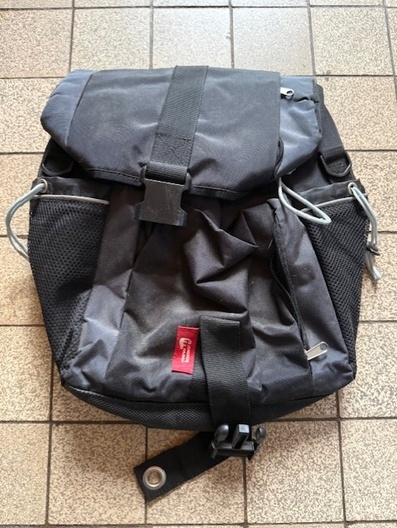 Deze tas is NIET getest en NIET nagekeken op werking, bevestiging, slijtage of volledigheid. De staat en functionaliteit zijn onbekend. Verkoop vindt plaats uitsluitend op basis van de foto’s, deze zijn leidend.