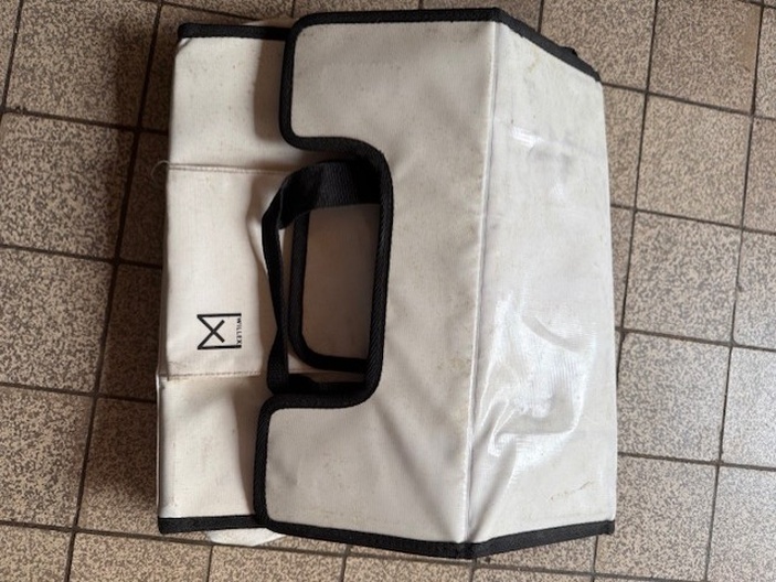 Deze tas is NIET getest en NIET nagekeken. Er wordt geen enkele garantie gegeven op draagvermogen, naden, handvatten of levensduur. De tas kan gebreken bevatten en wordt verkocht uitsluitend op basis van de foto’s.
