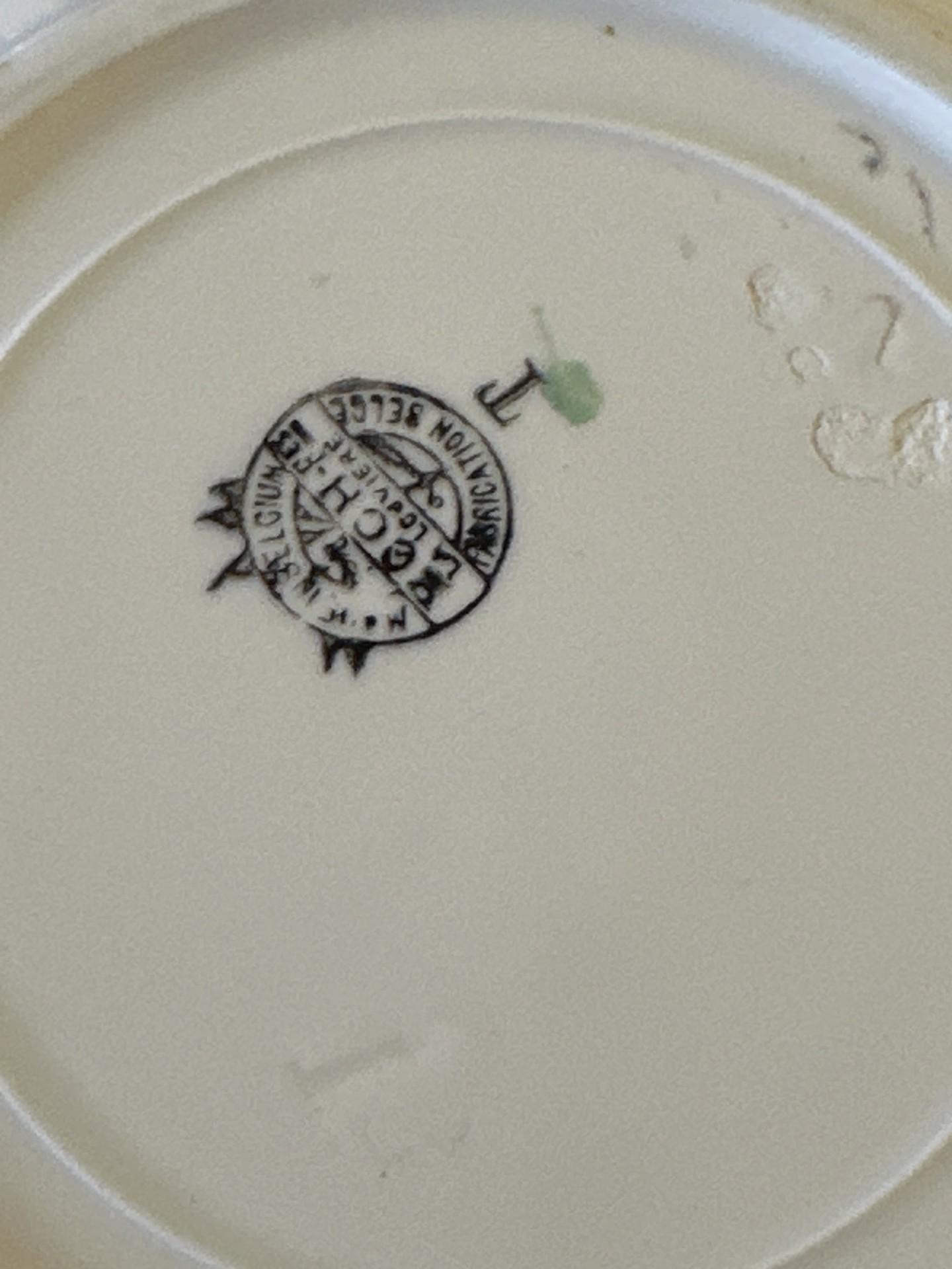 De schaal verkeert in gebruikte staat met zichtbare gebruikssporen en verkleuringen passend bij de leeftijd (zie foto’s). Aan de onderzijde voorzien van het Boch Belgium merkteken. Een leuk decoratief item, maar ook interessant voor verzamelaars van Boch, Belgisch aardewerk of vintage kinderservies.