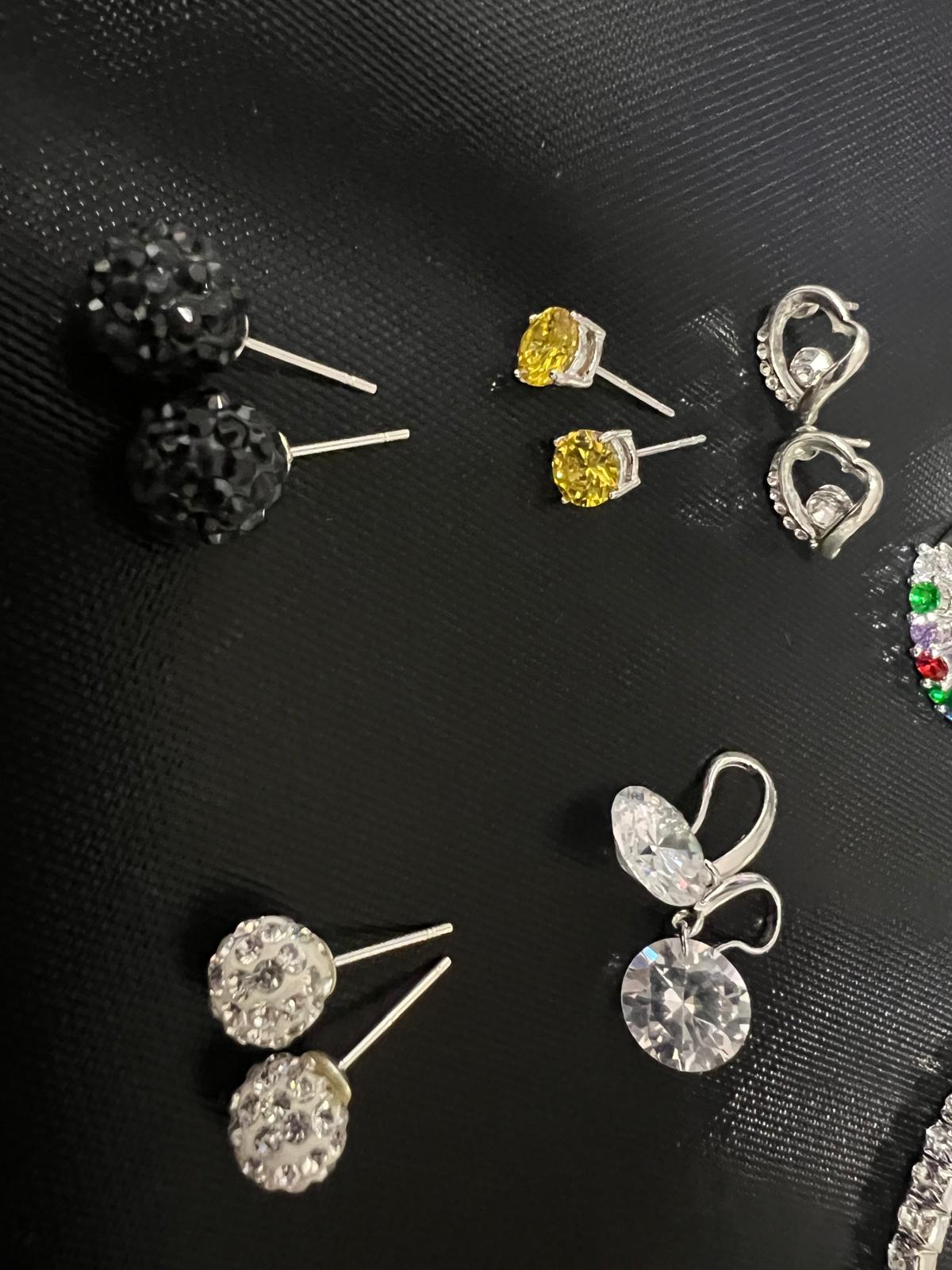 Deze mooie set van 10 verschillende trendy sieraden bestaat uit 1 ring, 1 ketting met bijpassende oorbellen en 7 paar oorbellen, verpakt in een leuk opbergtasje.