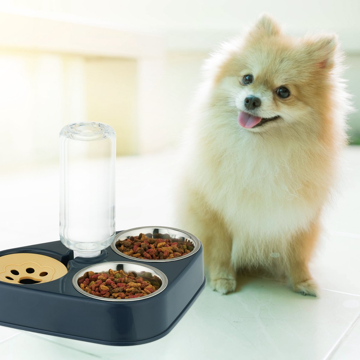 Voerbak kat /hond met standaard en water dispencer