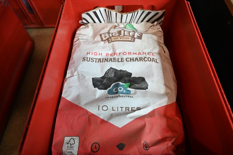 Zak met kolen en 3 spatels