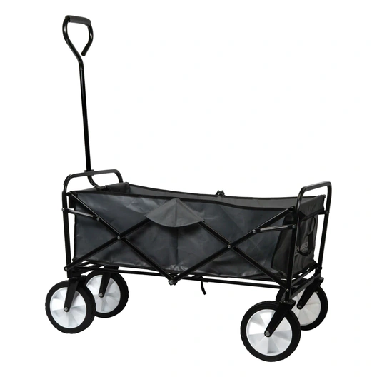 Ideaal voor op vakantie of naar het strand! Dit is een solide wagen met een zwart gepoedercoate stalen constructie en grijs polyester stof