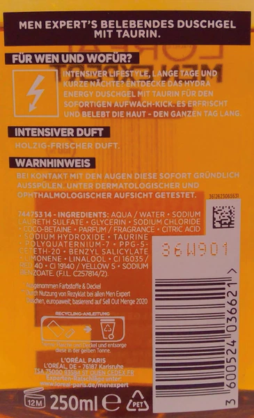 L'Oréal Men Expert Douche 250ml Hydra Energy  (6 stuks in doos)