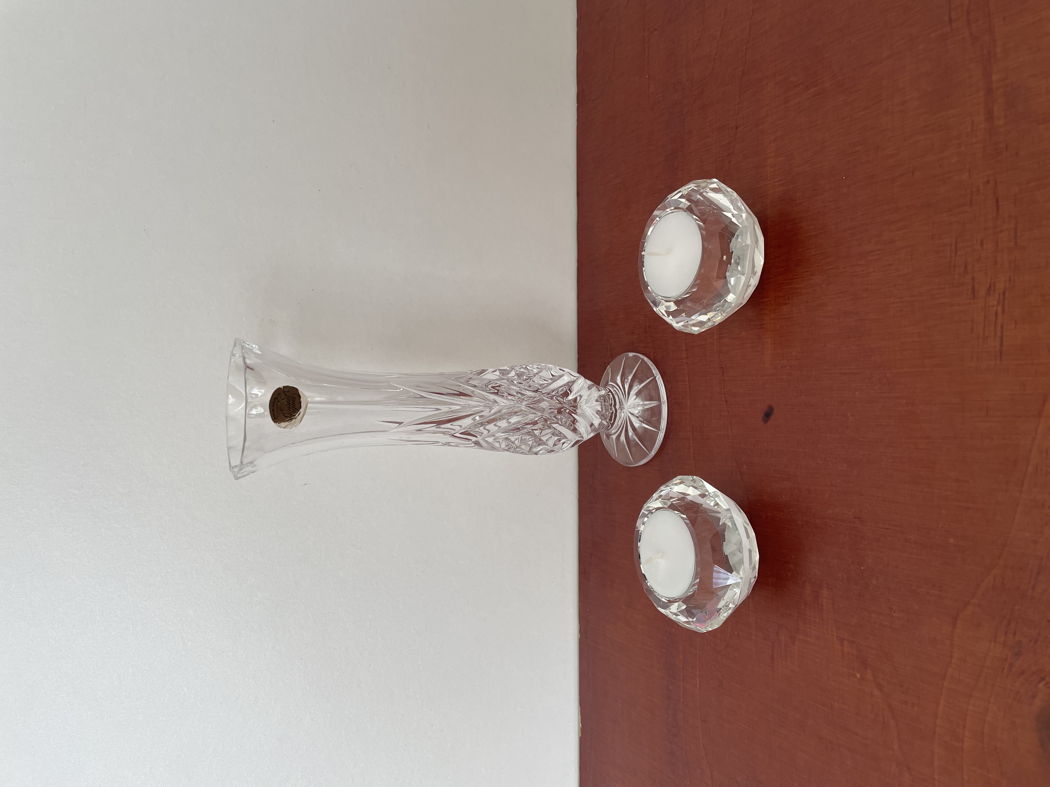 Kristallen vaas en kaars houders
