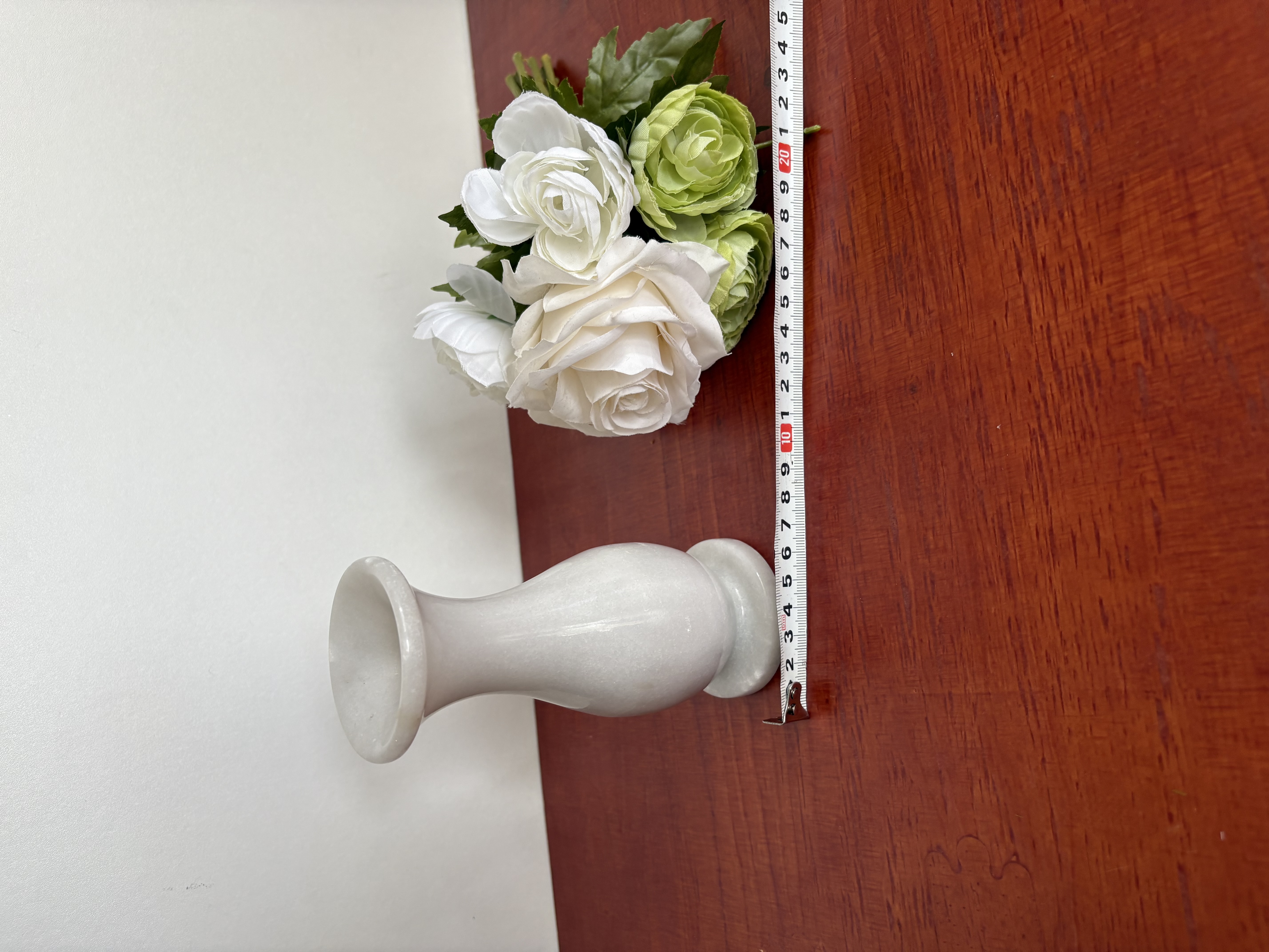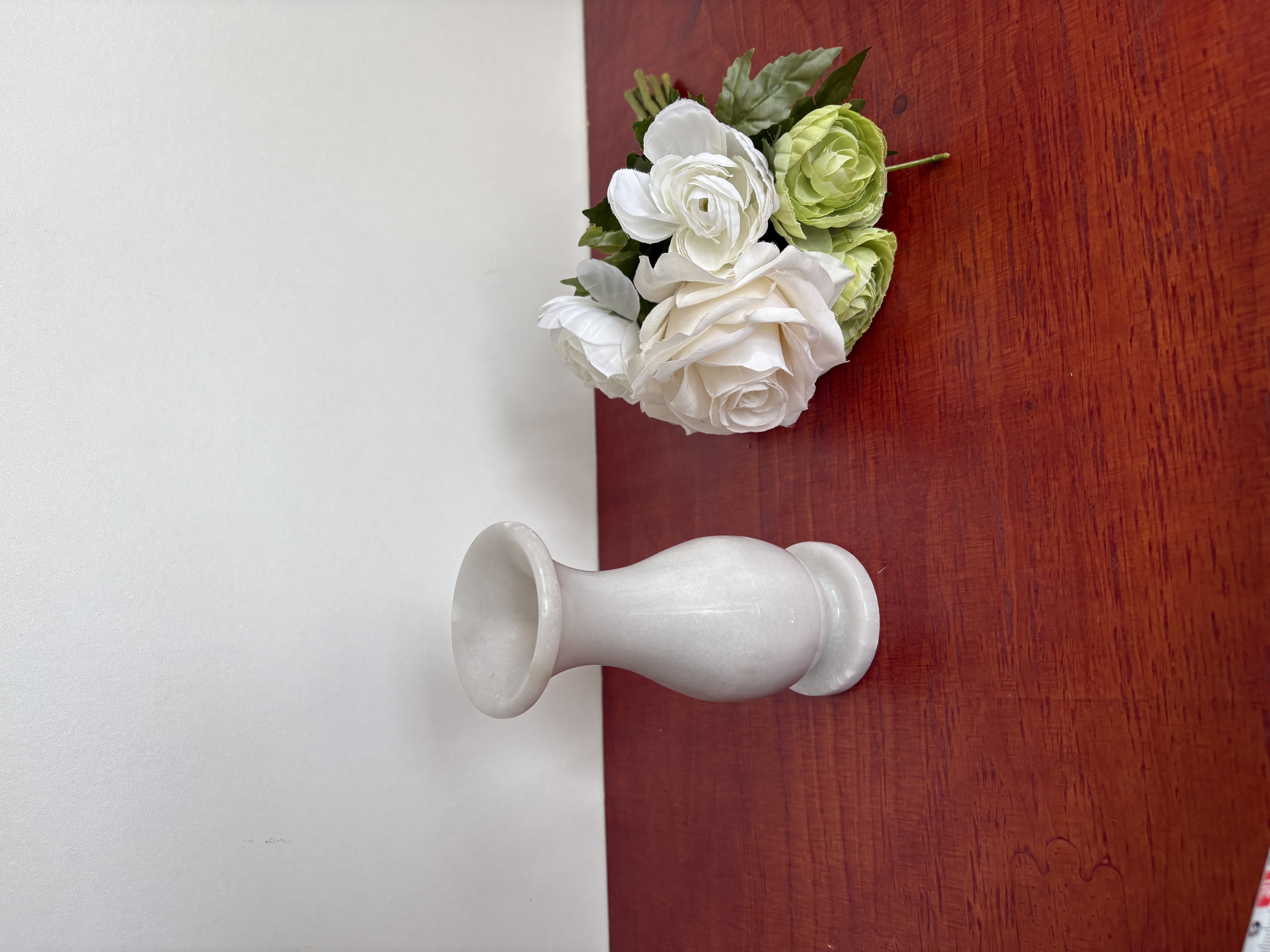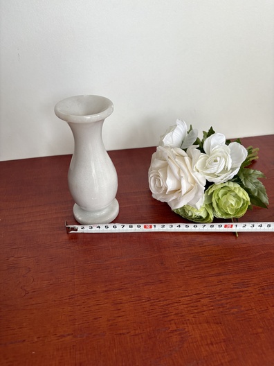 Witte marmeren vaas met kunstbloemen (**3)