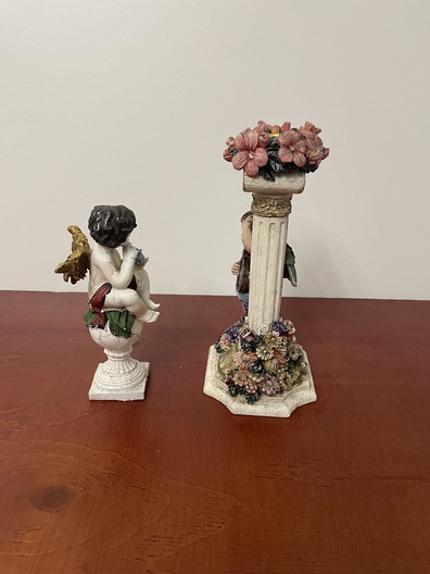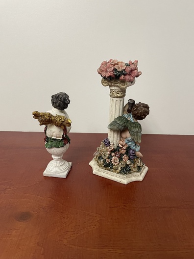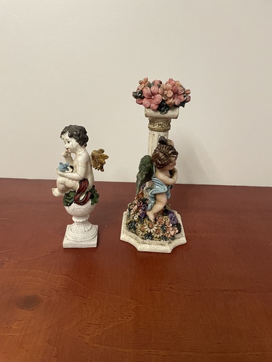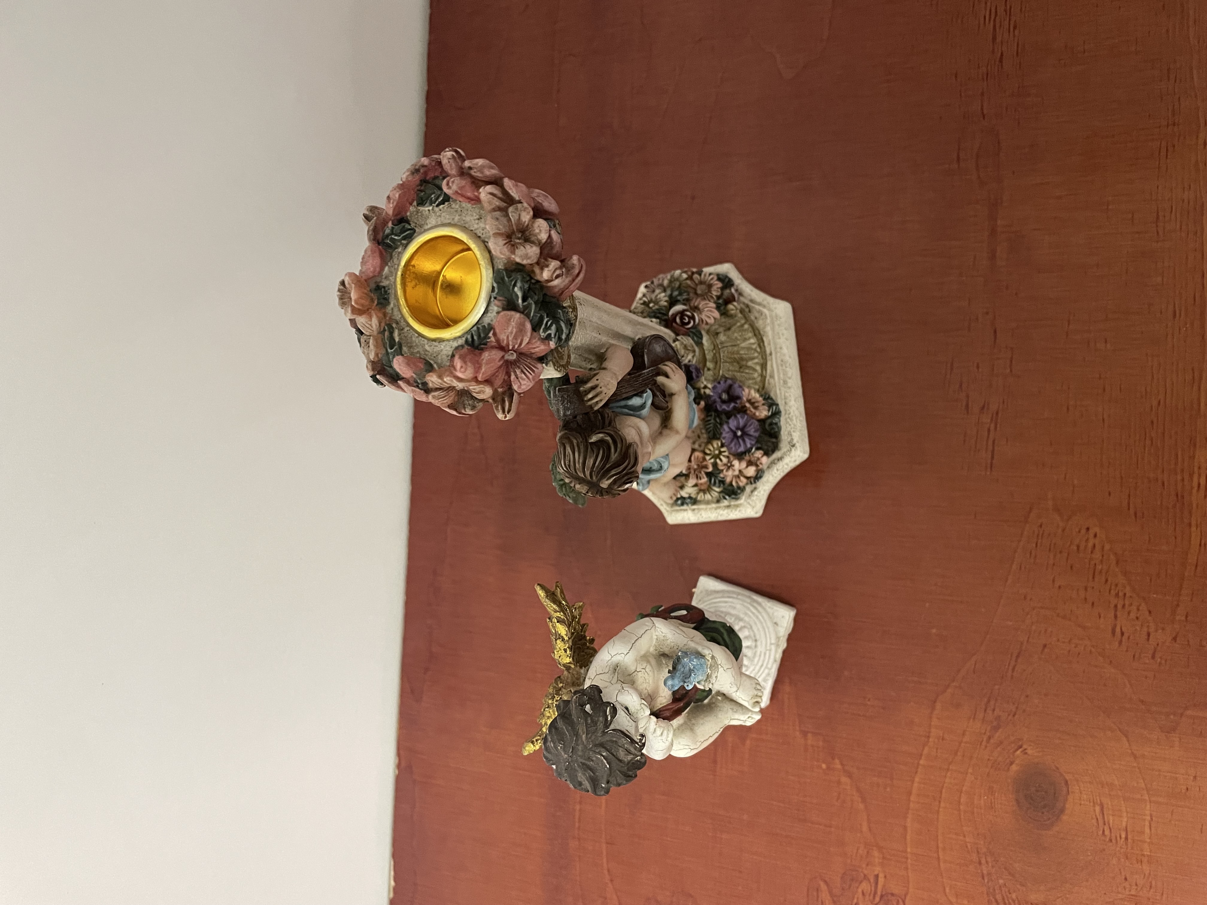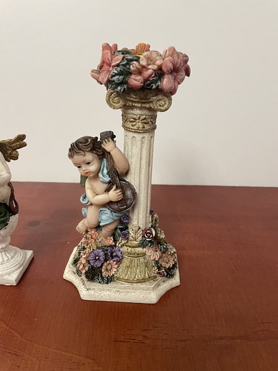 Kandelaar met engeltjes en een beeld van angel