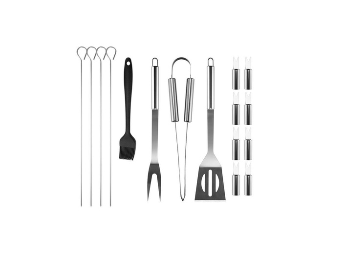- Inhoud: 16 gereedschappen, met o.a. een borstel, spiesjes, een tang, etc.