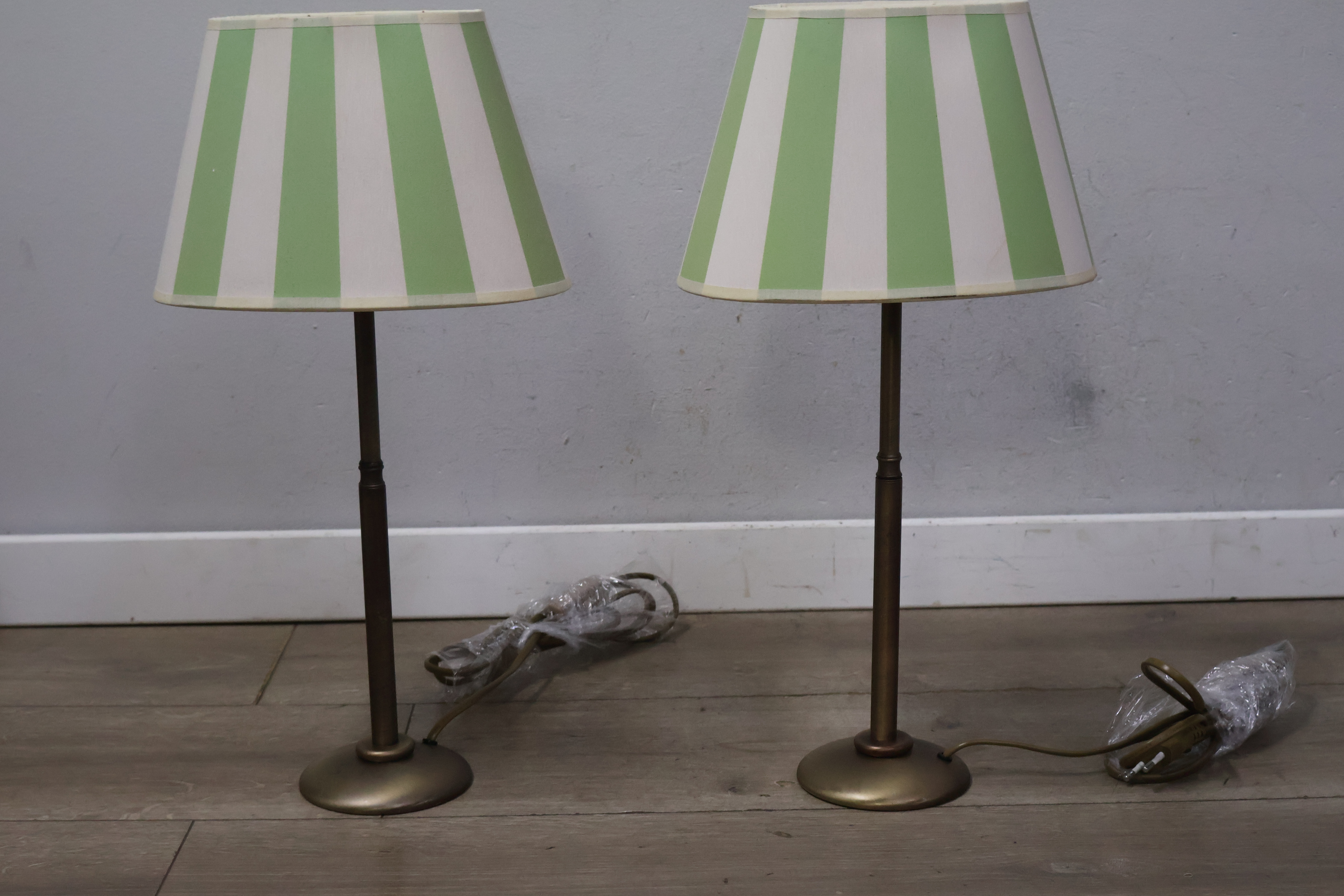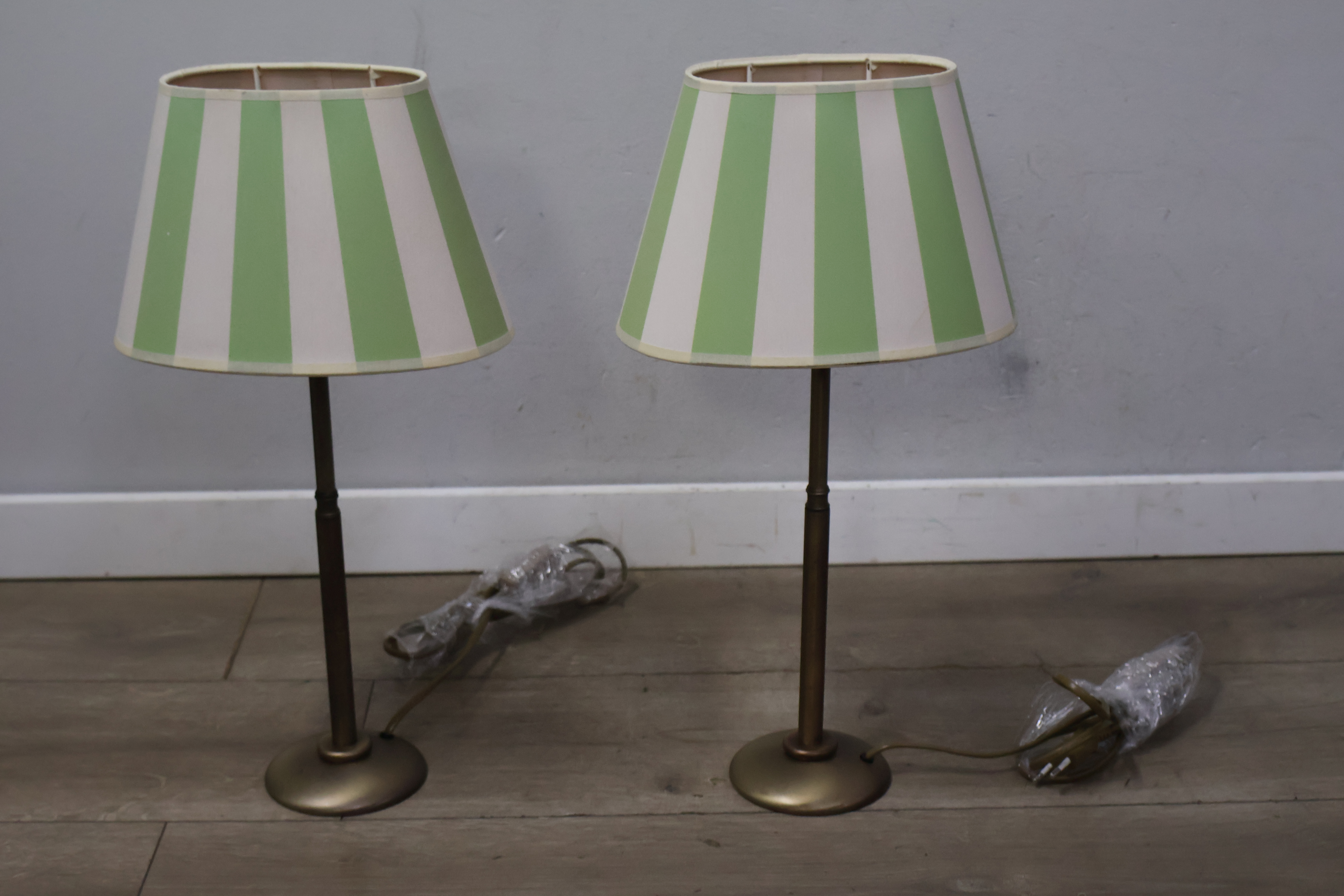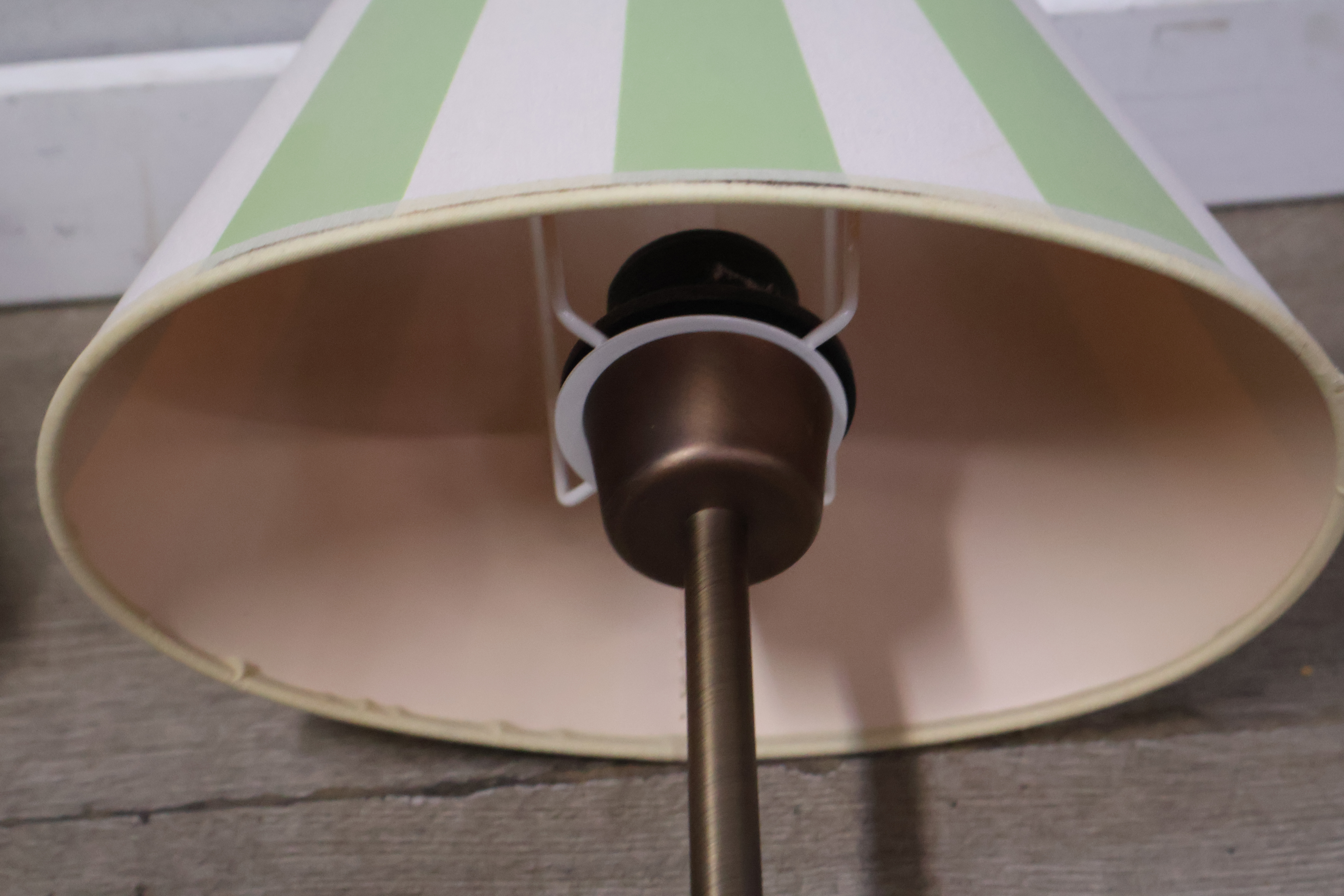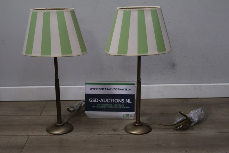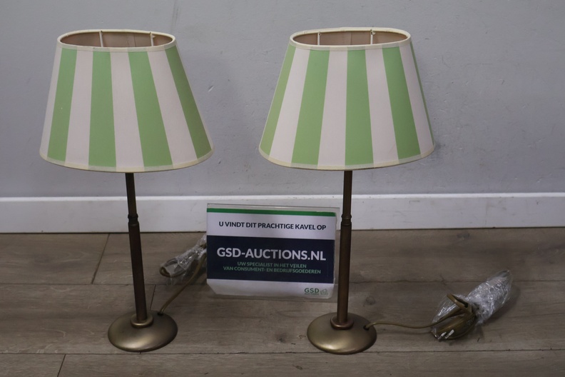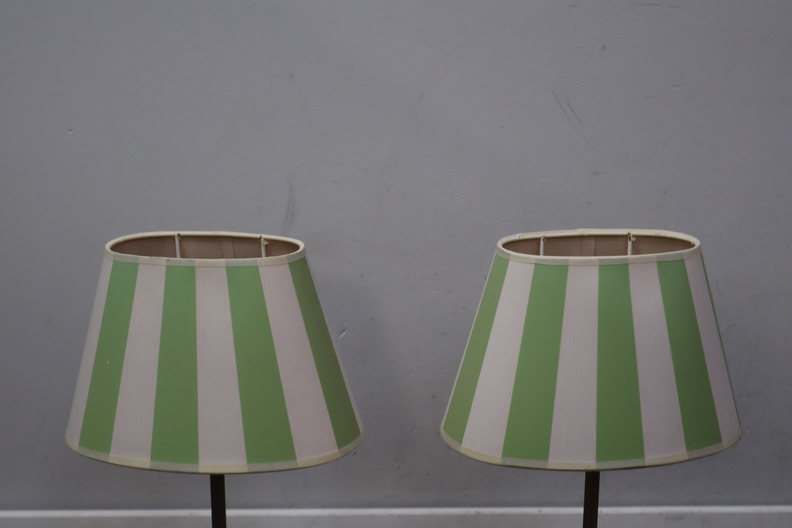 Metalen tafellampen met groen-witte lampenkappen