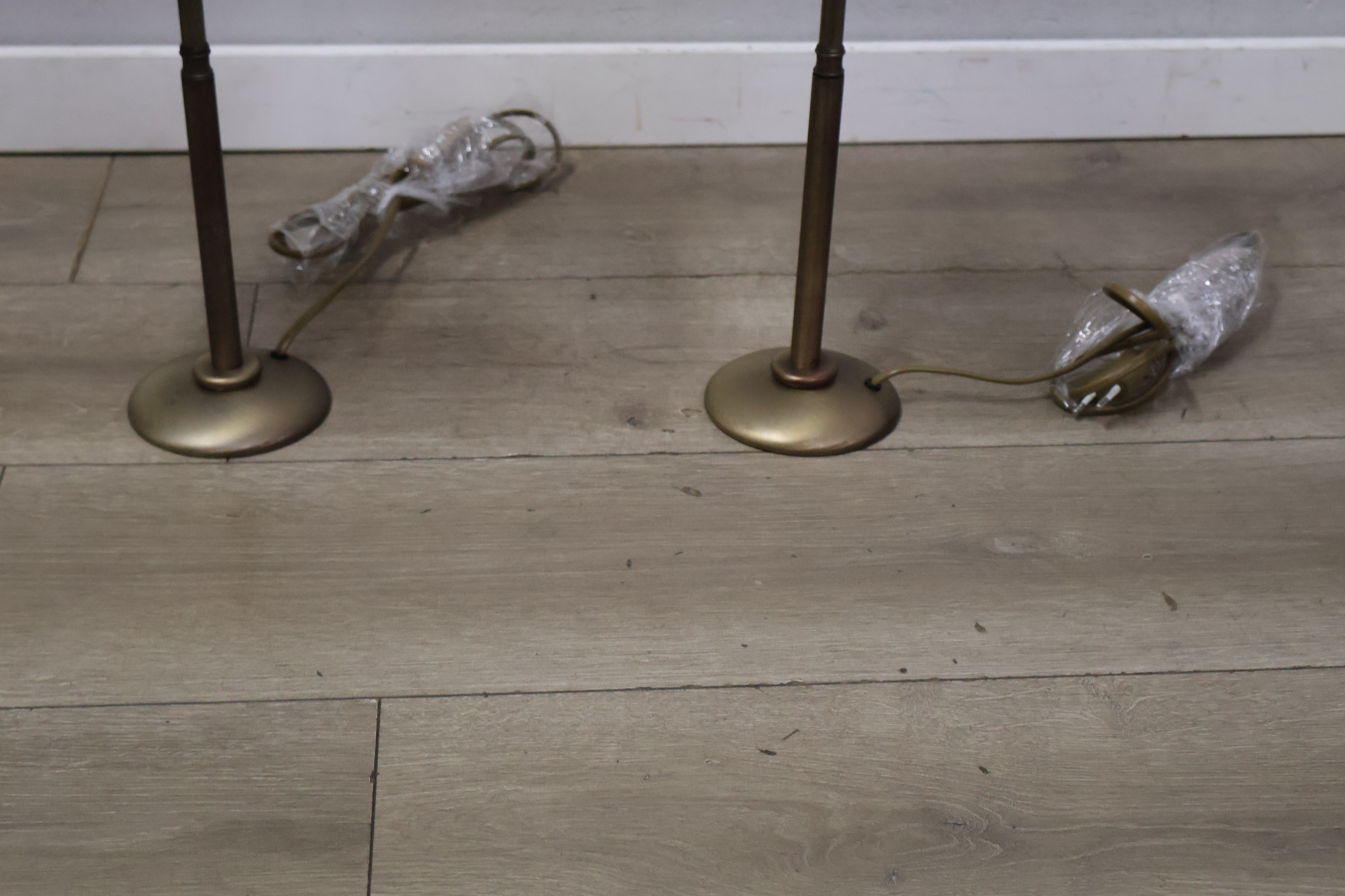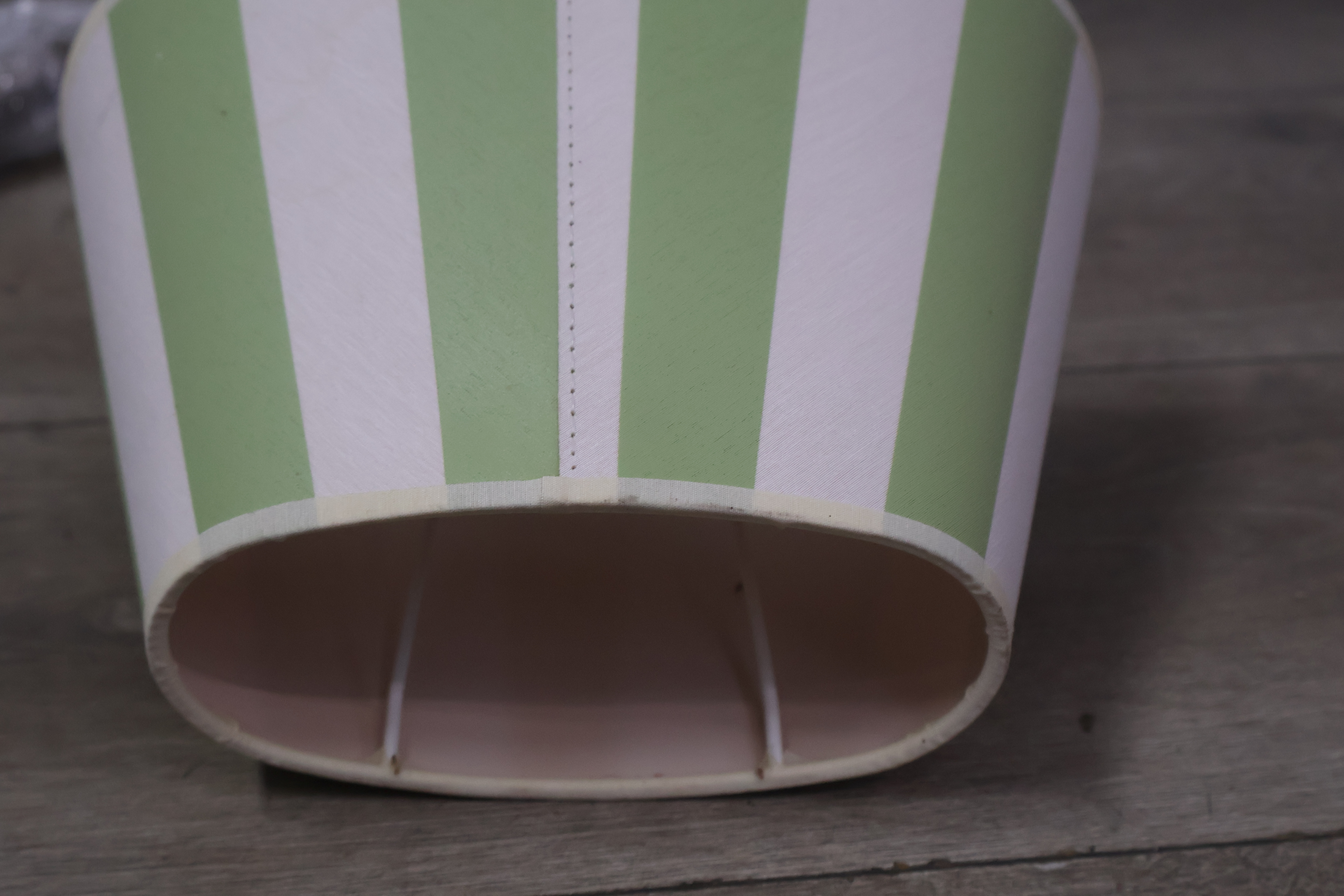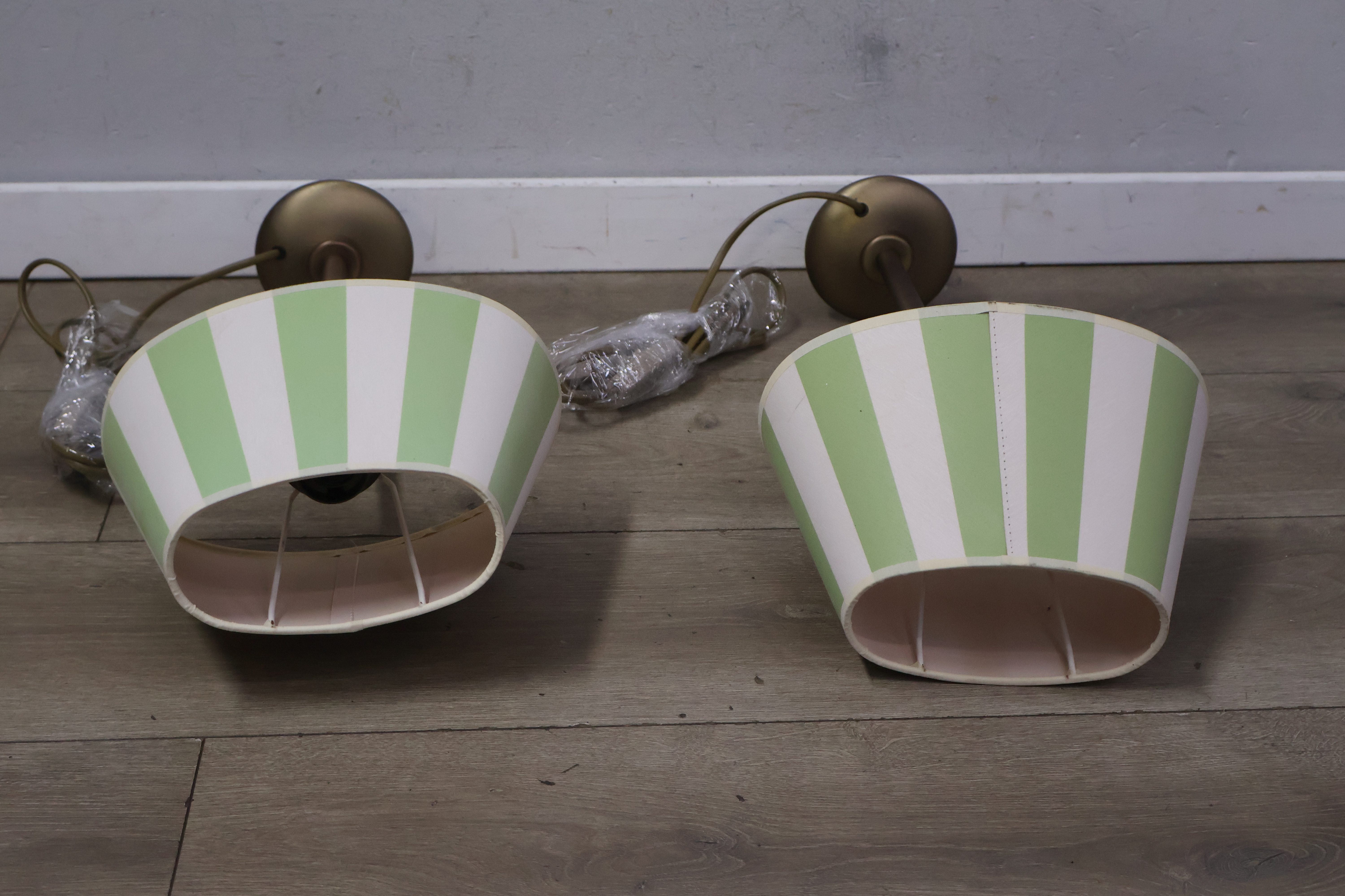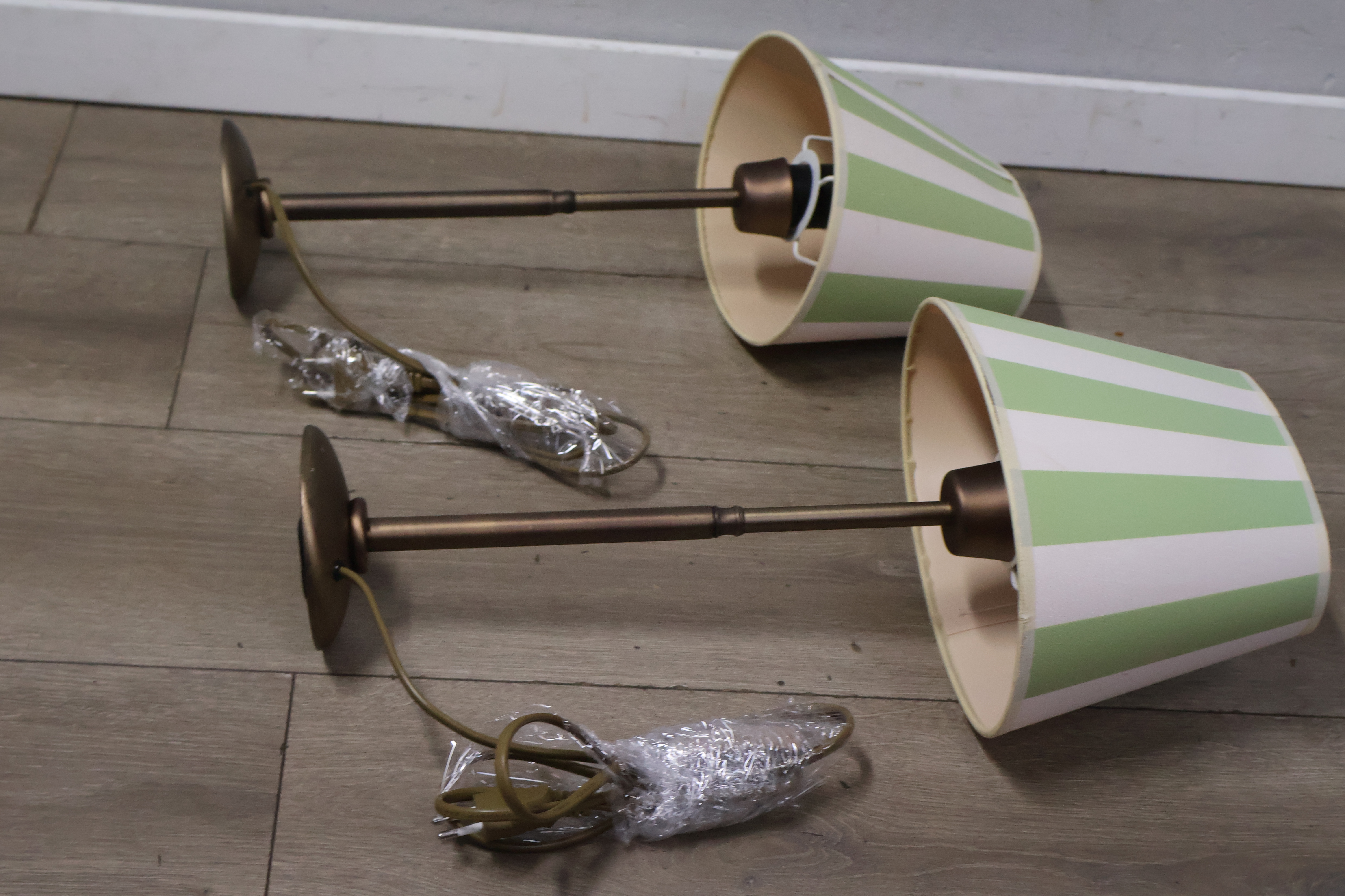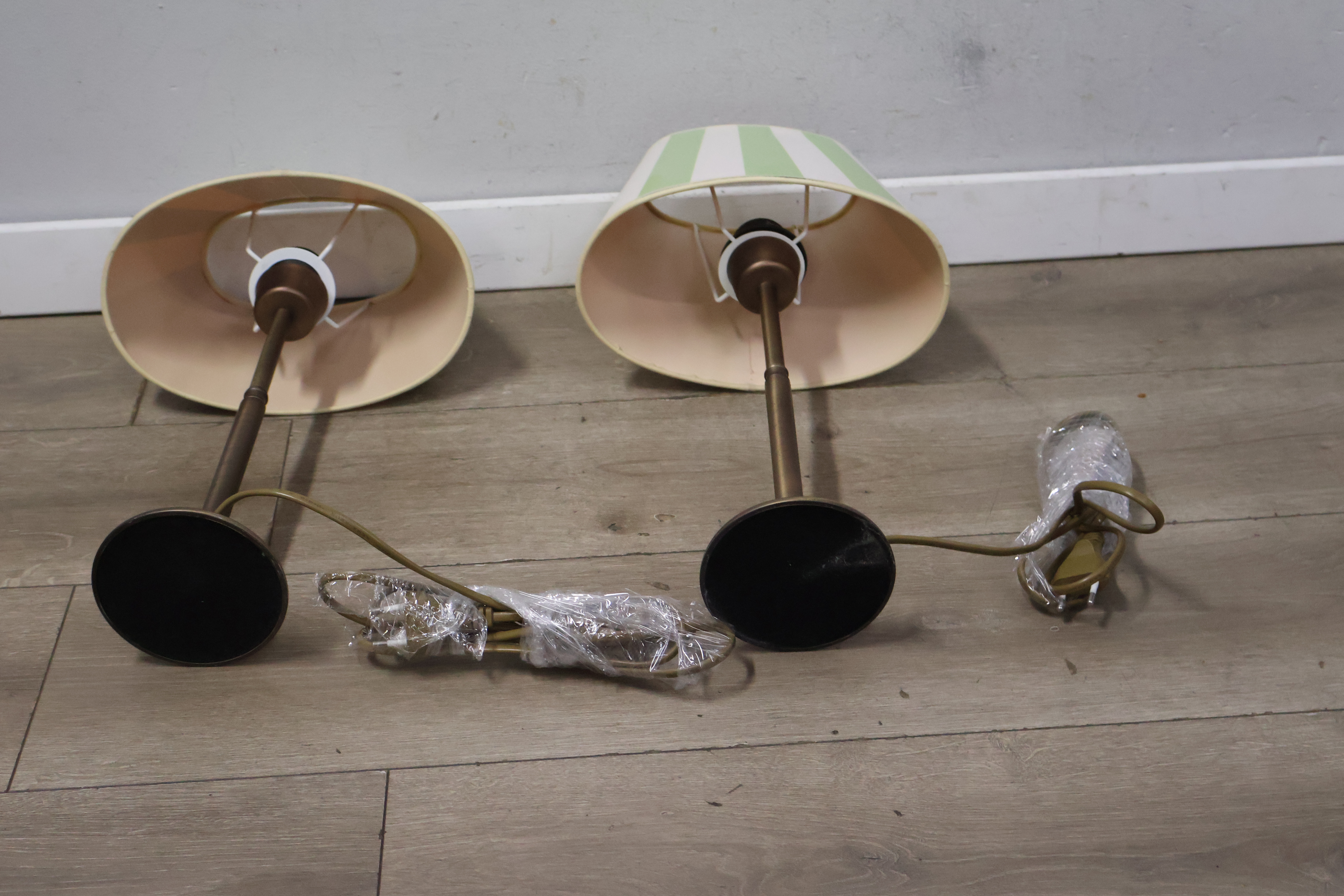 Metalen tafellampen met groen-witte lampenkappen
