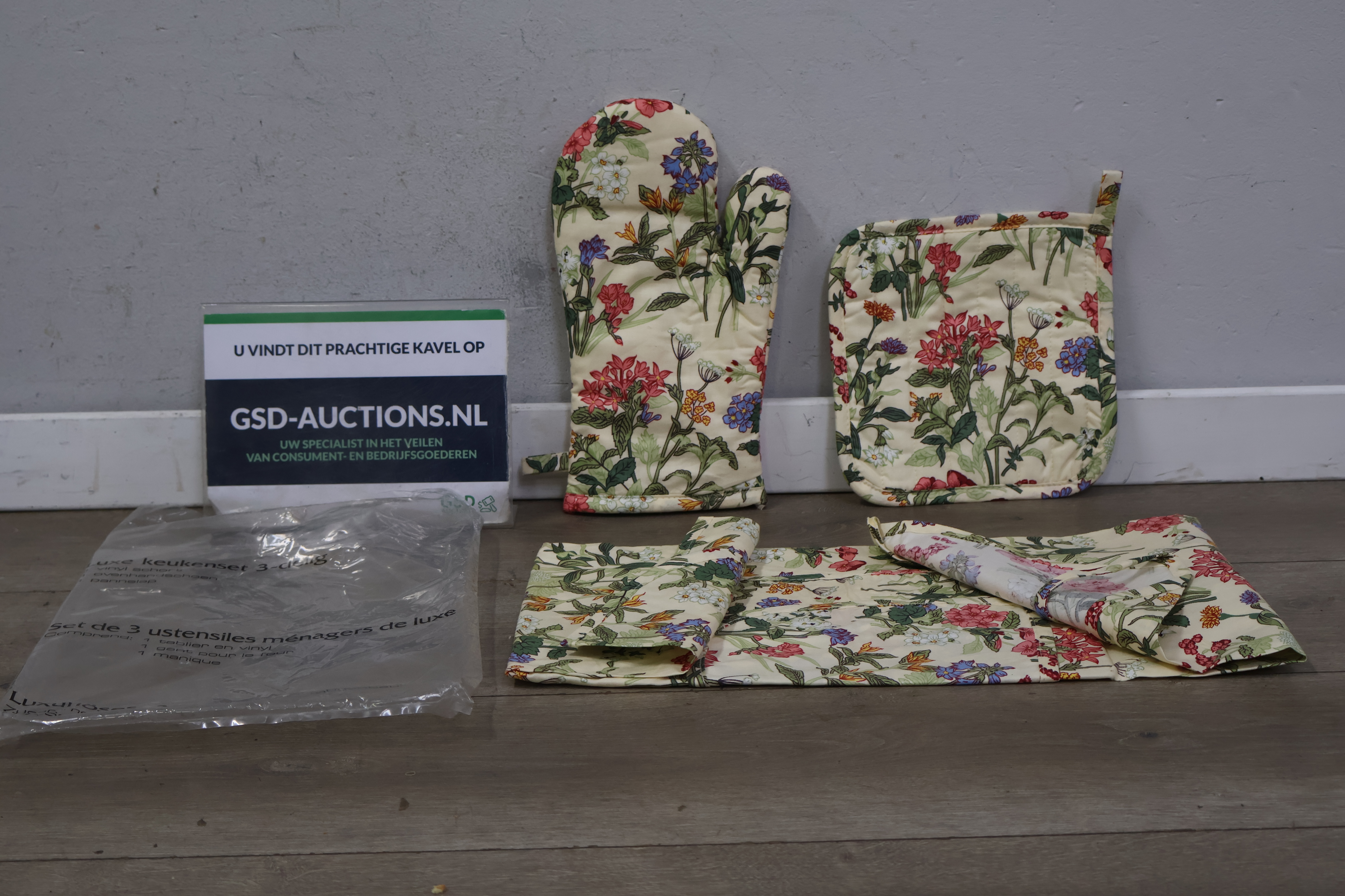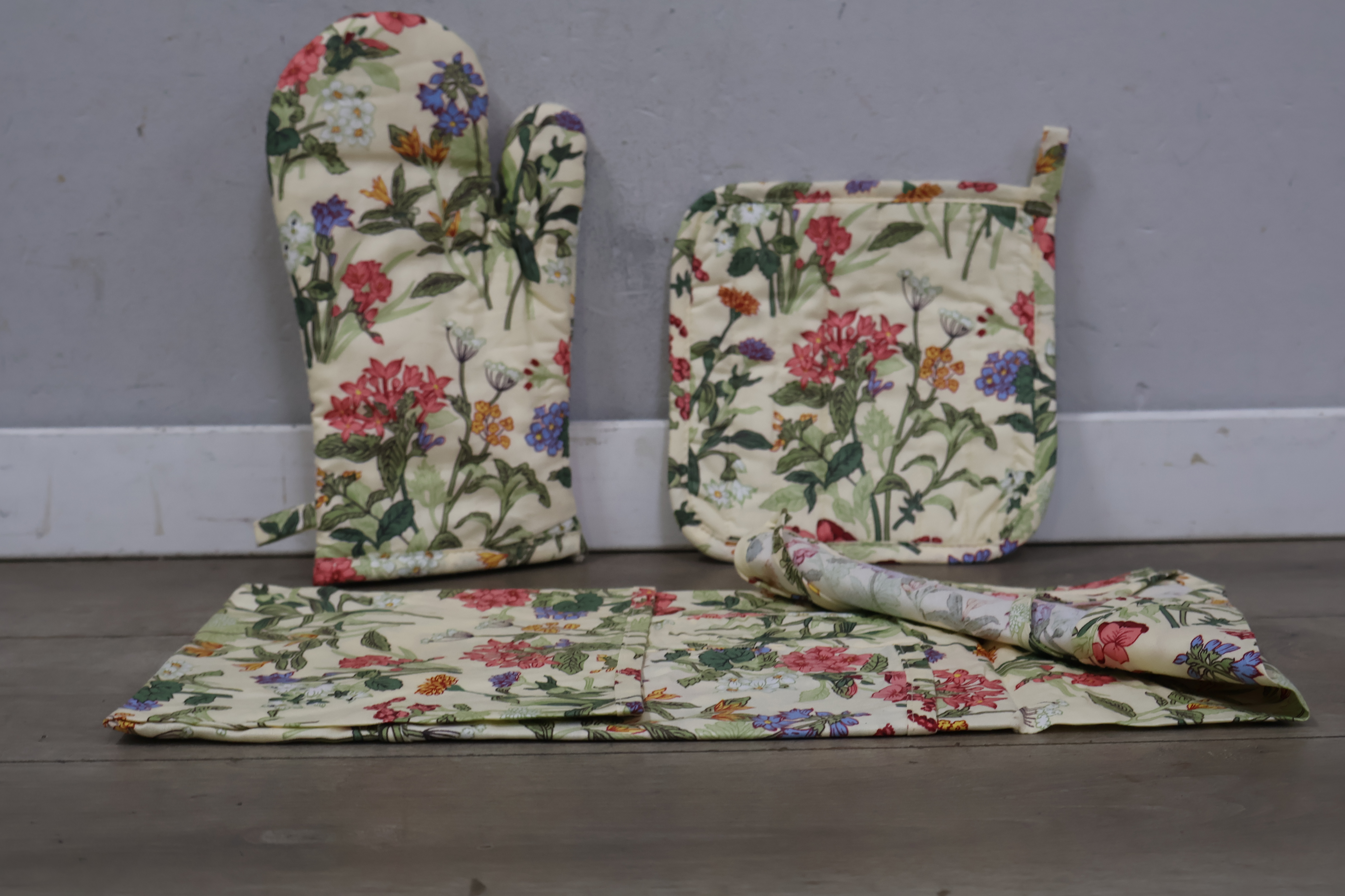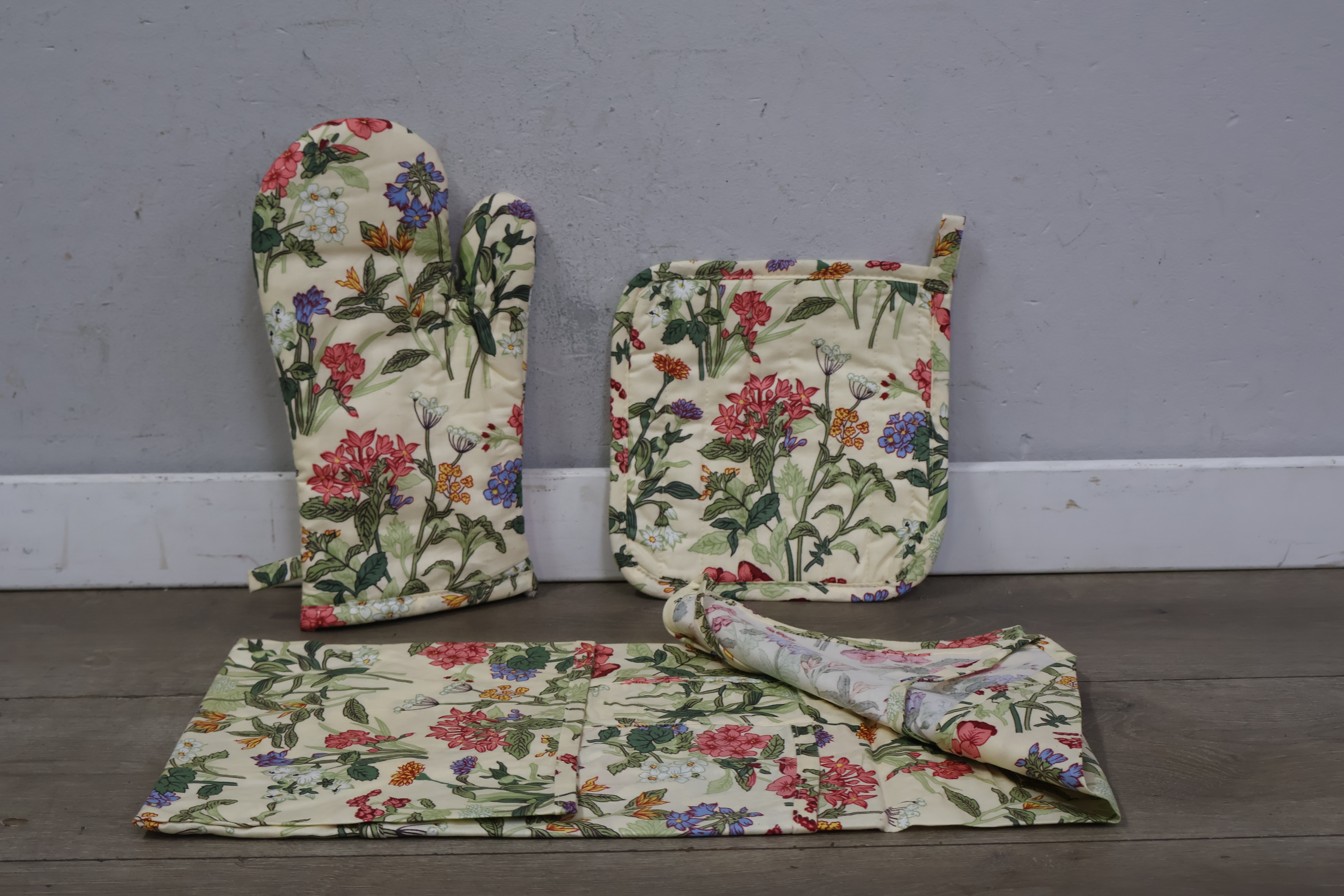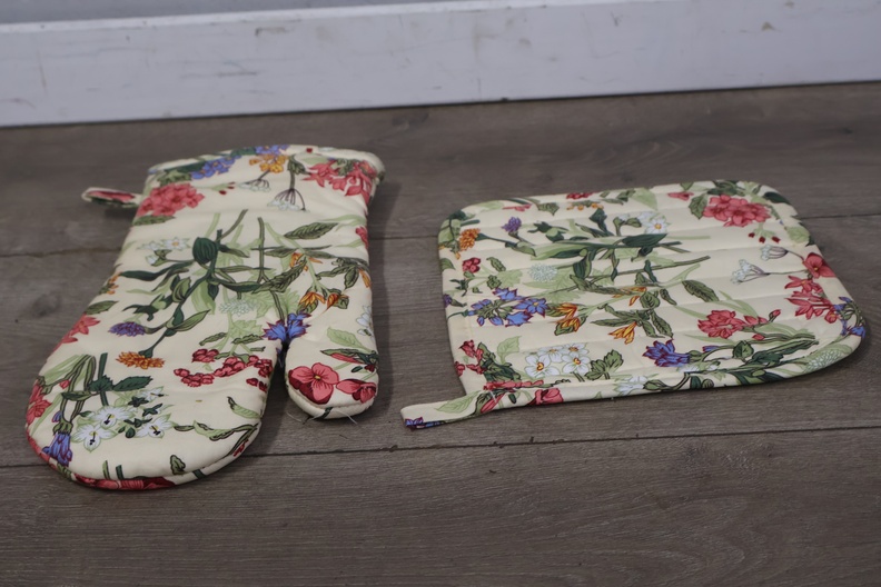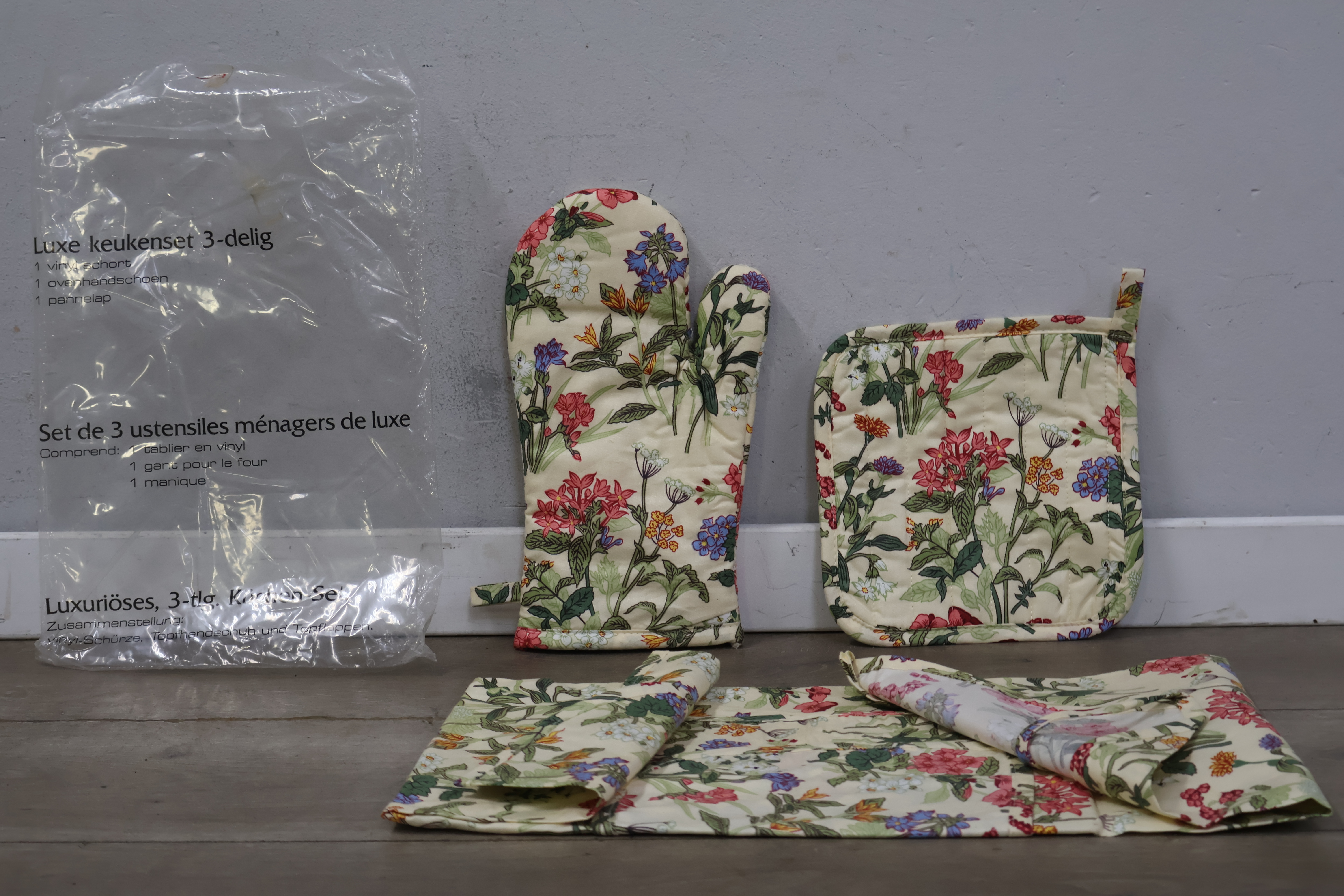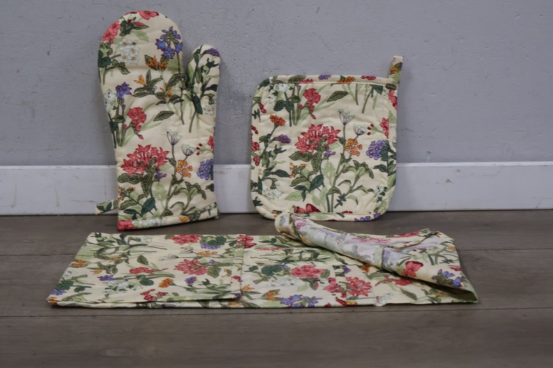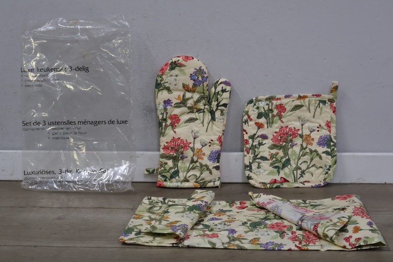 Luxe keuken set met ovenwant, pannenlap en keukenshort
