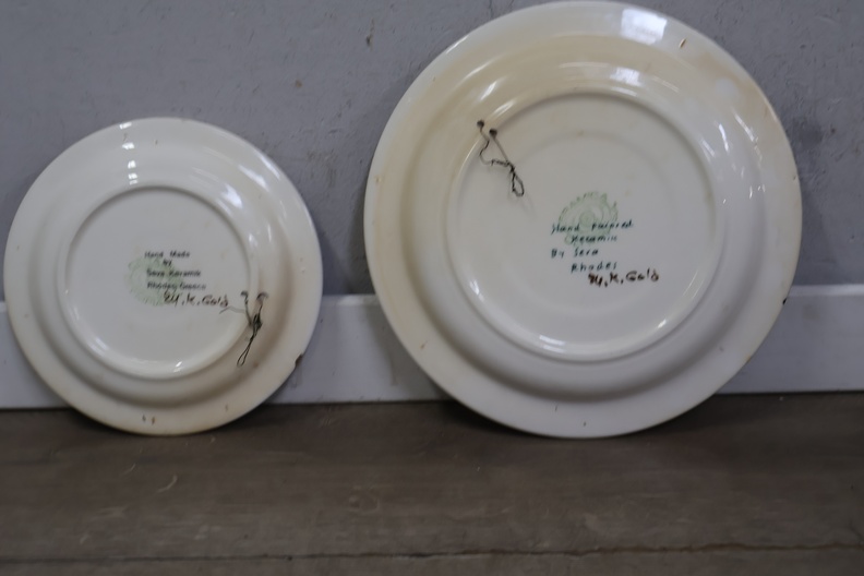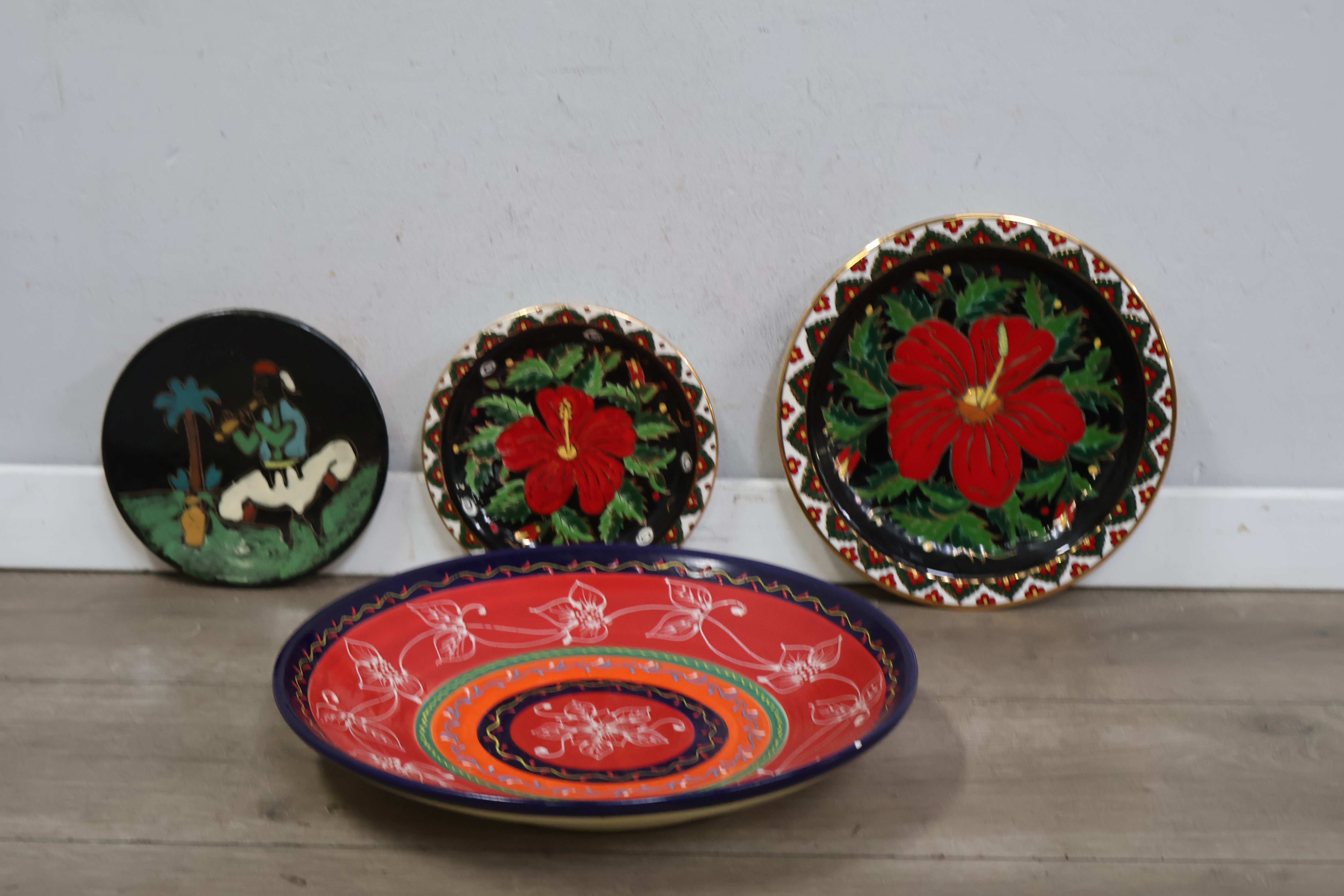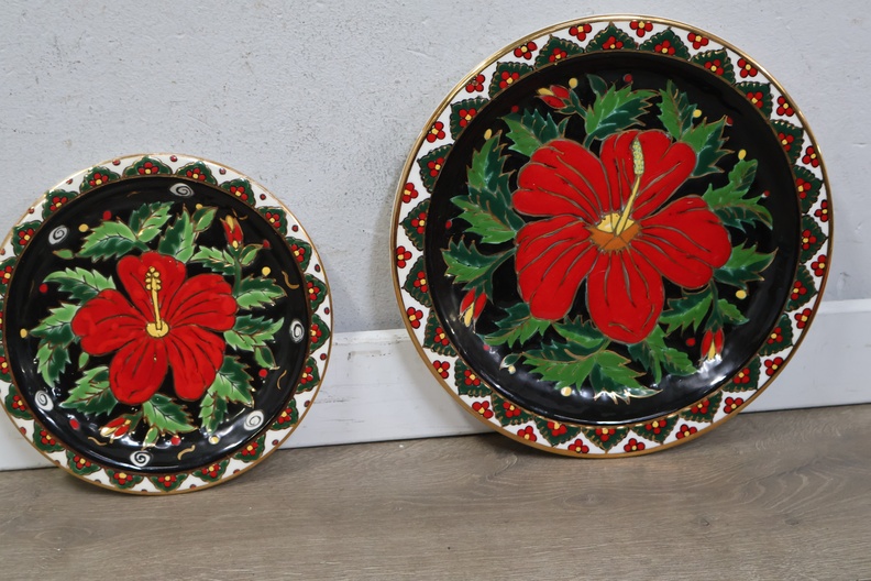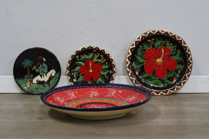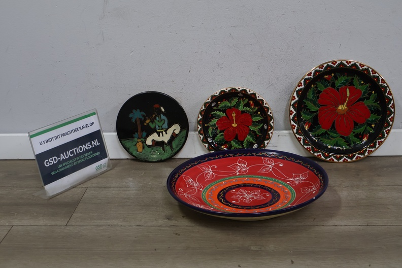 Keramische handgeschilderde wandborden en bord 4 stuks