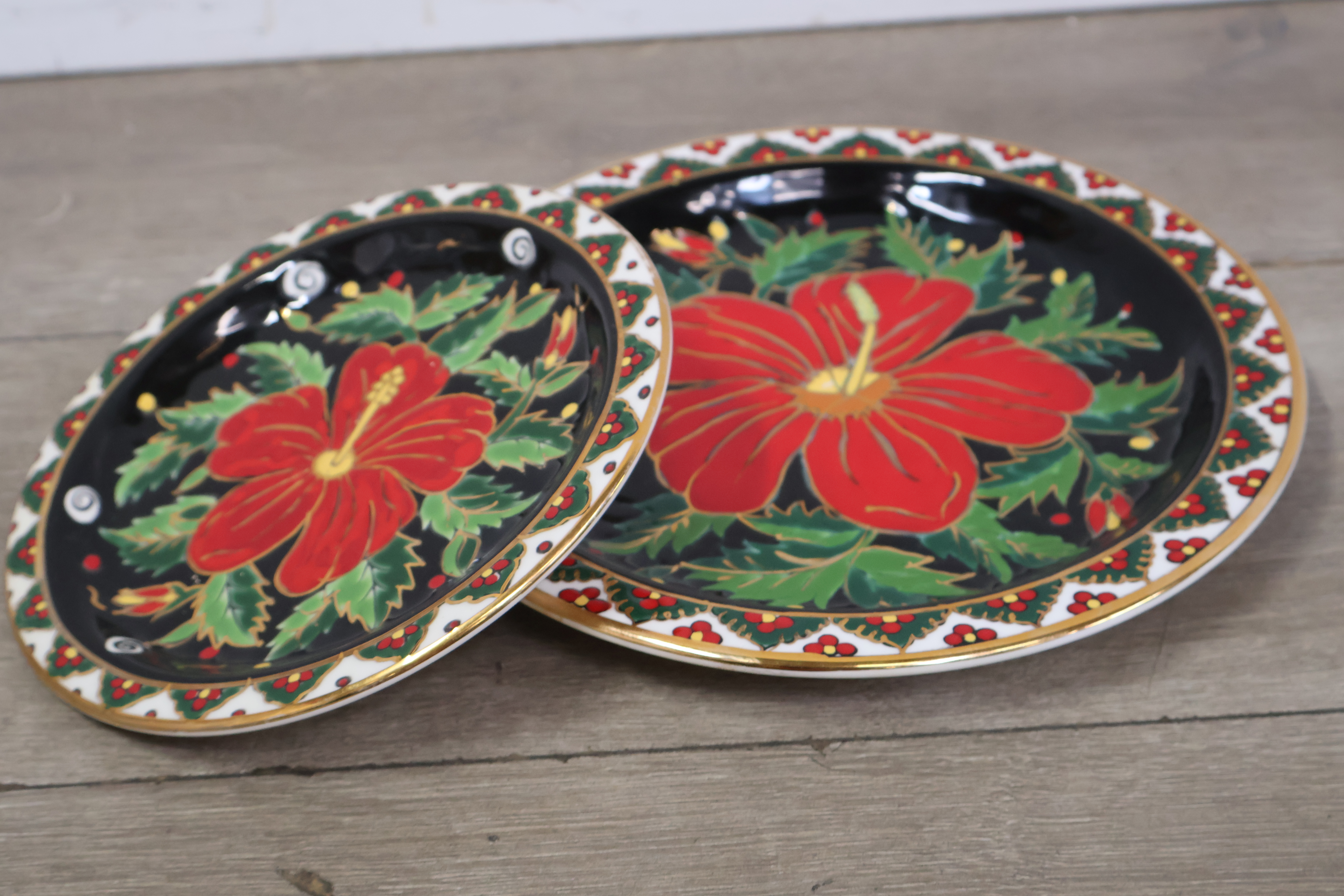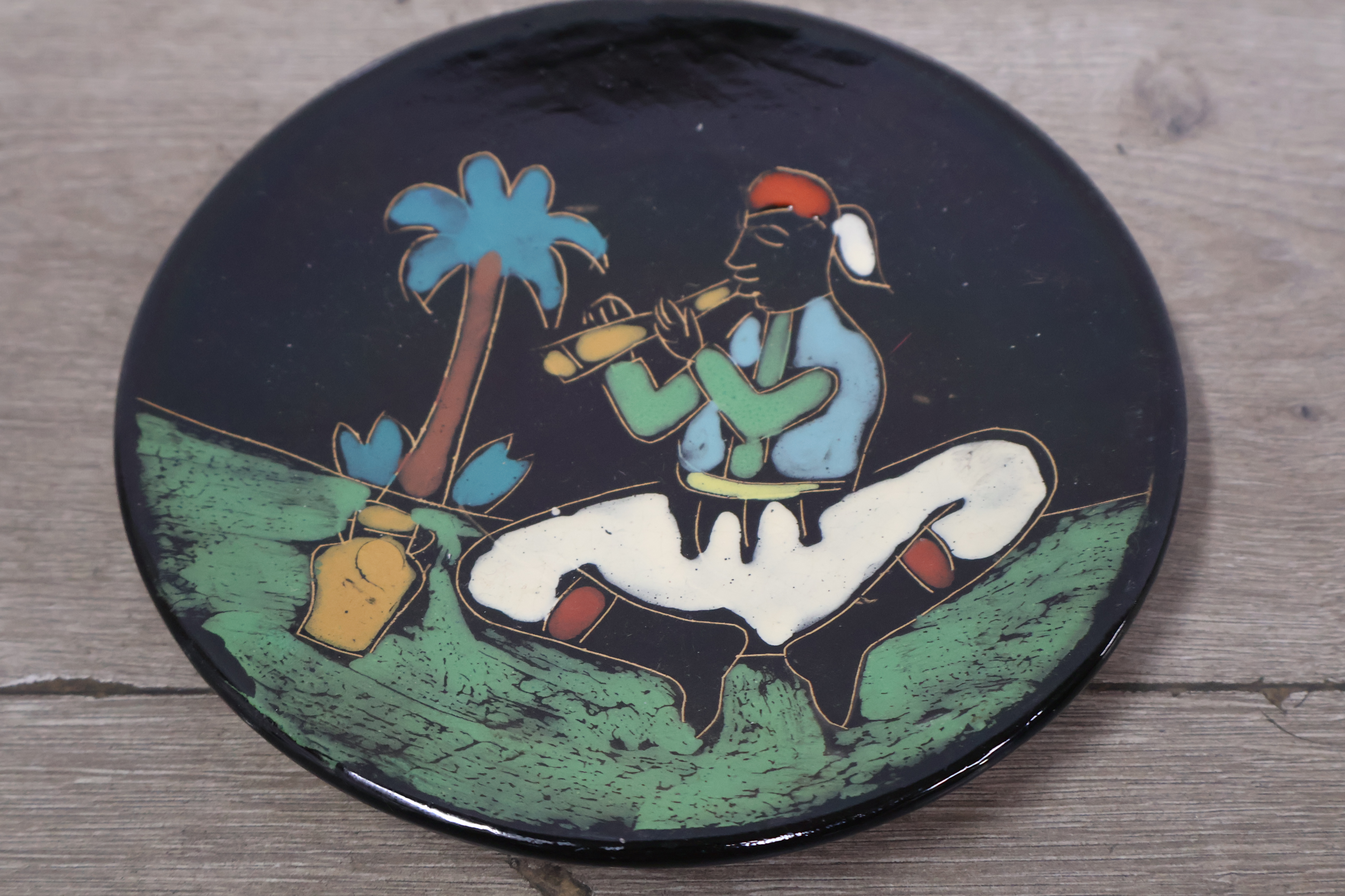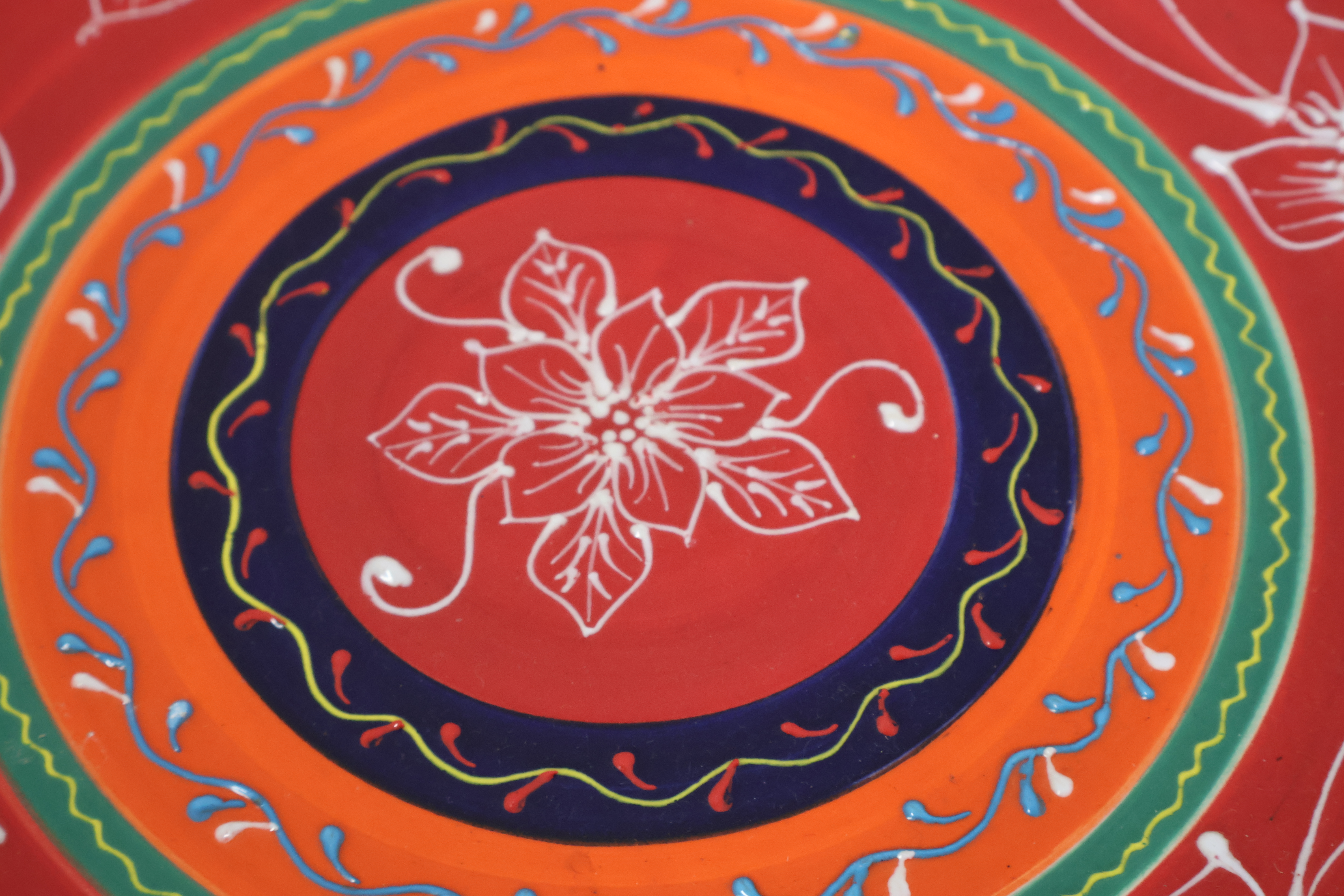 Keramische handgeschilderde wandborden en bord 4 stuks