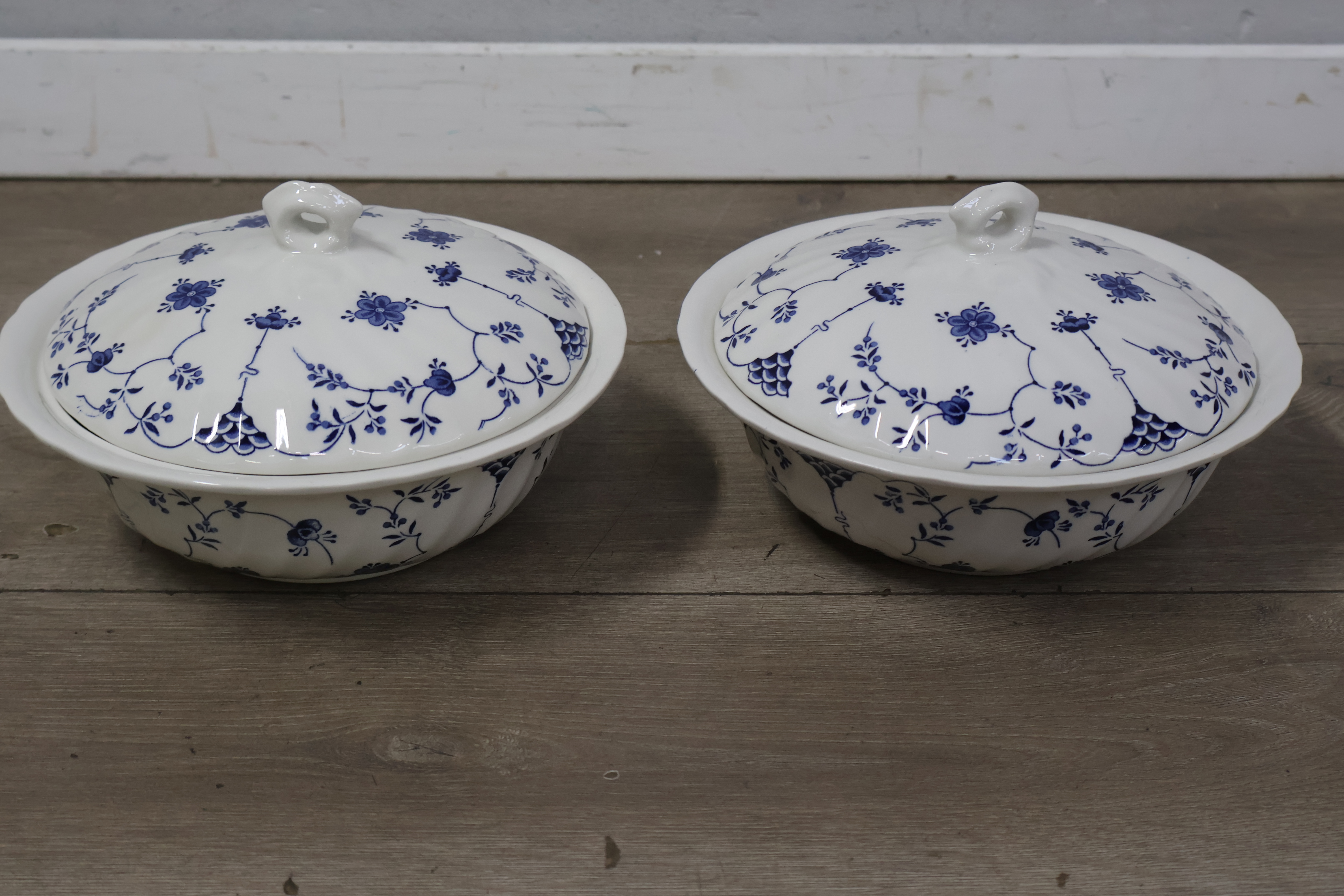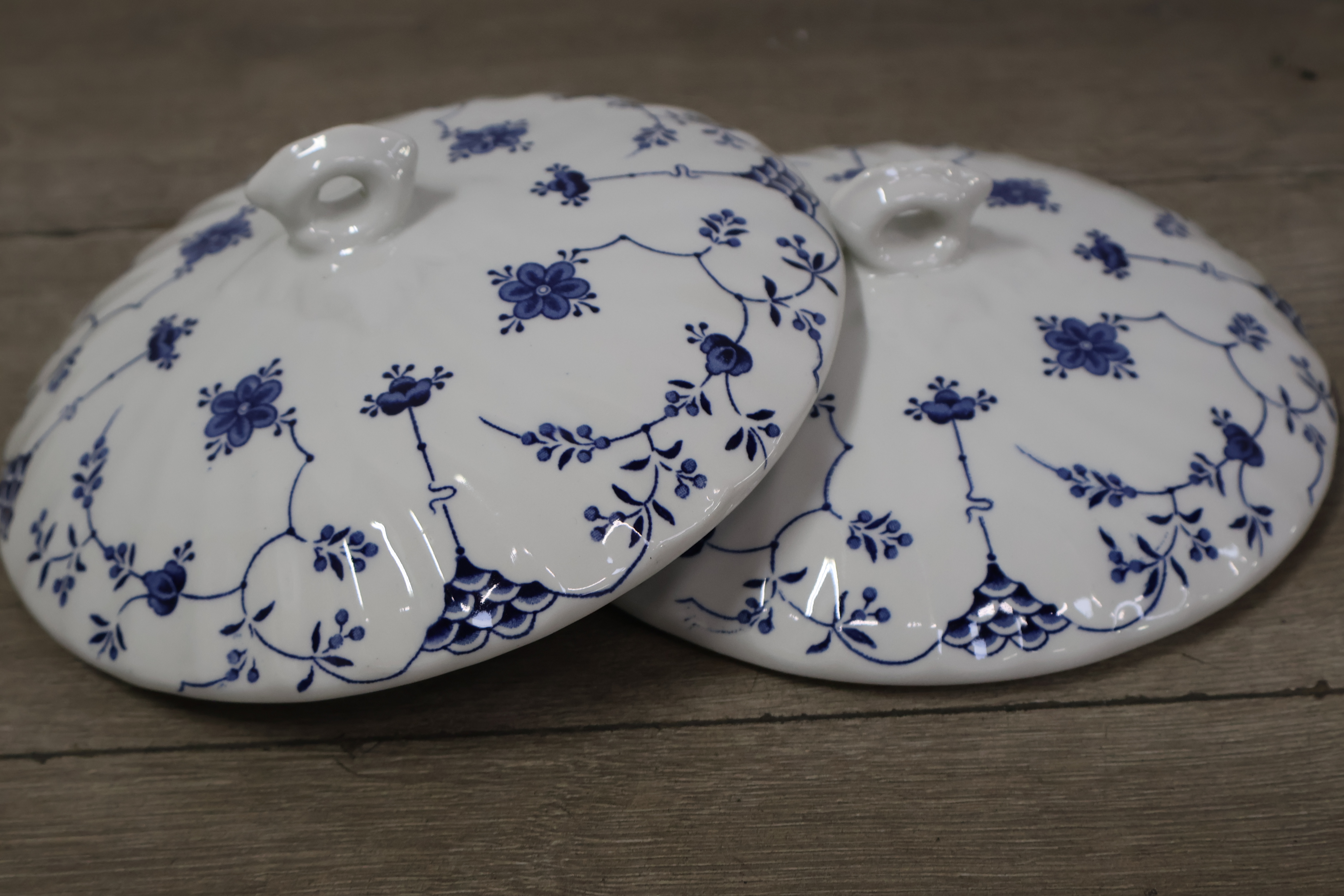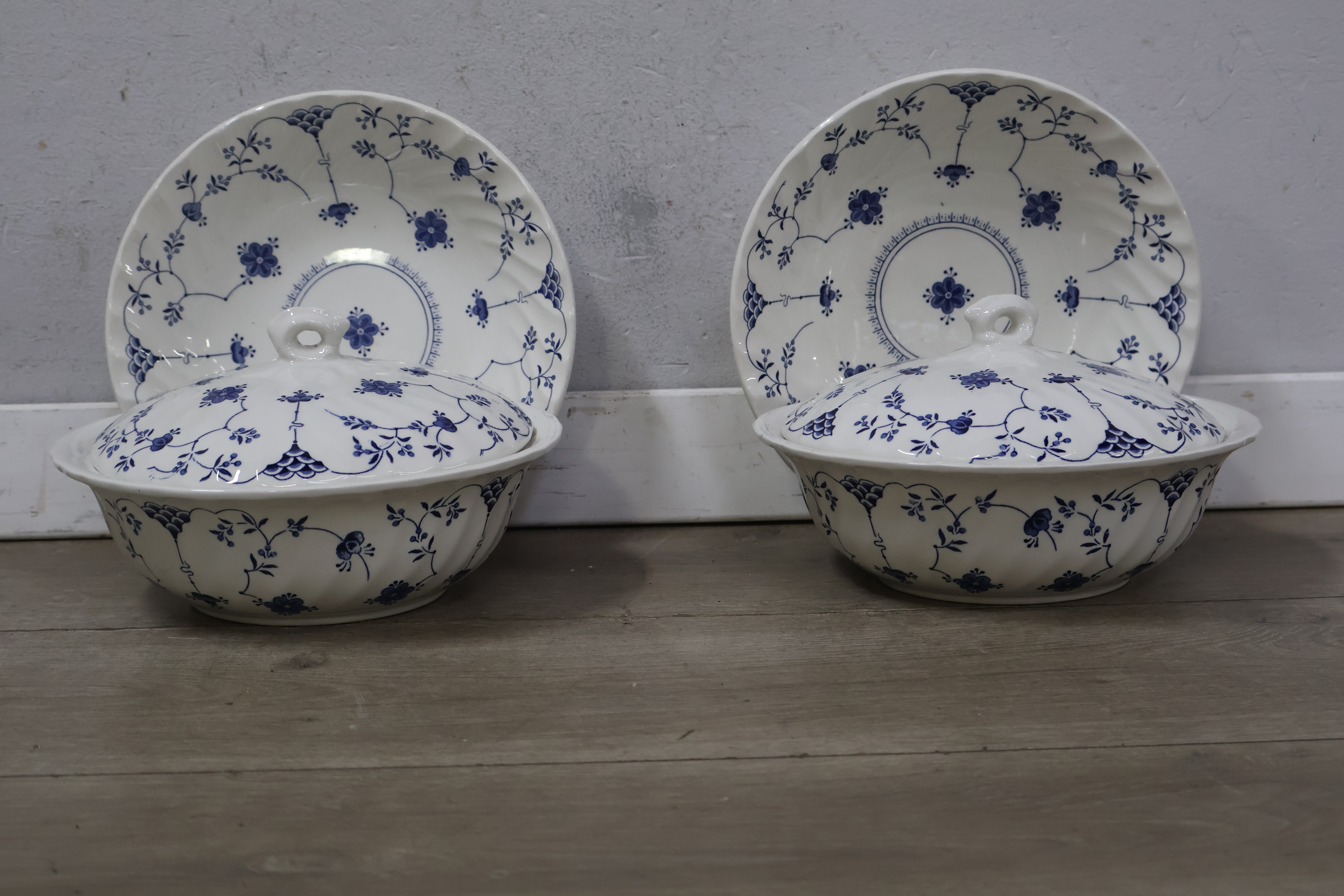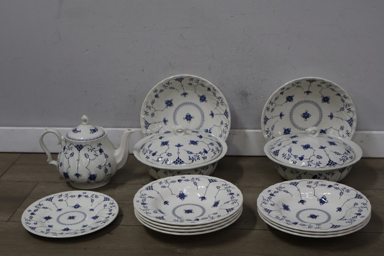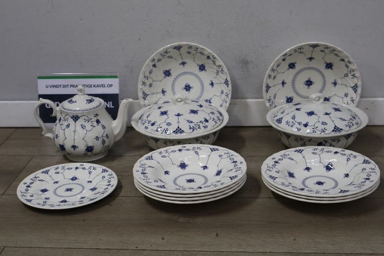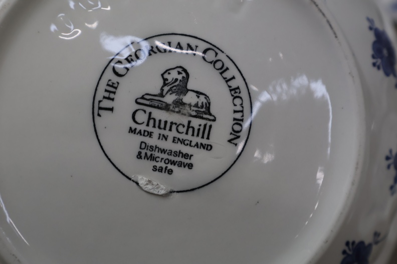 Churchill servies met borden, theepot en schalen met deksel