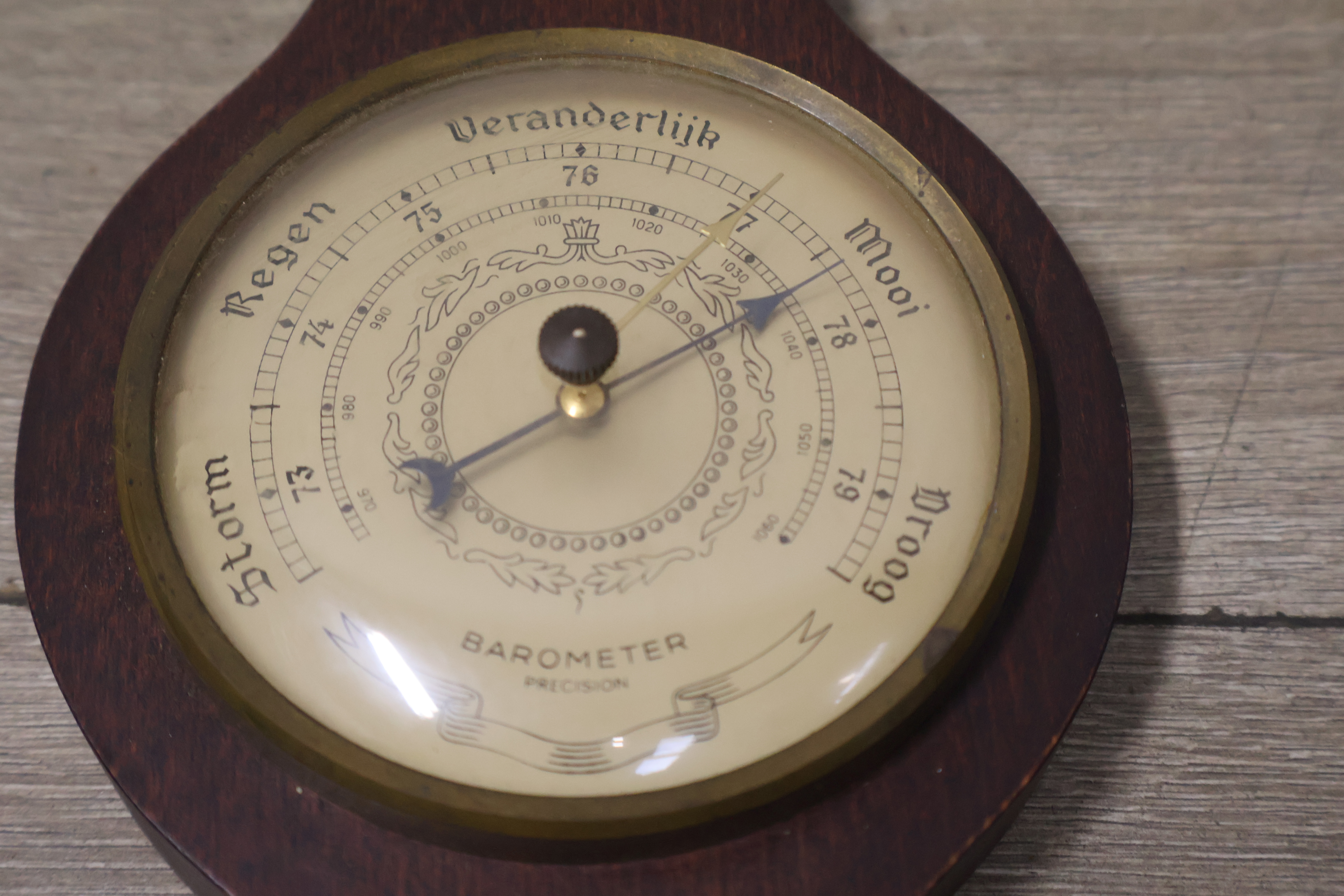 Houten weerstation met barometer, thermometer en hygrometer