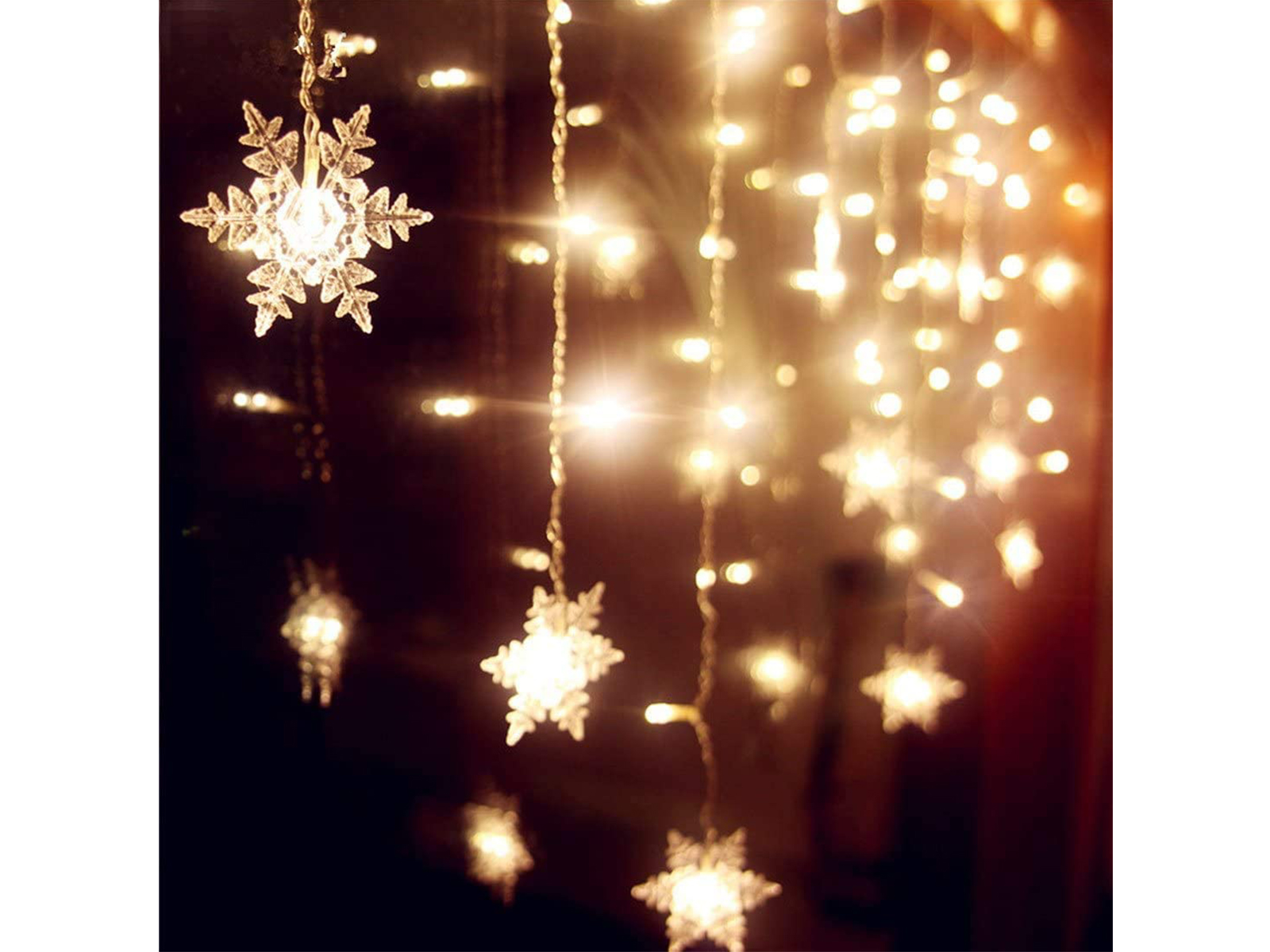 Creëer een warme sfeer in de huiskamer, slaapkamer, keuken, garage en zelfs in de winkel. De verlichting heeft een gordijn ontwerp met sneeuwvlokken op verschillende hoogte die een unieke look geven aan elke ruimte. De verlichting is bedoeld voor binnen (in ieder geval een droge omgeving) en heeft een verlengsnoer van 1,5 die gratis wordt meegeleverd om het gordijn op elke gewenste plek te kunnen plaatsen. Kies uit 1 van de 8 modi op de schakelaar (van constant aan tot slow fade) en je bent klaar voor de gezellige, maar donkere dagen.