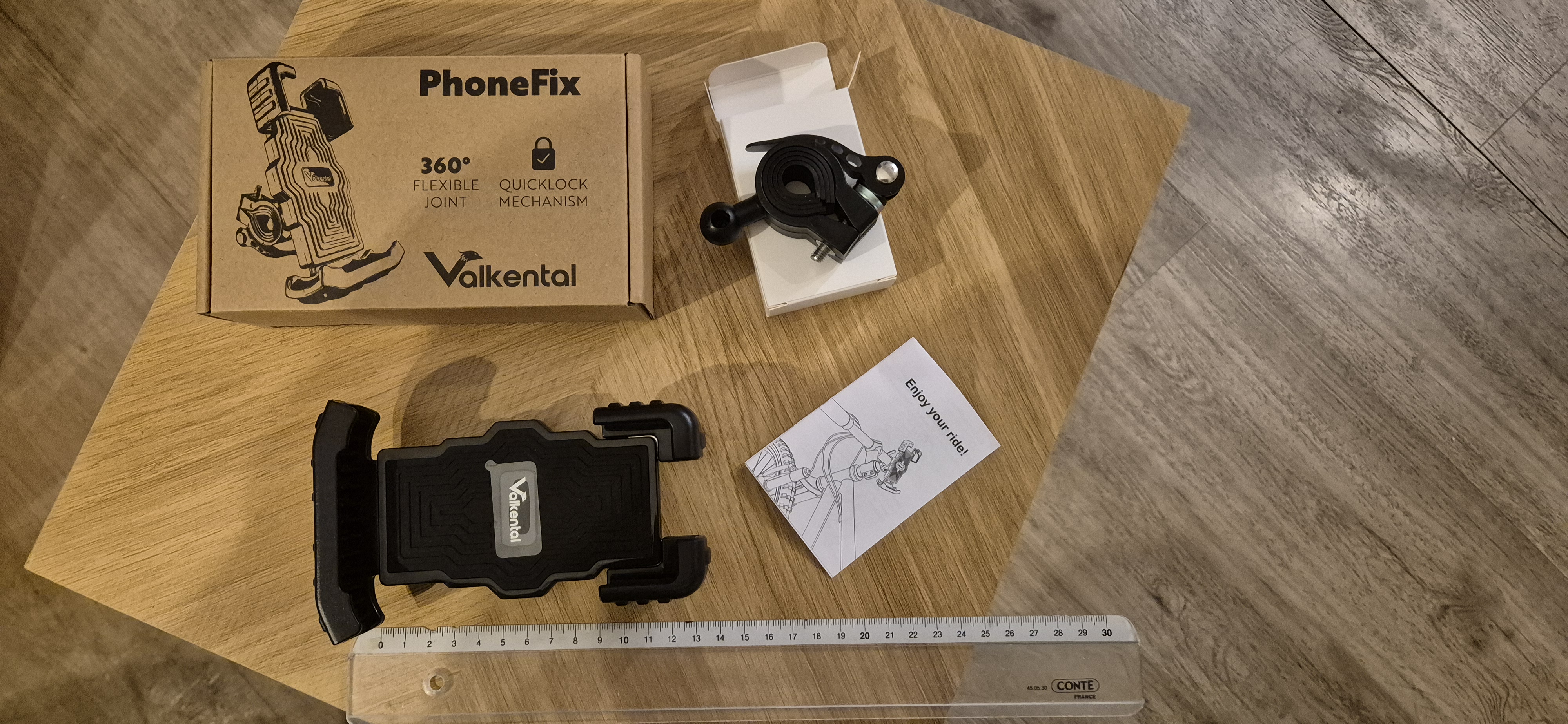 Dit is een Valkental PhoneFix mobiele telefoonhouder voor op het fietsstuur.