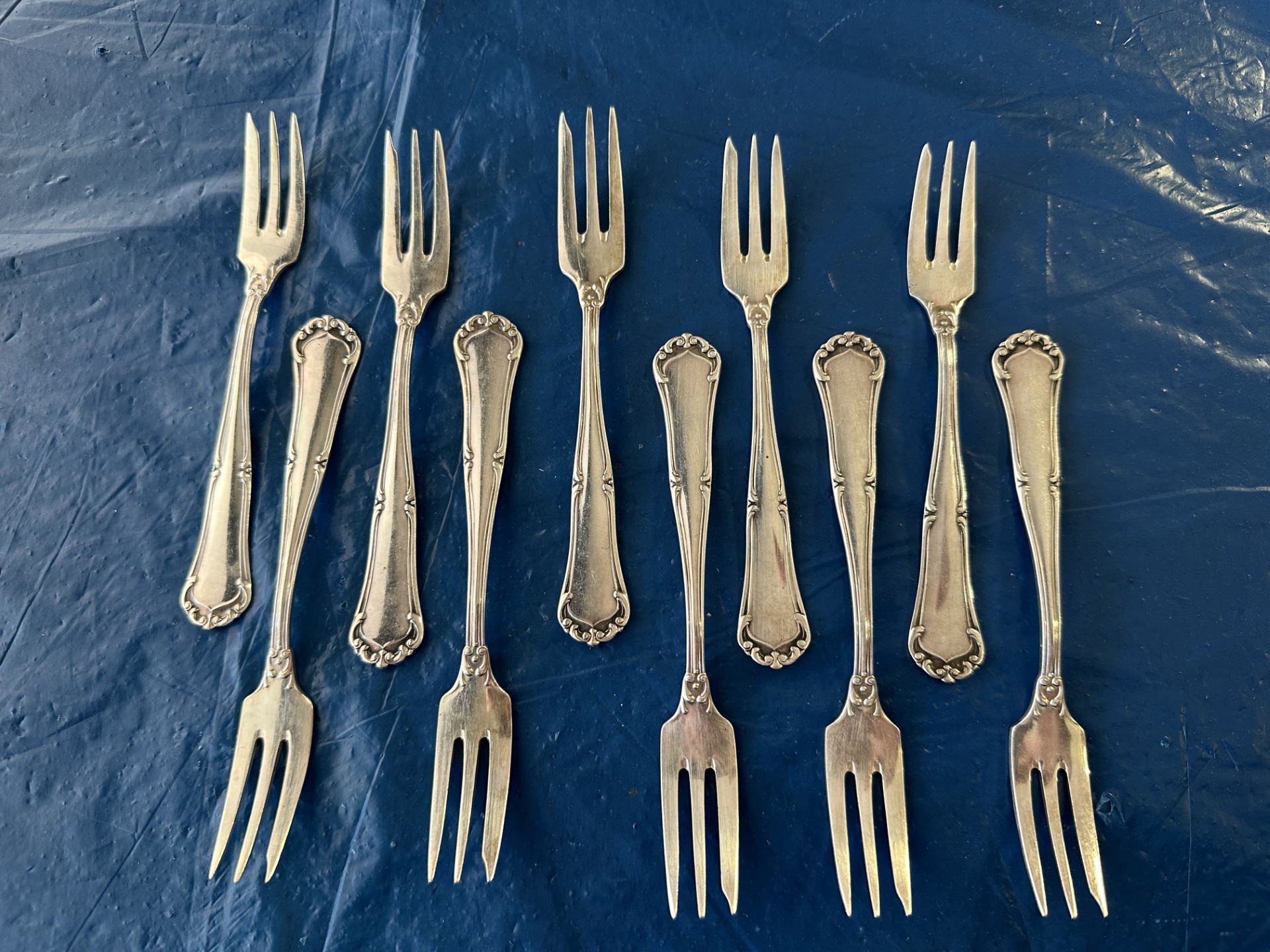 Mooie set van 10 vintage gebaksvorkjes met een klassiek sier