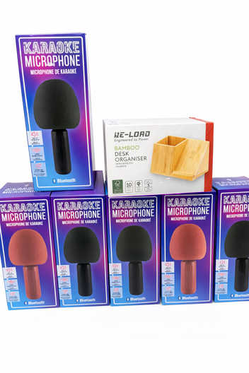 Partij Bluetooth Karaoke Microfoons + Bamboo Desk Organiser