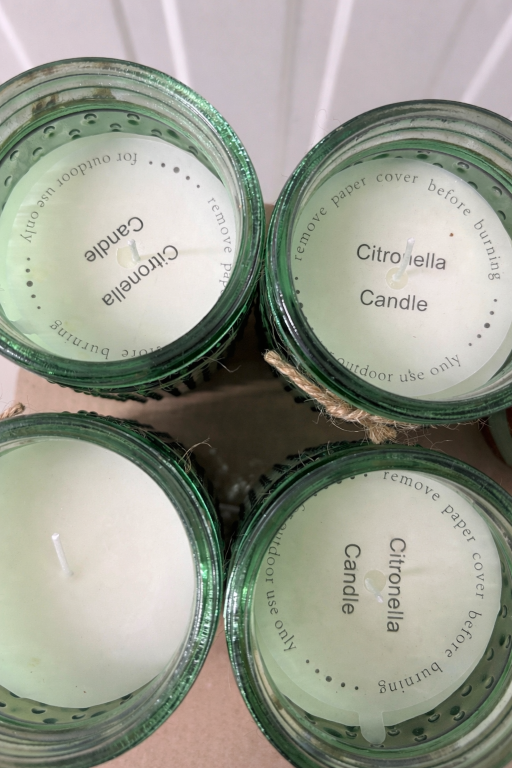 4x groene glazen kaarsen met citronella geur