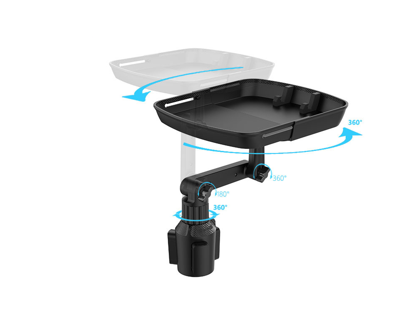Verstelbaar ontwerp: de bekerhouder voor in de auto heeft een 360 graden draaibare arm, zodat u deze in de perfecte positie kunt aanpassen. Het is rekbaar en het lengte-rekbereik bedraagt 15,3-20,2 cm
