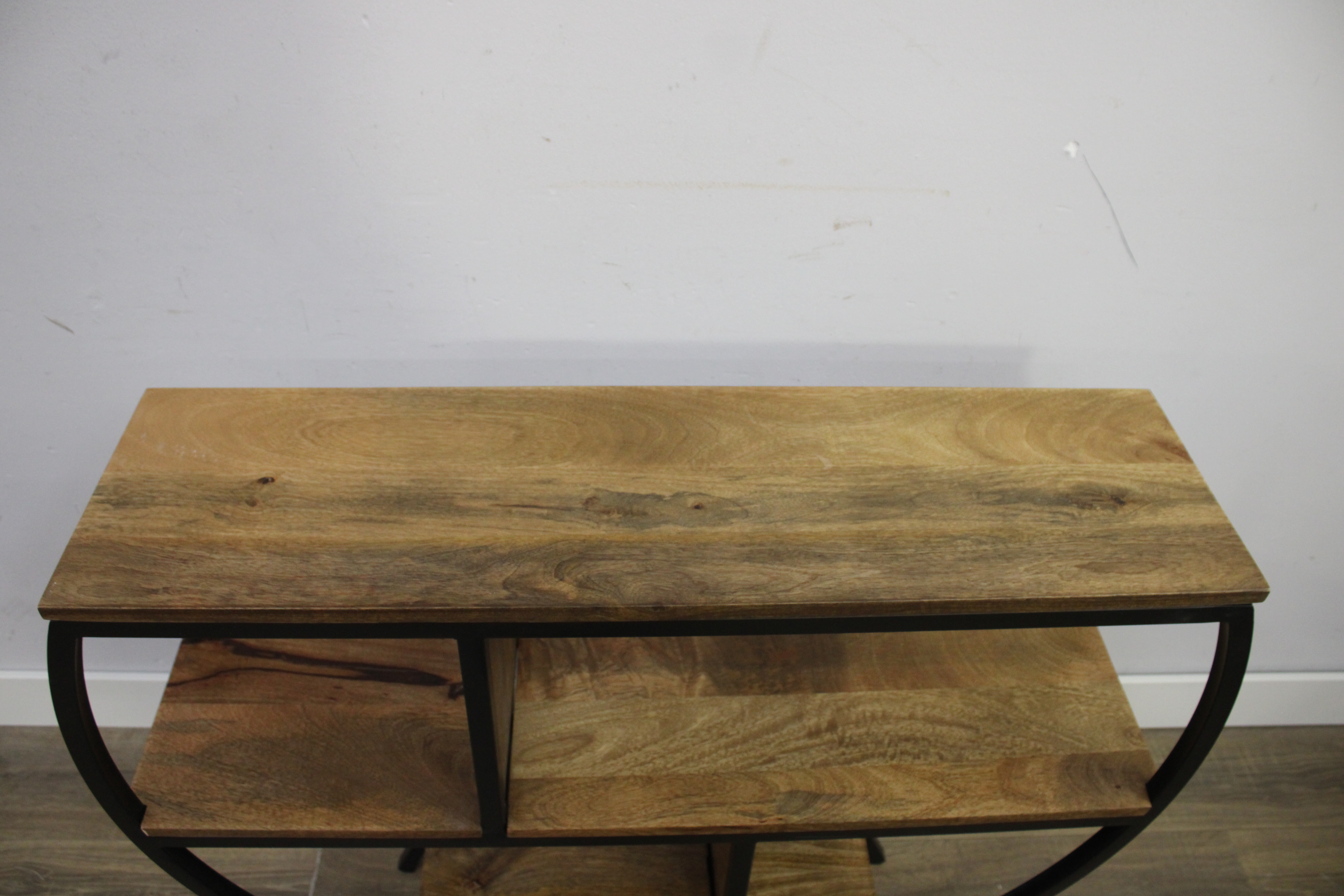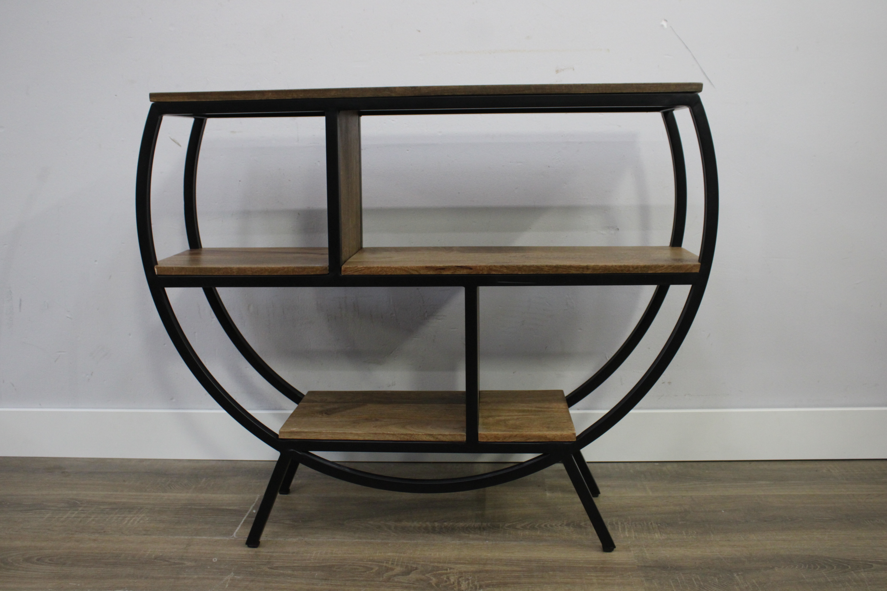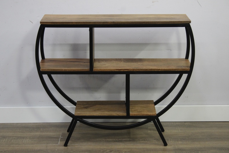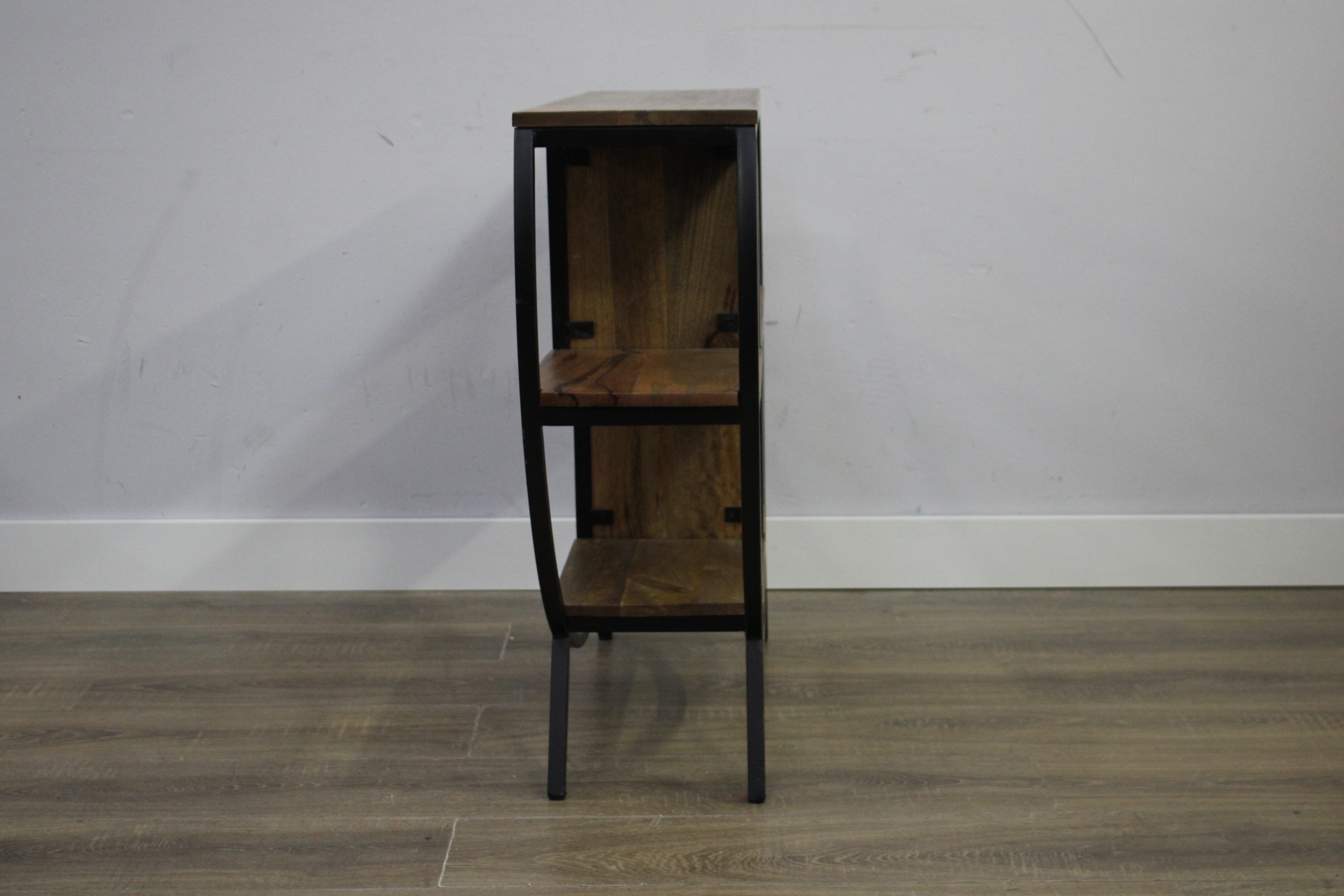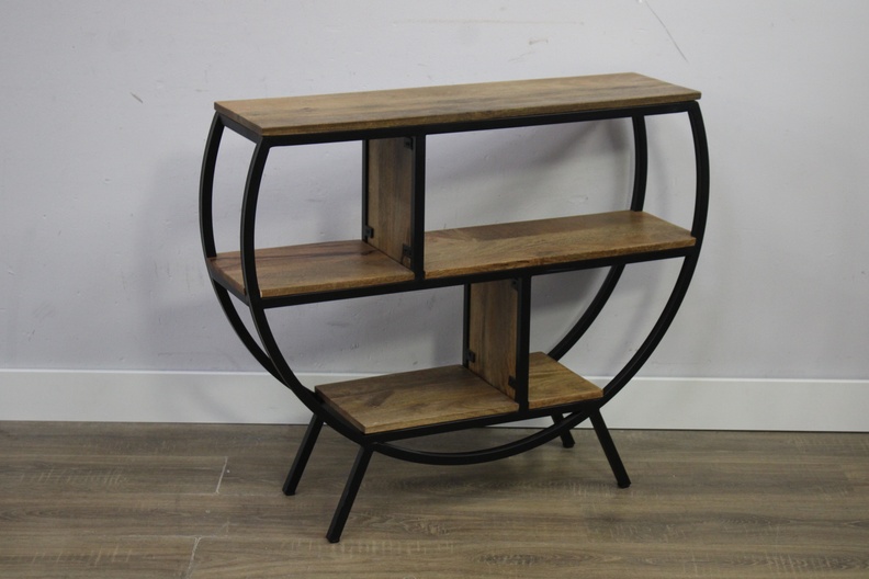 Moderne Zwart Metalen Bijzettafel met Mangohout