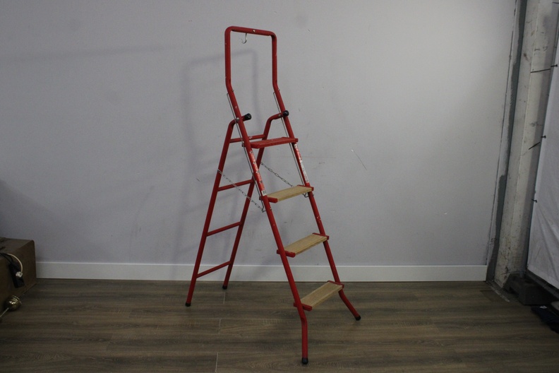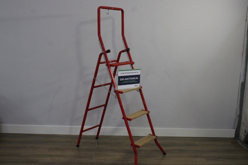 Vintage 4-Treeds Rood Metalen Huishoudtrap