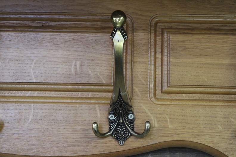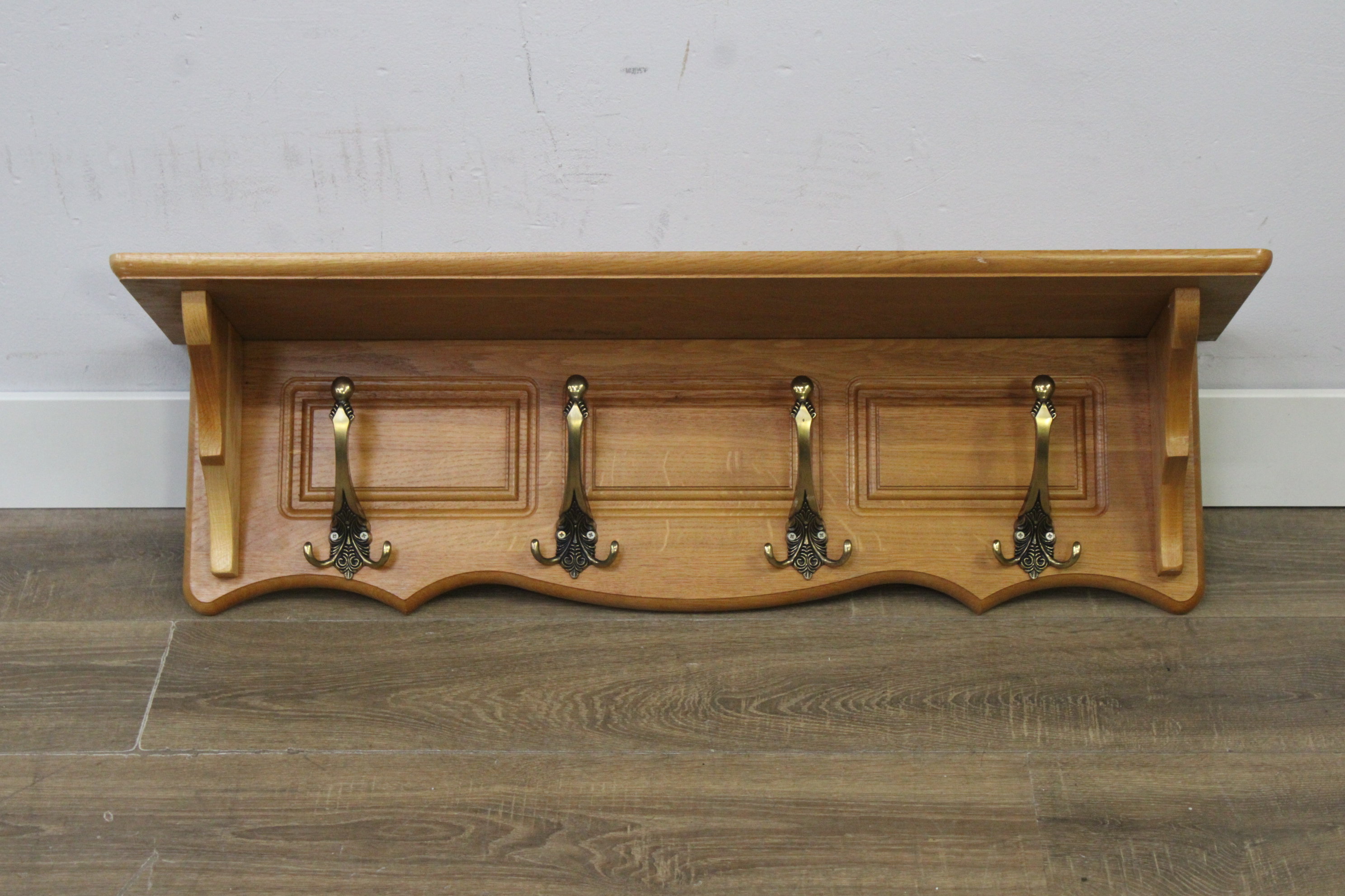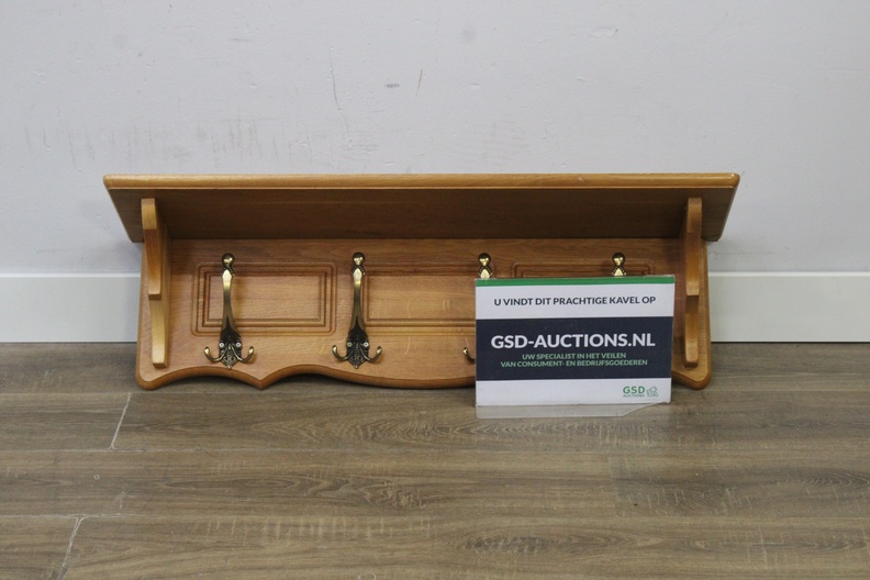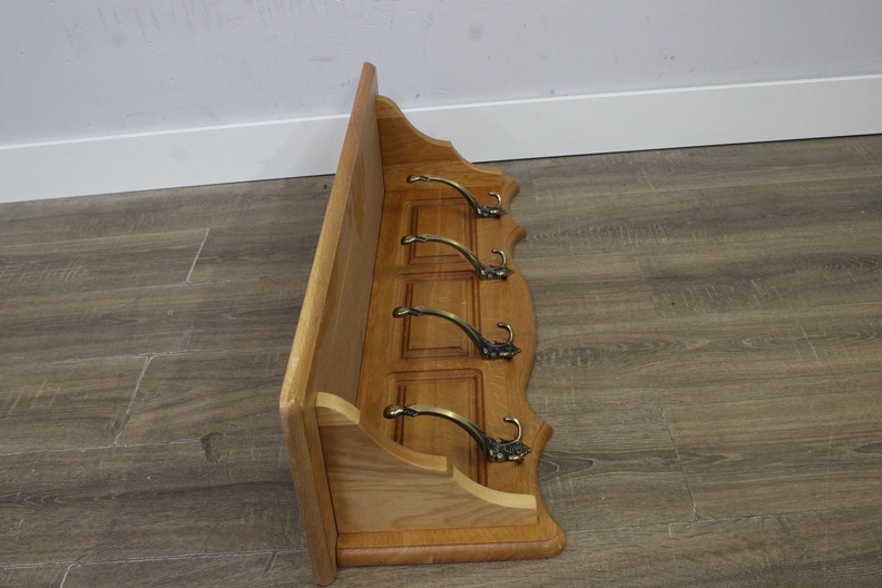 Houten Wandkapstok met 4 Dubbele Messing Haken