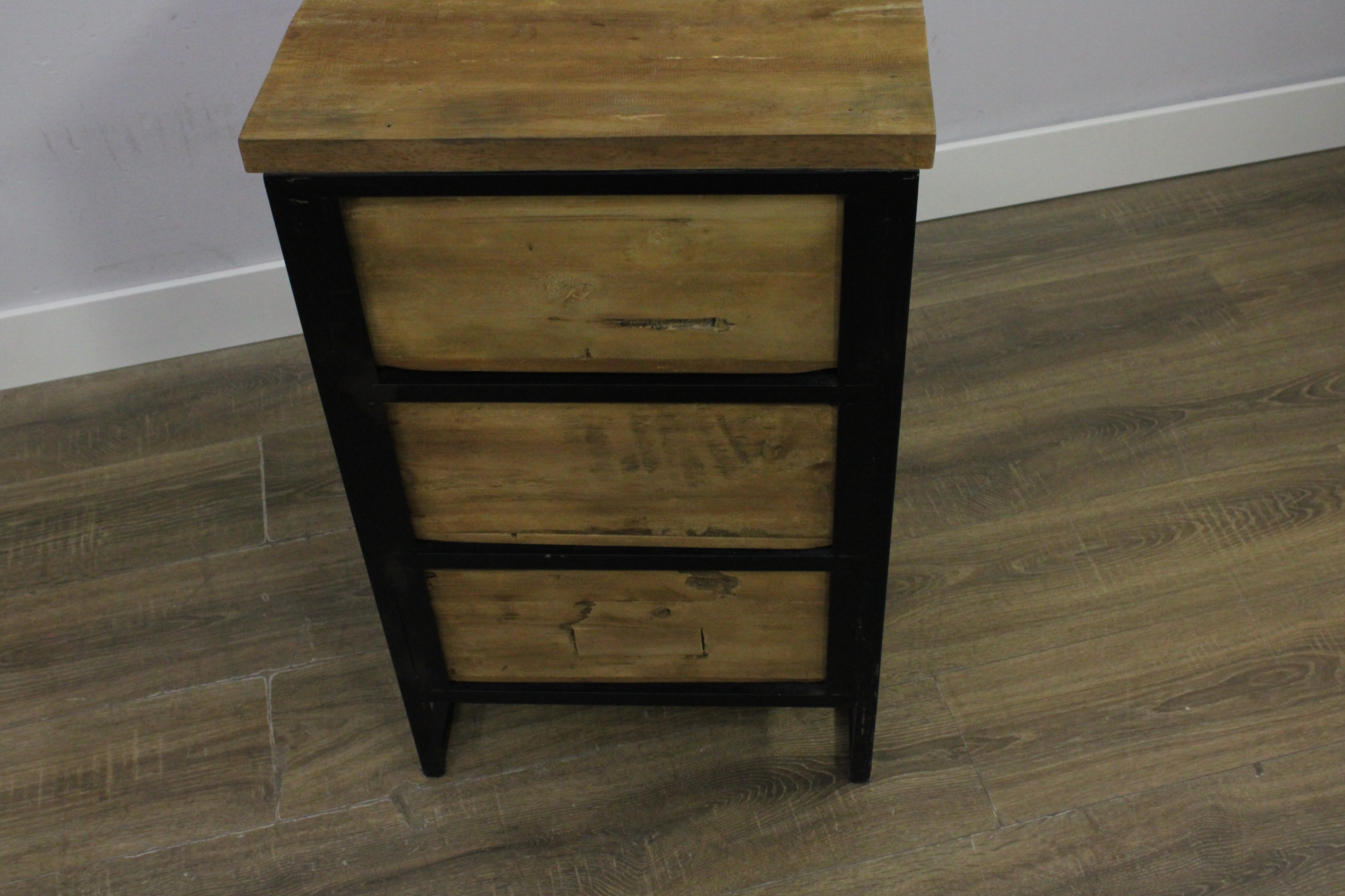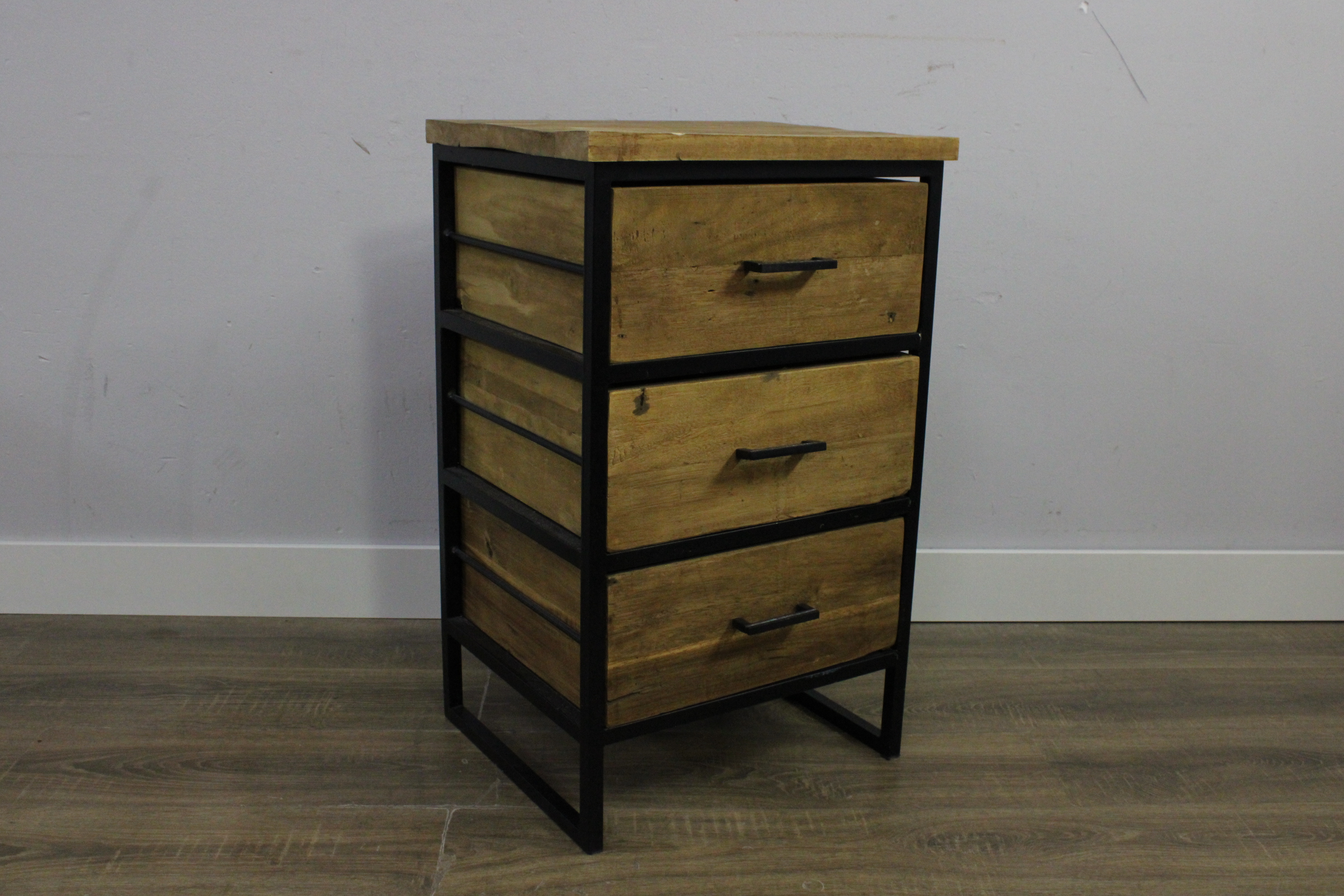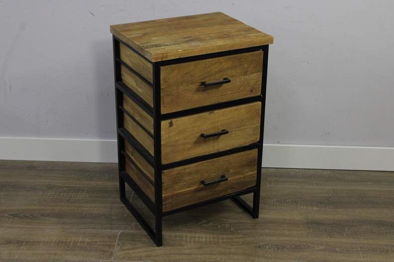 Modern Houten Ladekast met Zwart Metalen Frame (3-Lades)